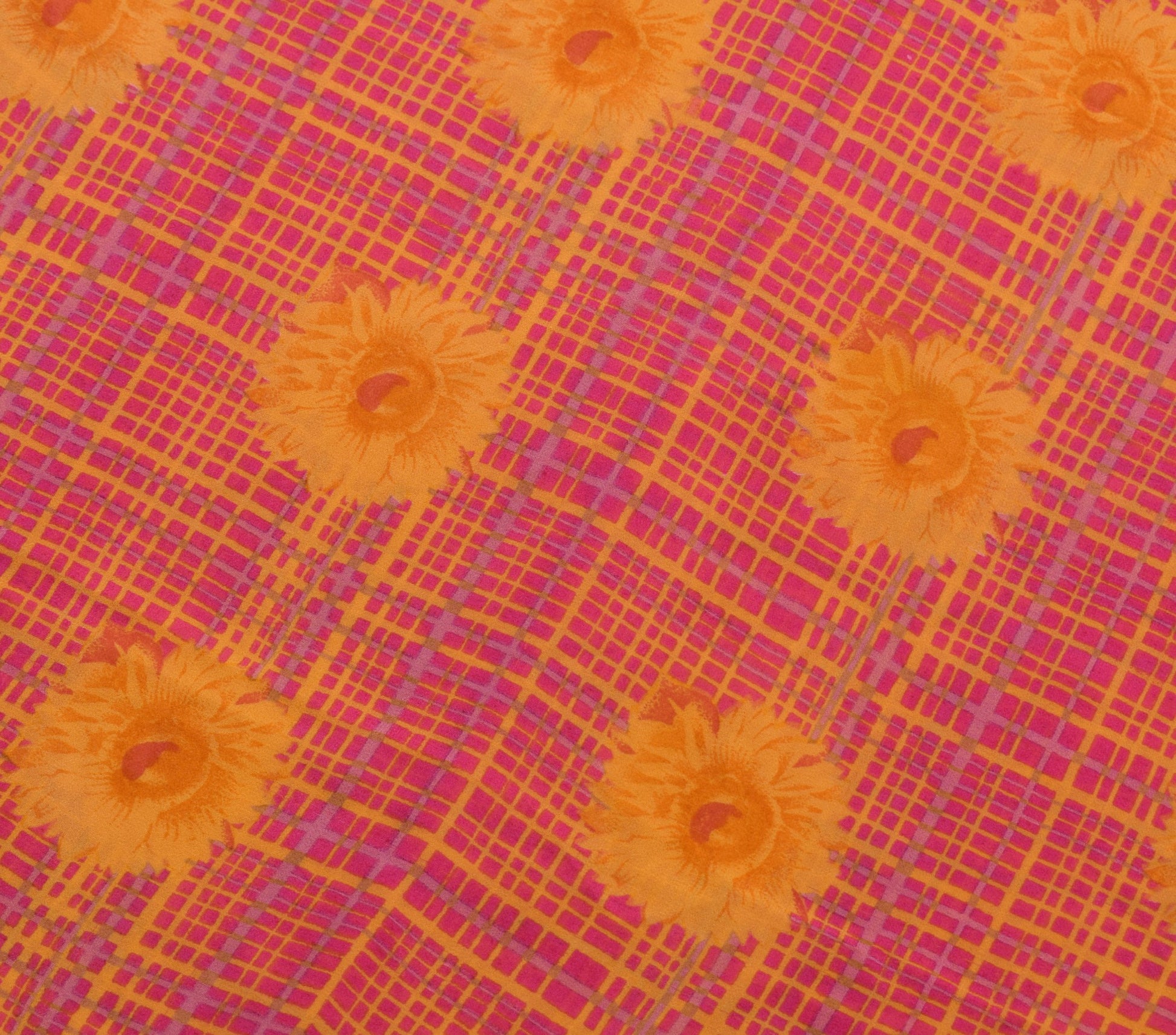 Branded Vtg. Branded Pink Floral Saree Pure Georgette Silk Printed Craft Fabric