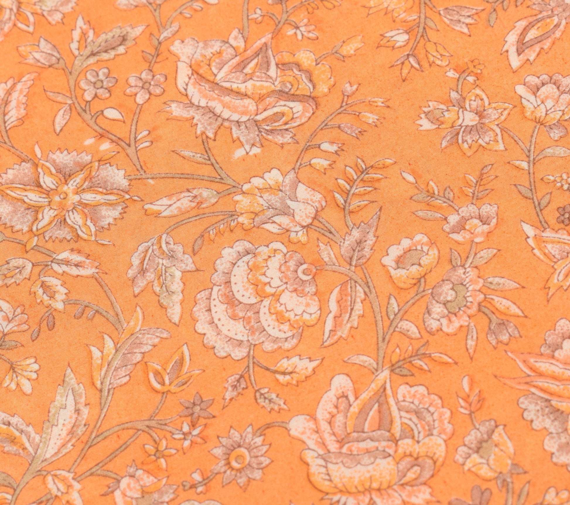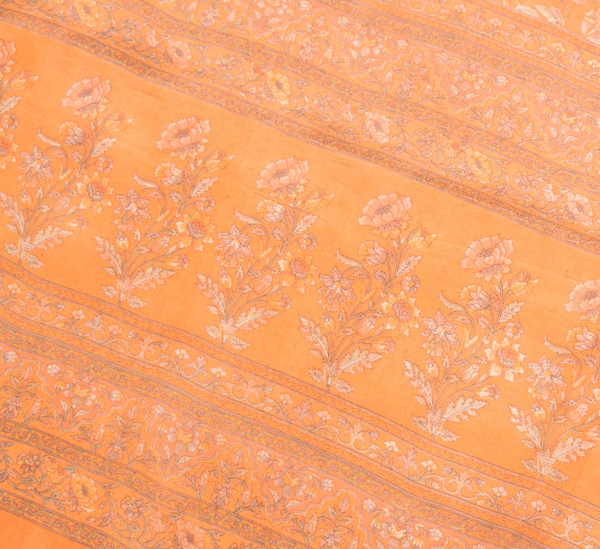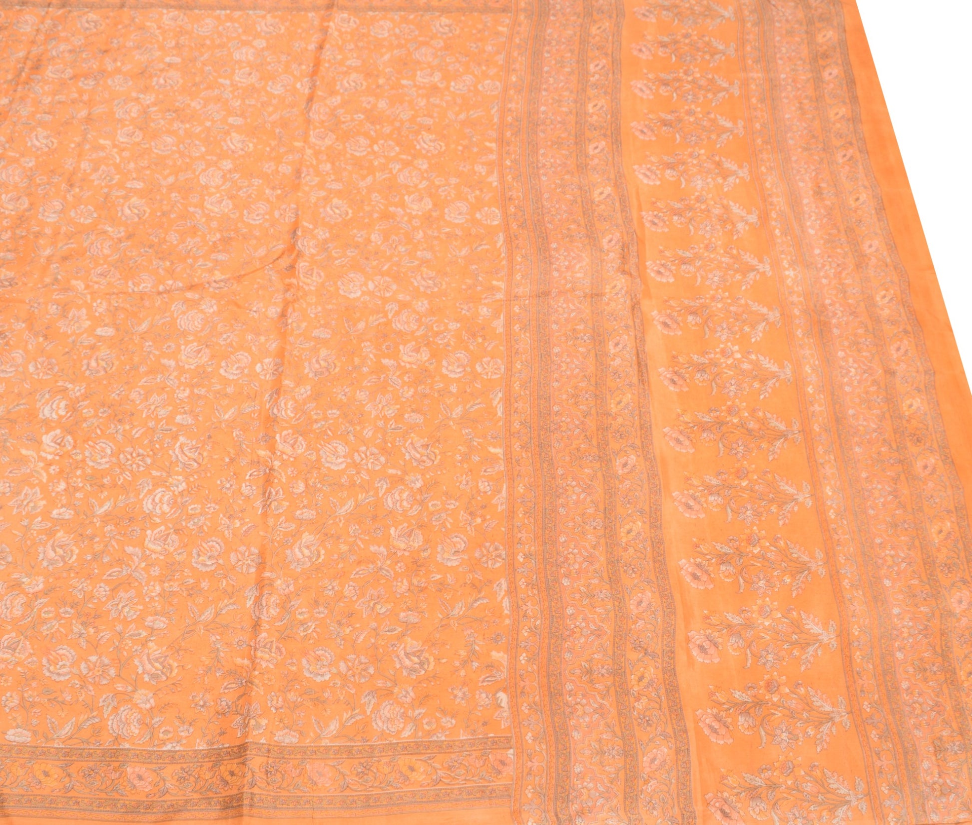 Sushila Vintage 100% Pure Silk Saree Orange Printed Floral 6YD Soft Craft Fabric
