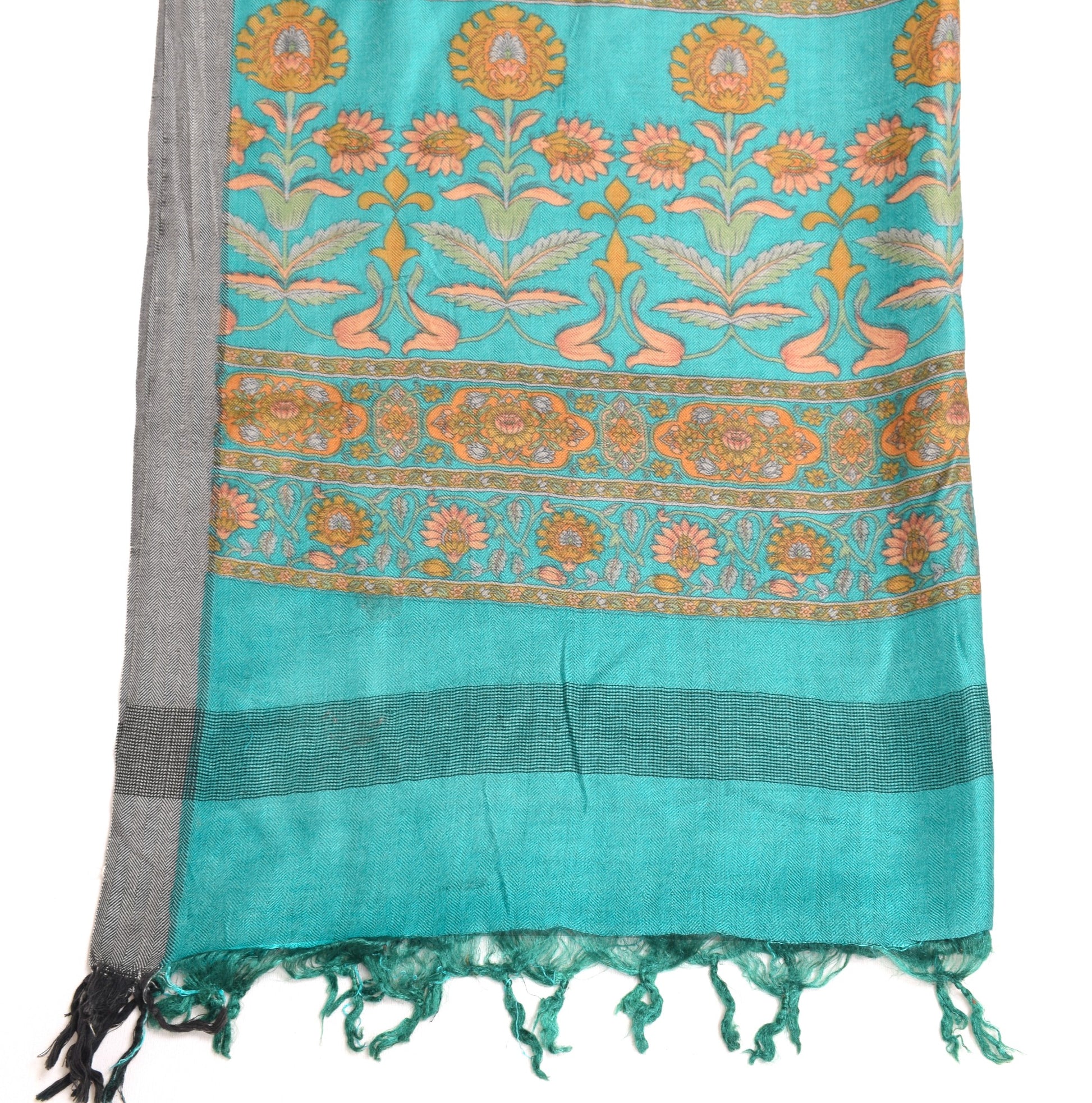 Capture the warmth and grace of heritage fashion with this Aqua Blue Floral woolen dupatta, ideal for use as a Scarf, Indian Long Stole, Veil, or Hijab. Made from high-quality 100% Pure Woolen, this piece features intricate Woven & Printed work, making it perfect for both special occasions and everyday wear. The Aqua Blue base beautifully complements the delicate Floral detailing, adding a touch of traditional charm to any outfit.