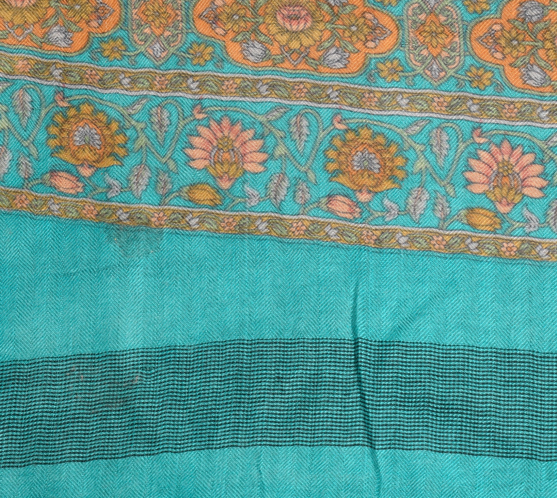 Sushila Vintage 100% Pure Woolen Dupatta Aqua Blue Floral Woven Long Stole Veil