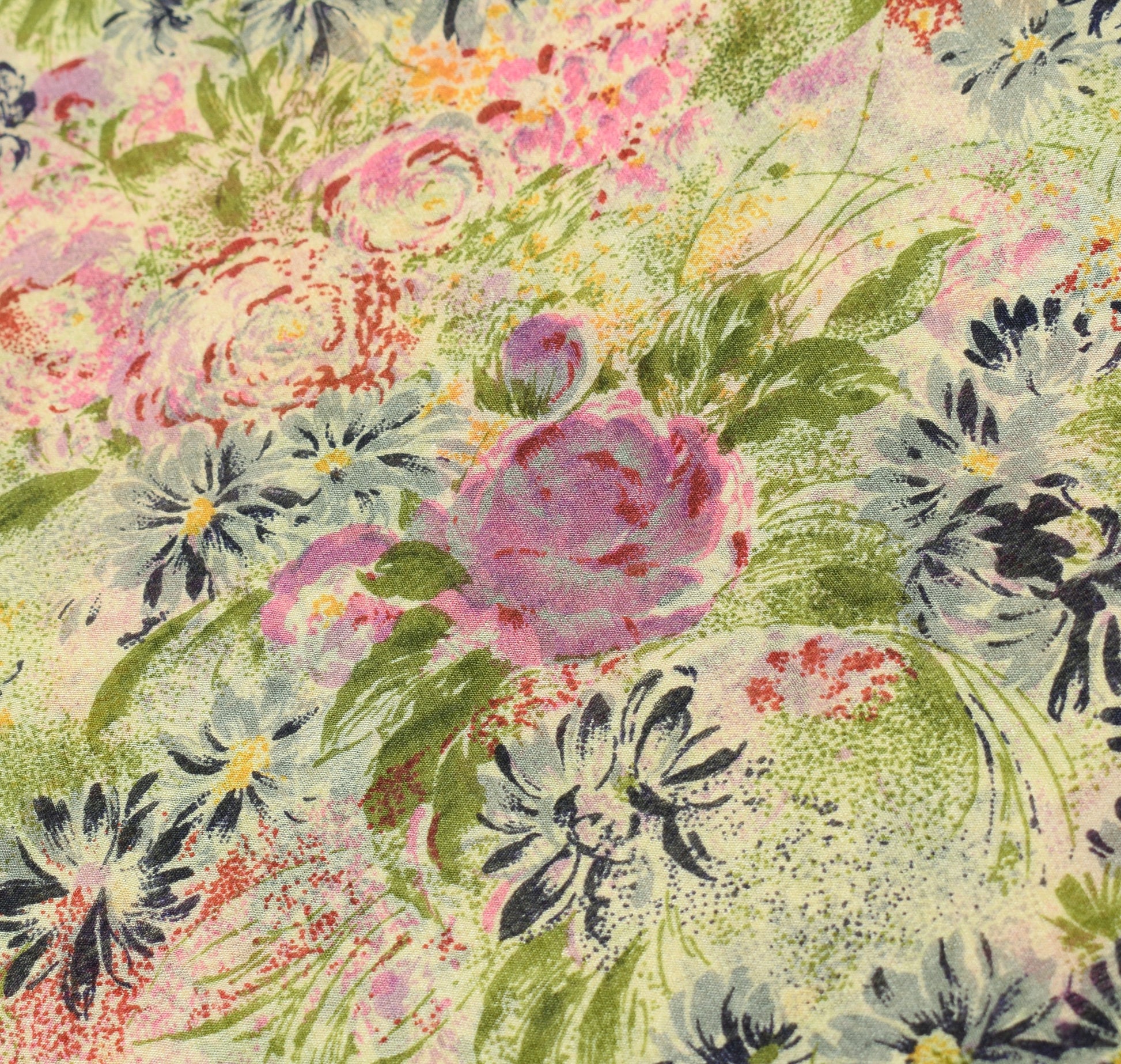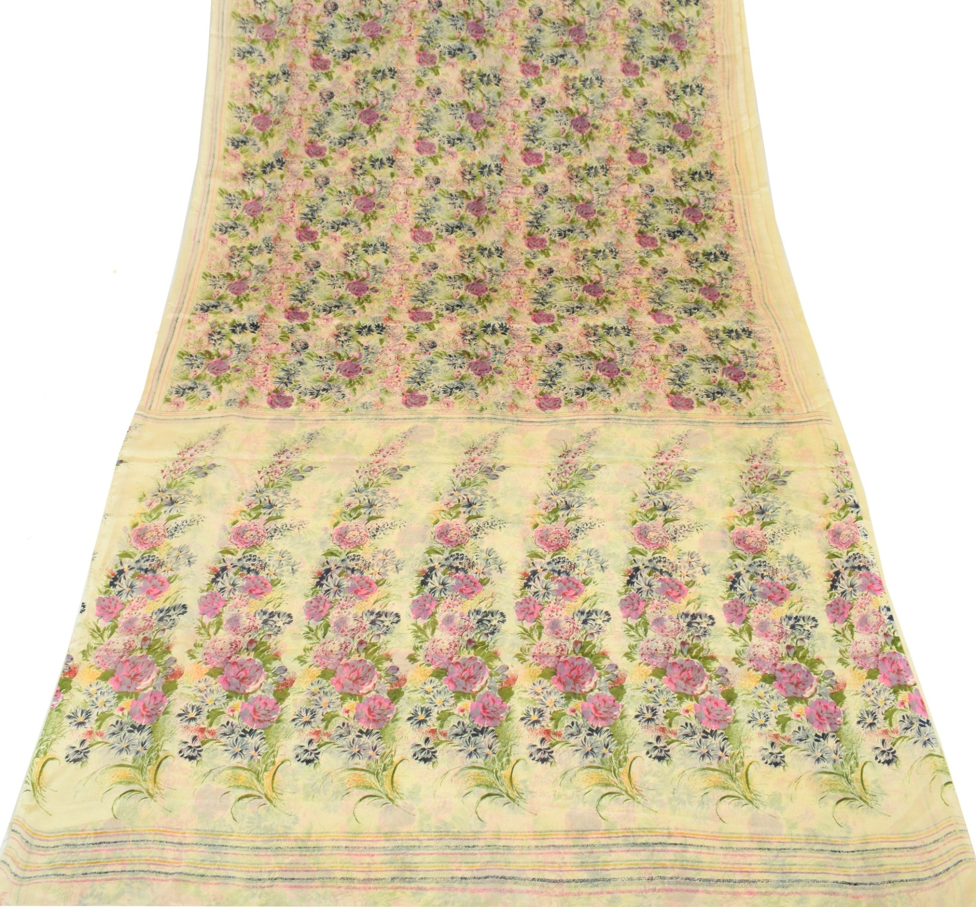 Sushila Vintage 6Yard Saree 100%Pure Silk Printed Floral Cream Soft Craft Fabric