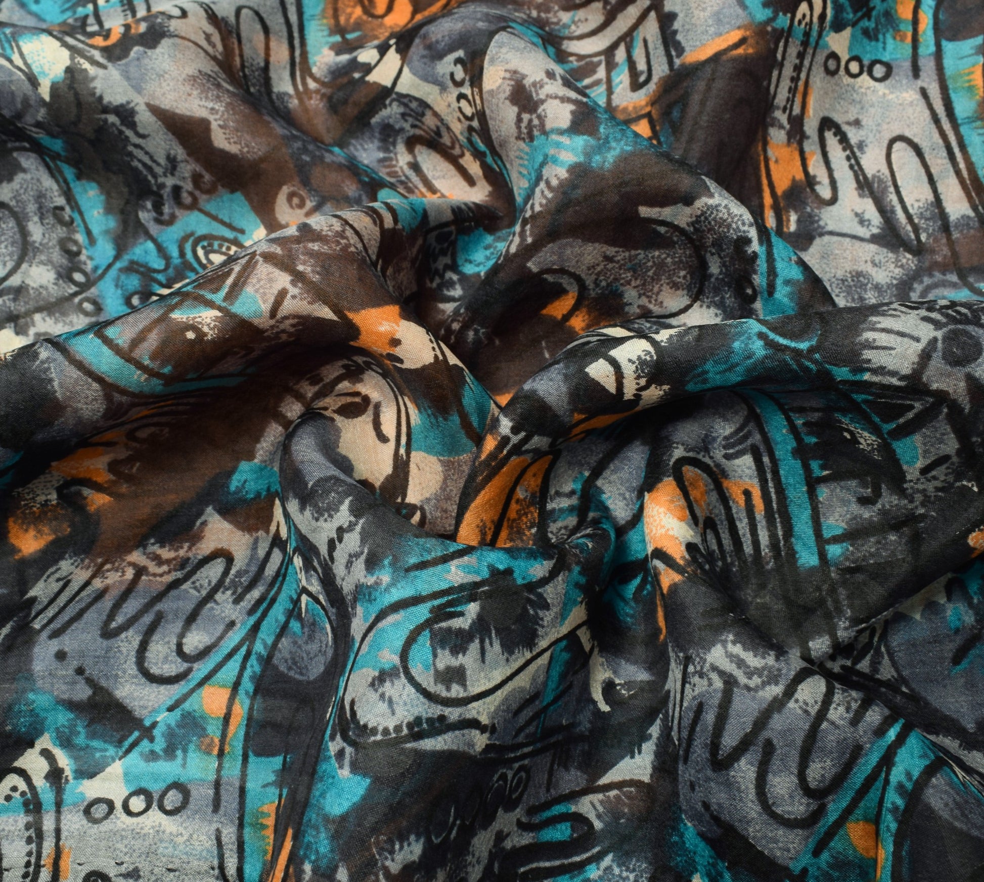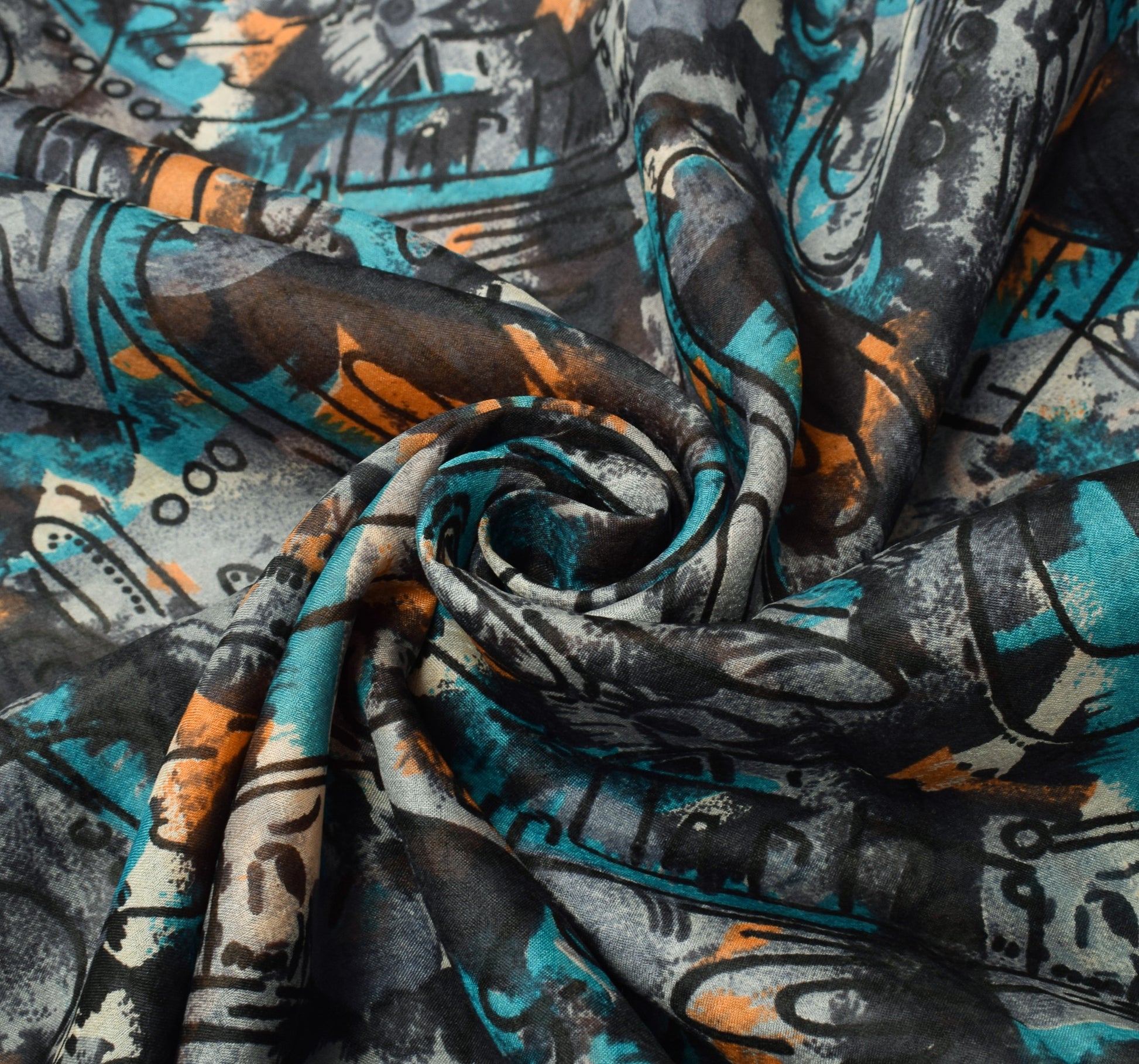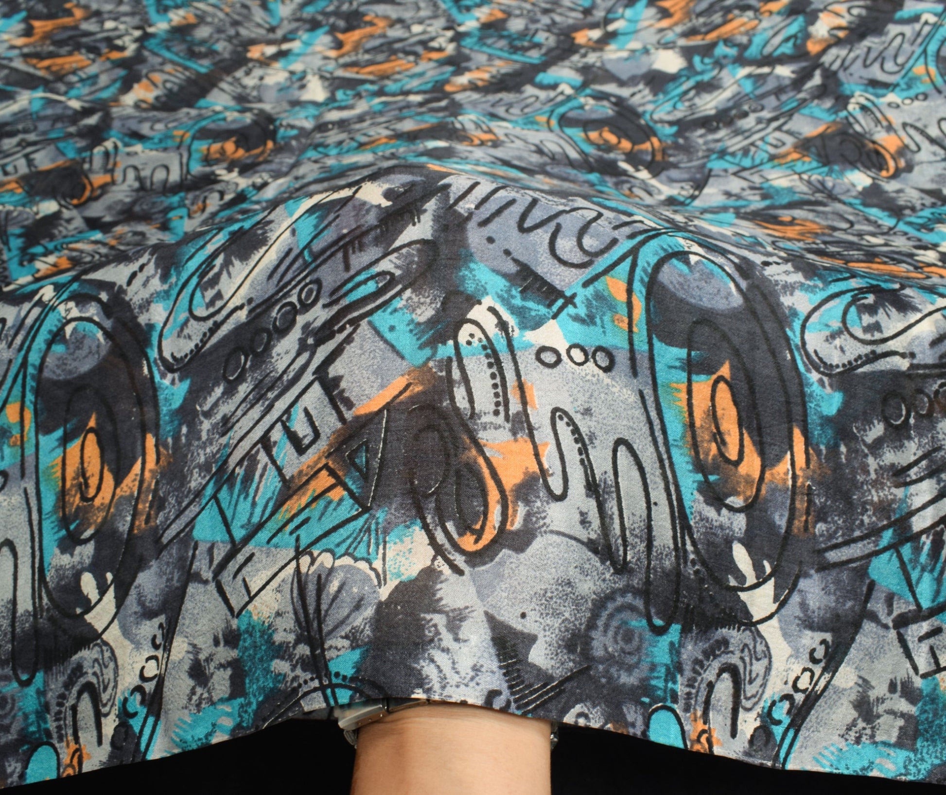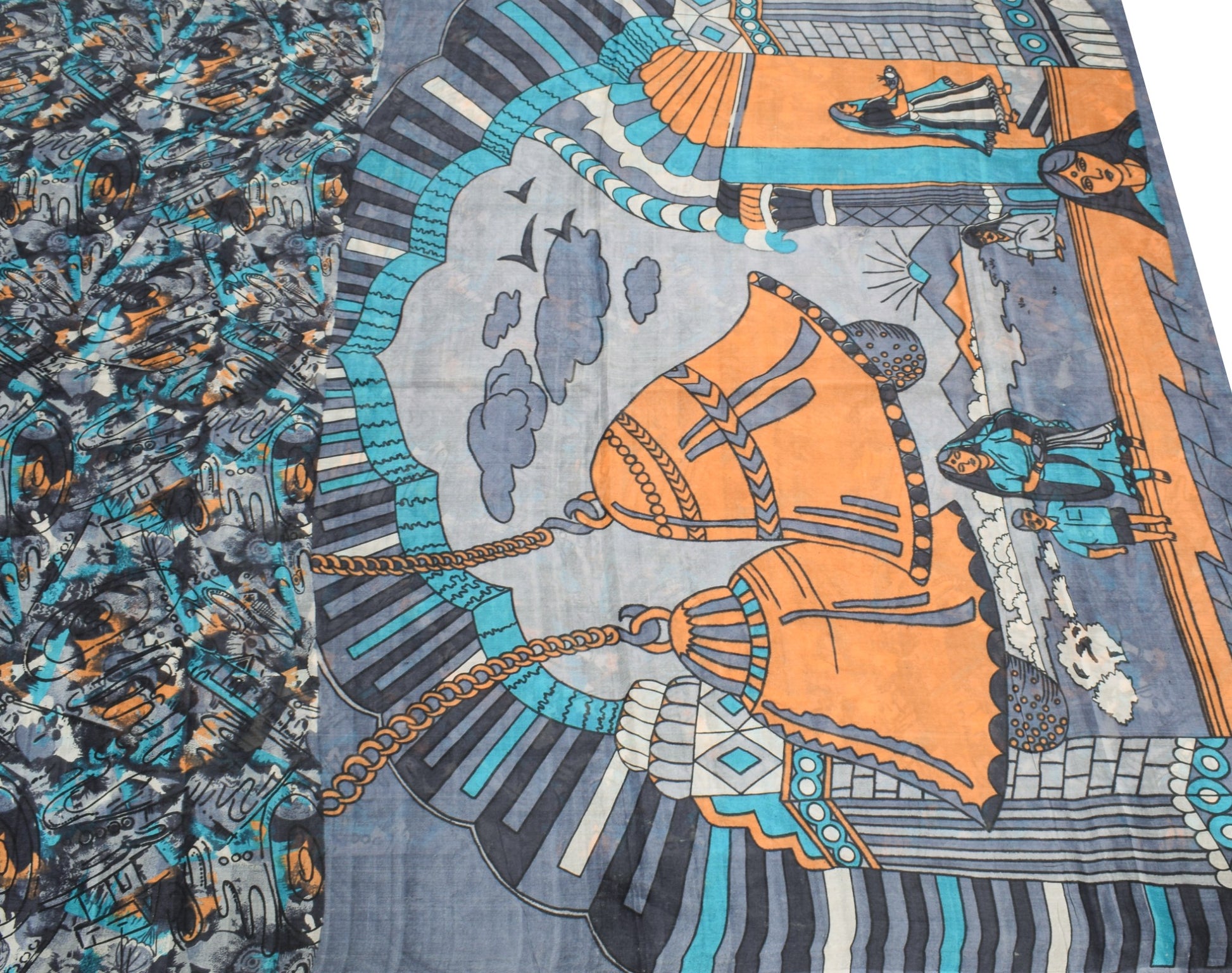 Sushila Vintage Antique Print Gray Saree 100% Pure Silk Indian Sari Craft Fabric