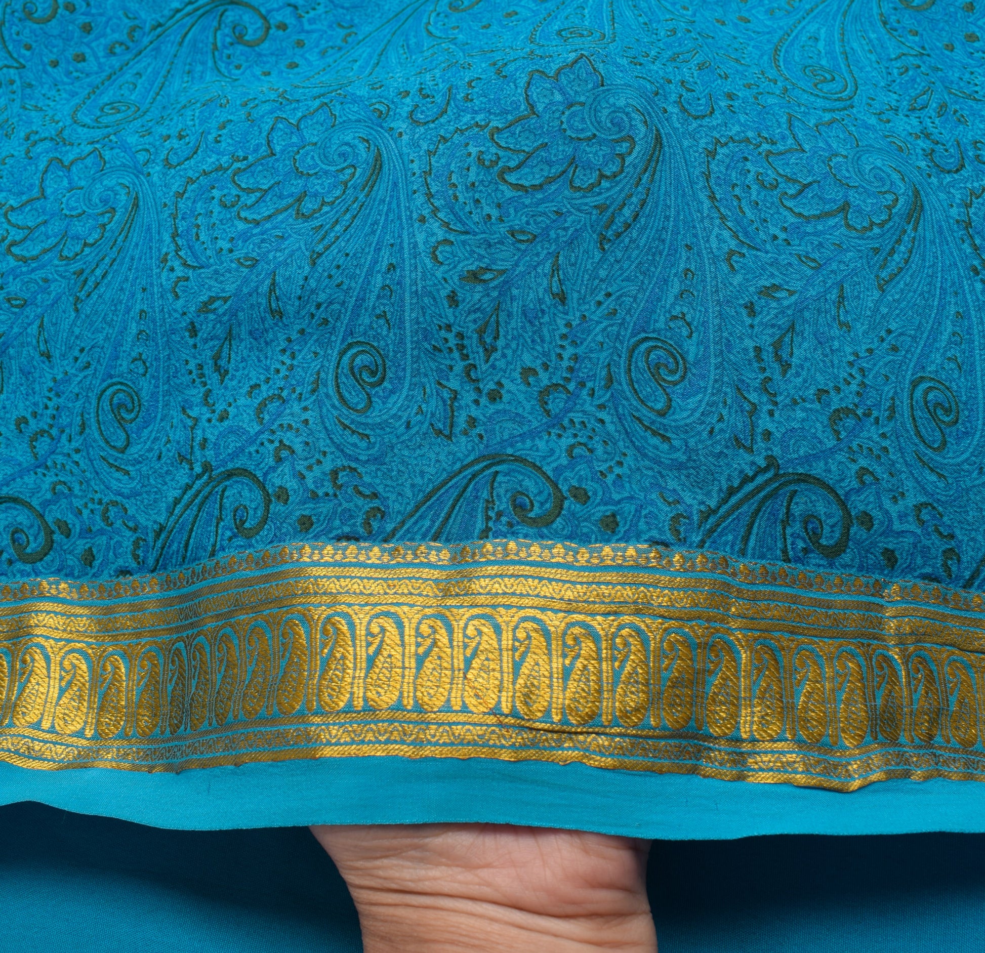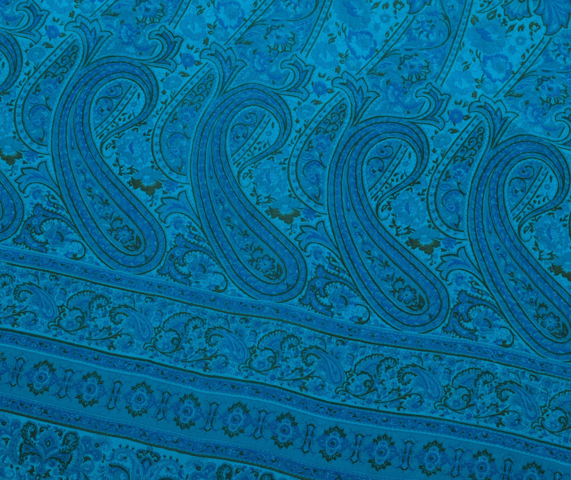 Sushila Vintage Aqua Blue Saree 100% Pure Crepe Silk Printed Paisley Soft Fabric