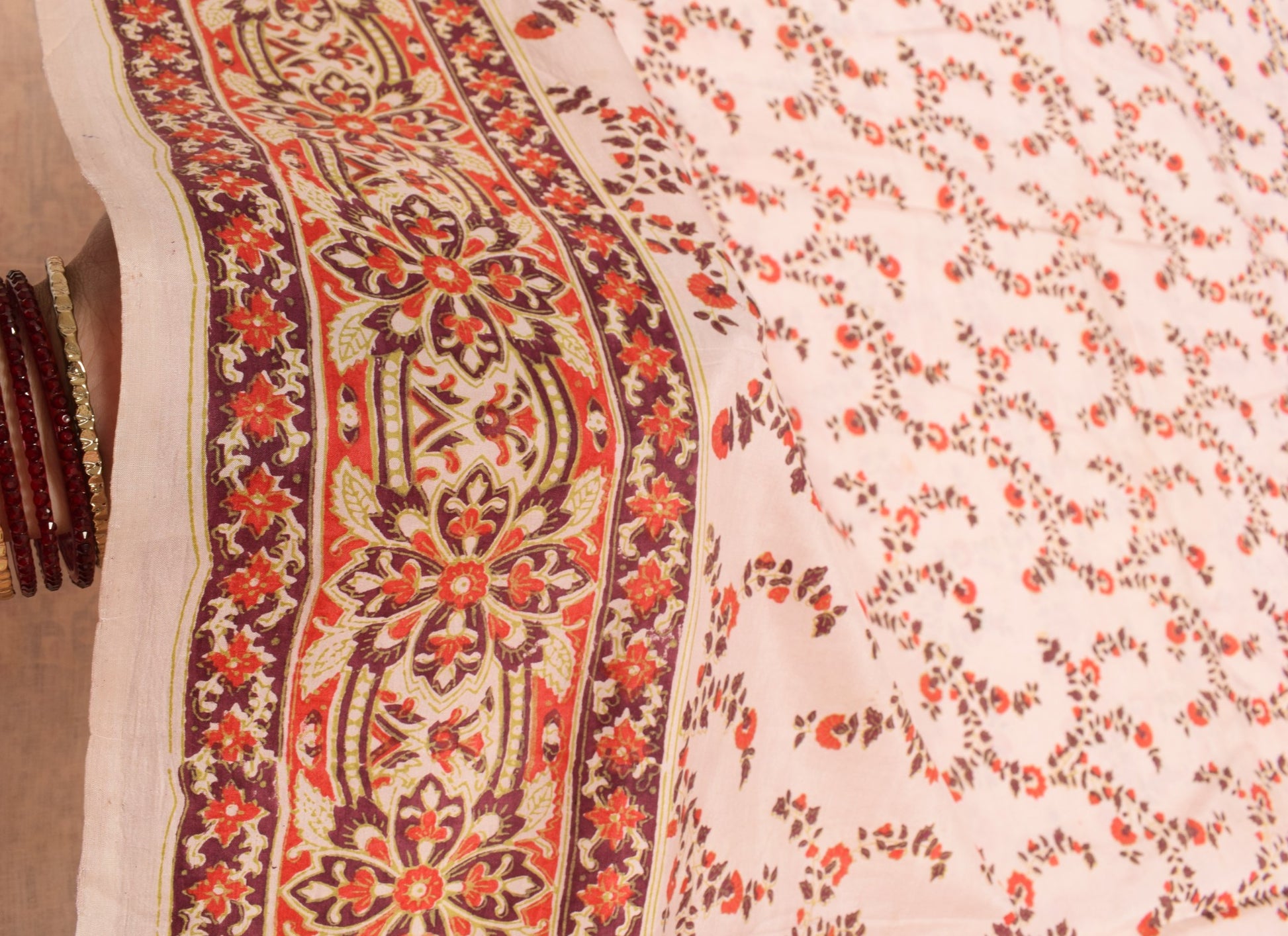 Sushila Vintage Baby Pink Saree 100% Pure Silk Hand Block Printed Soft Fabric