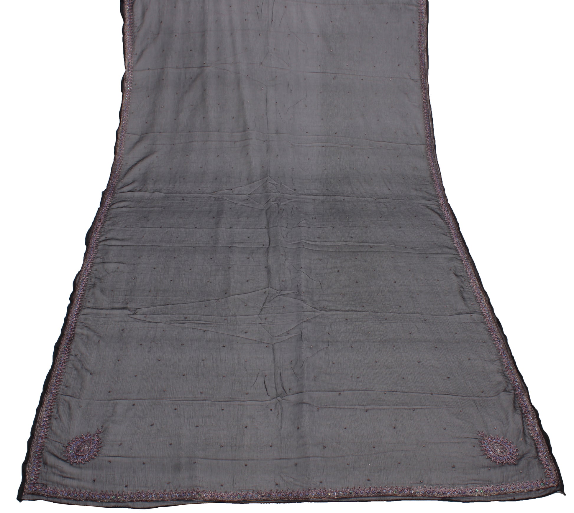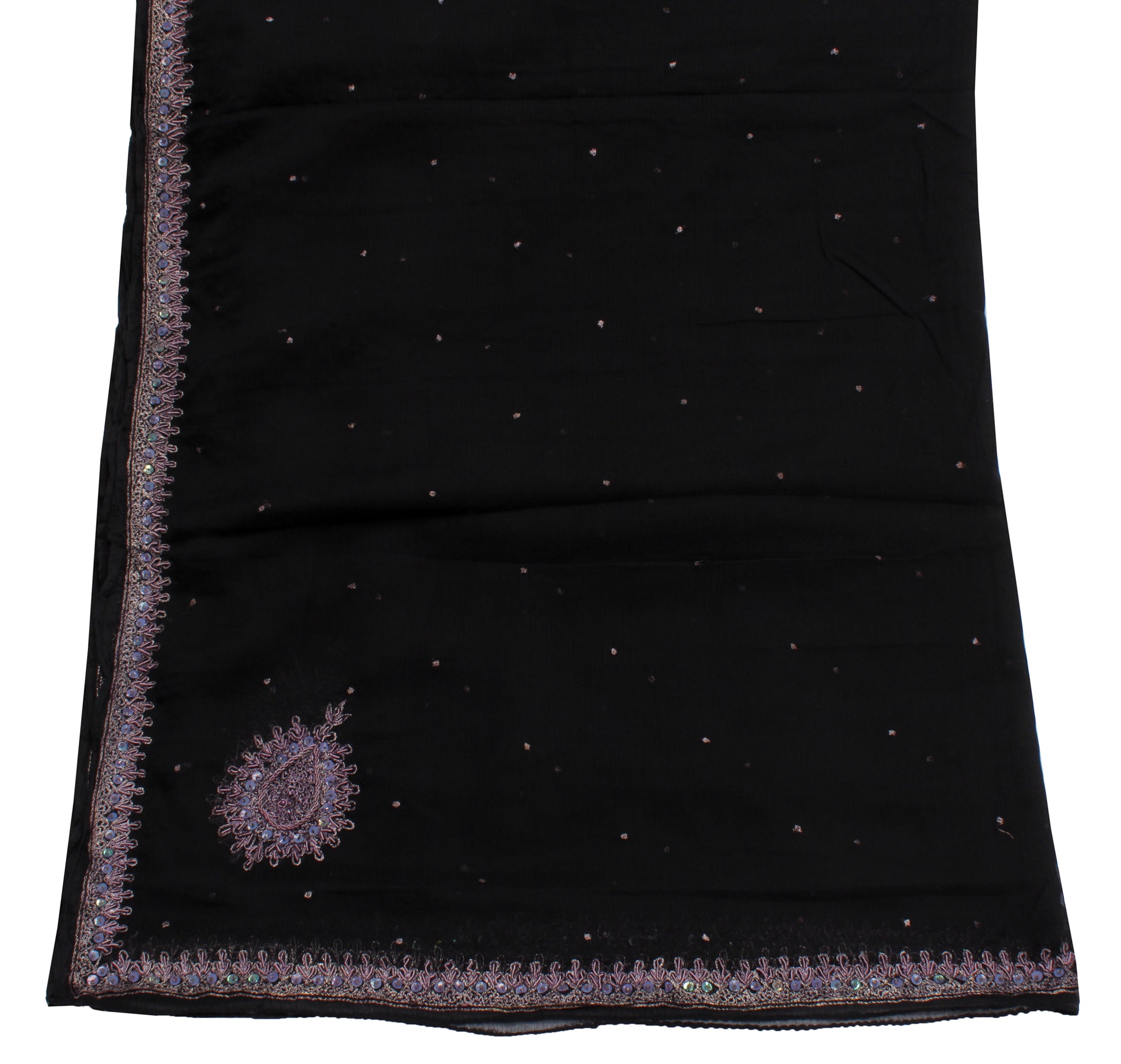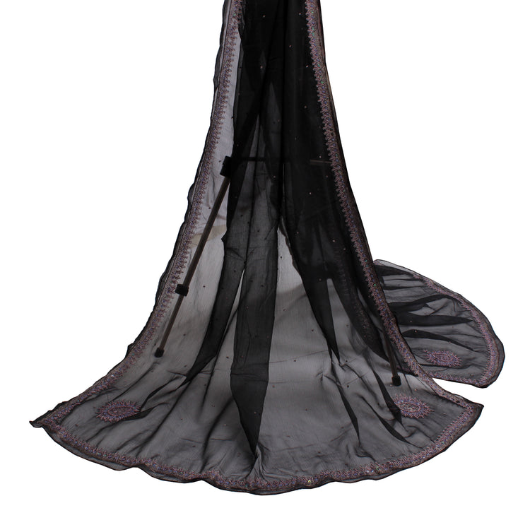 Sushila Vintage Black Dupatta Blend Chiffon Silk Hand Beaded Zardozi Long Stole