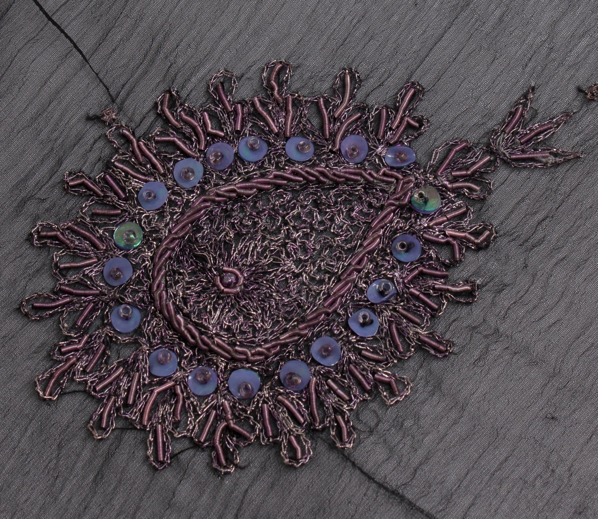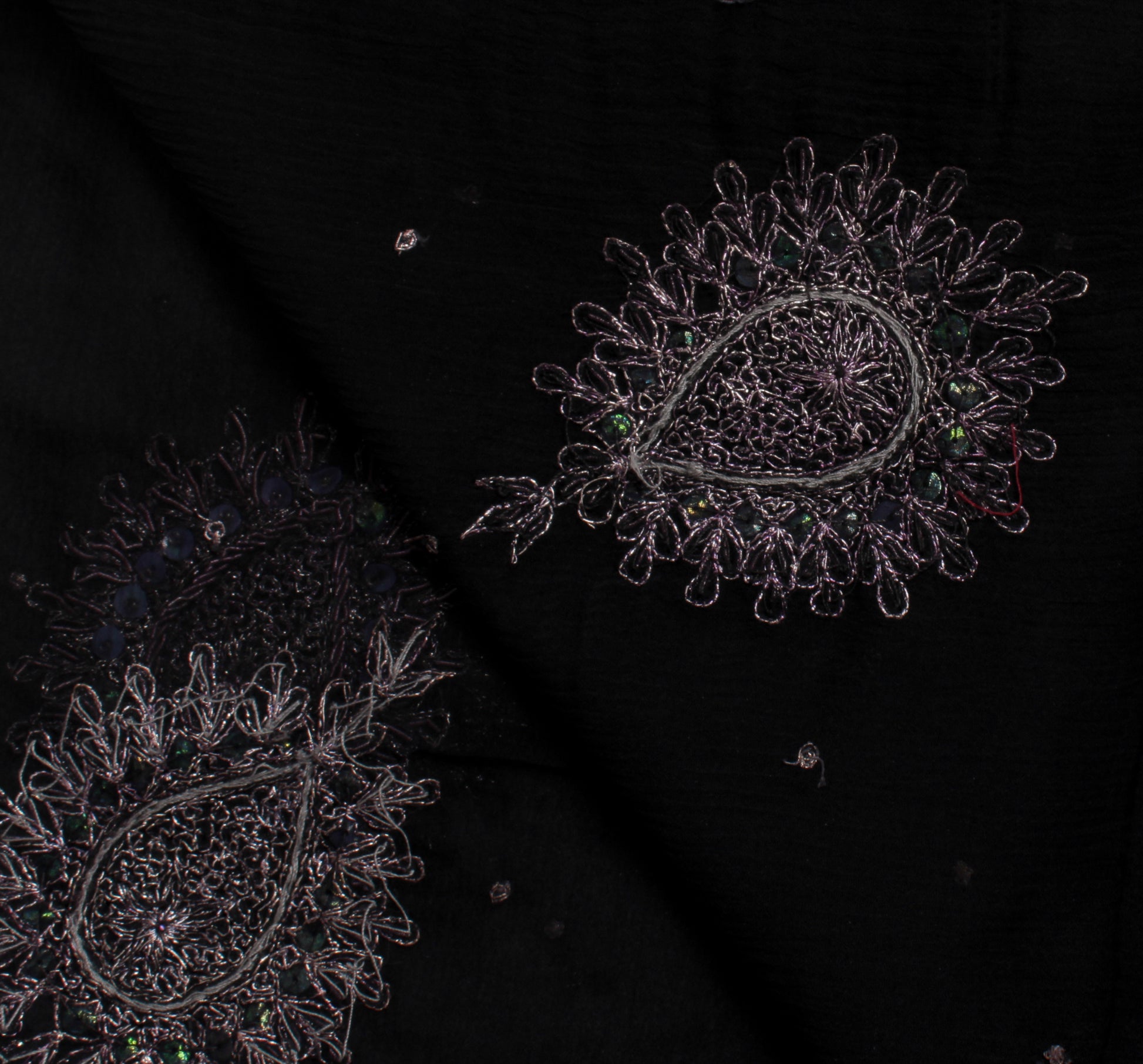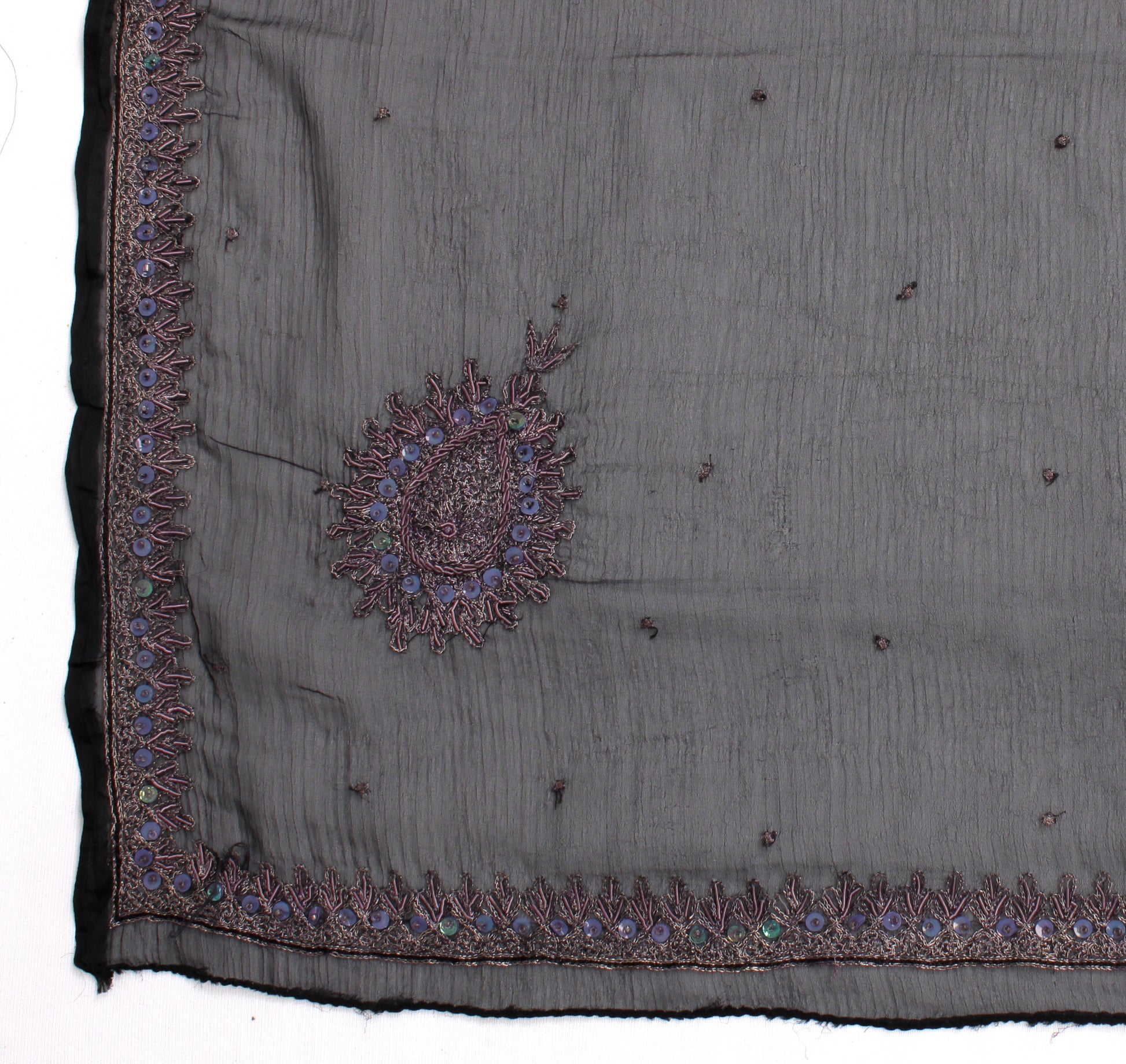 Sushila Vintage Black Dupatta Blend Chiffon Silk Hand Beaded Zardozi Long Stole
