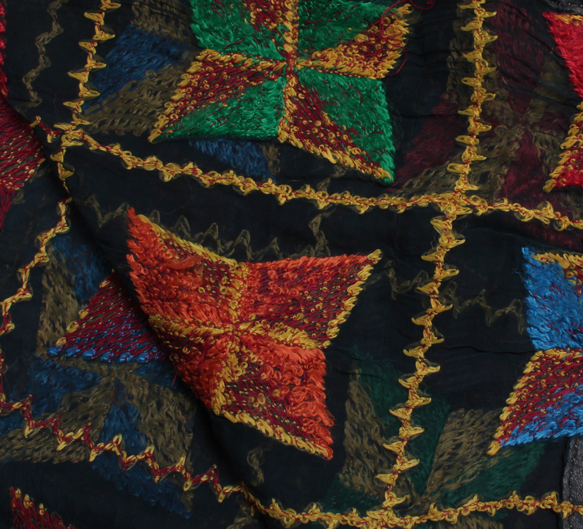Sushila Vintage Black Dupatta Blend Chiffon Silk Phulkari Embroidered Long Stole