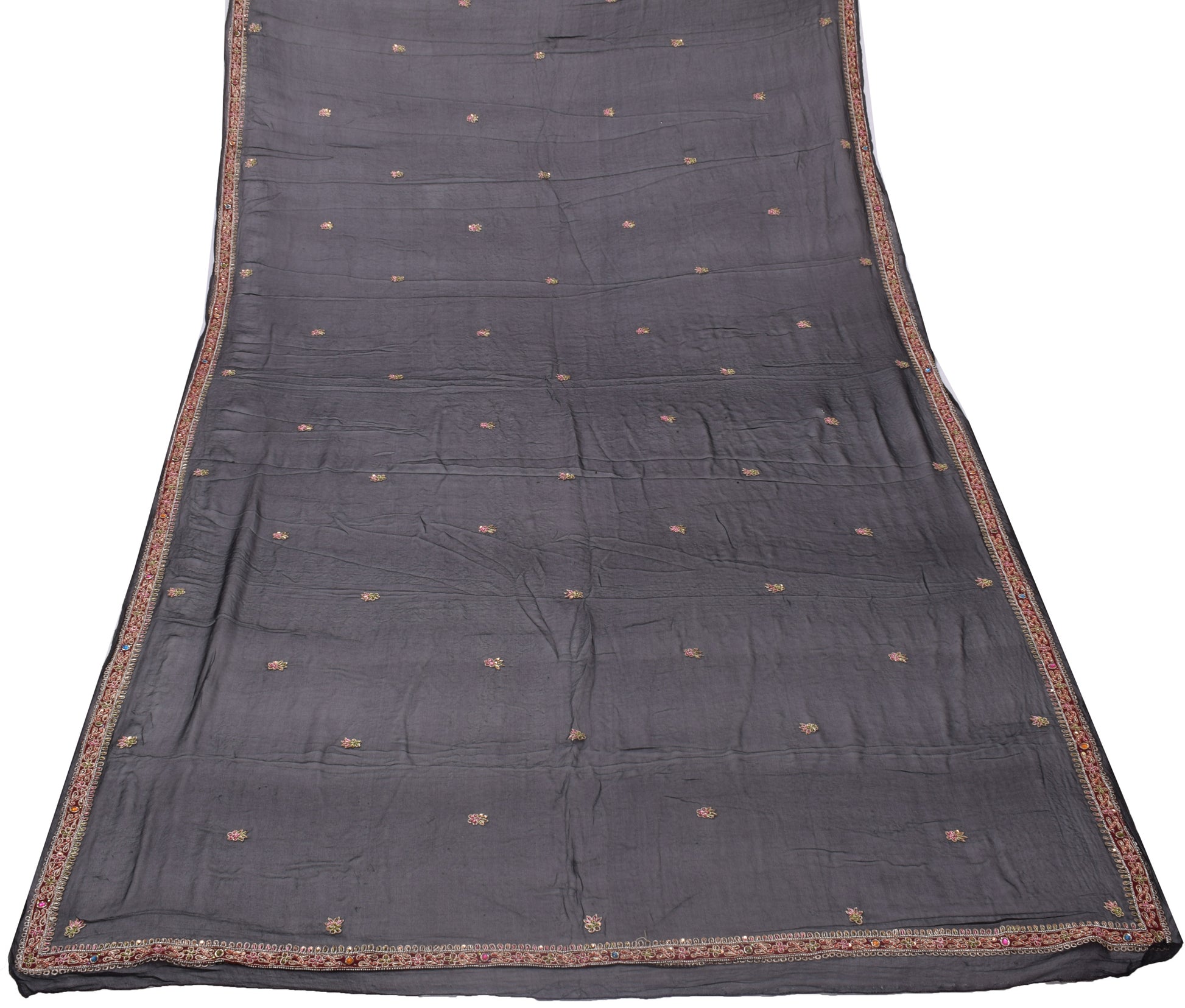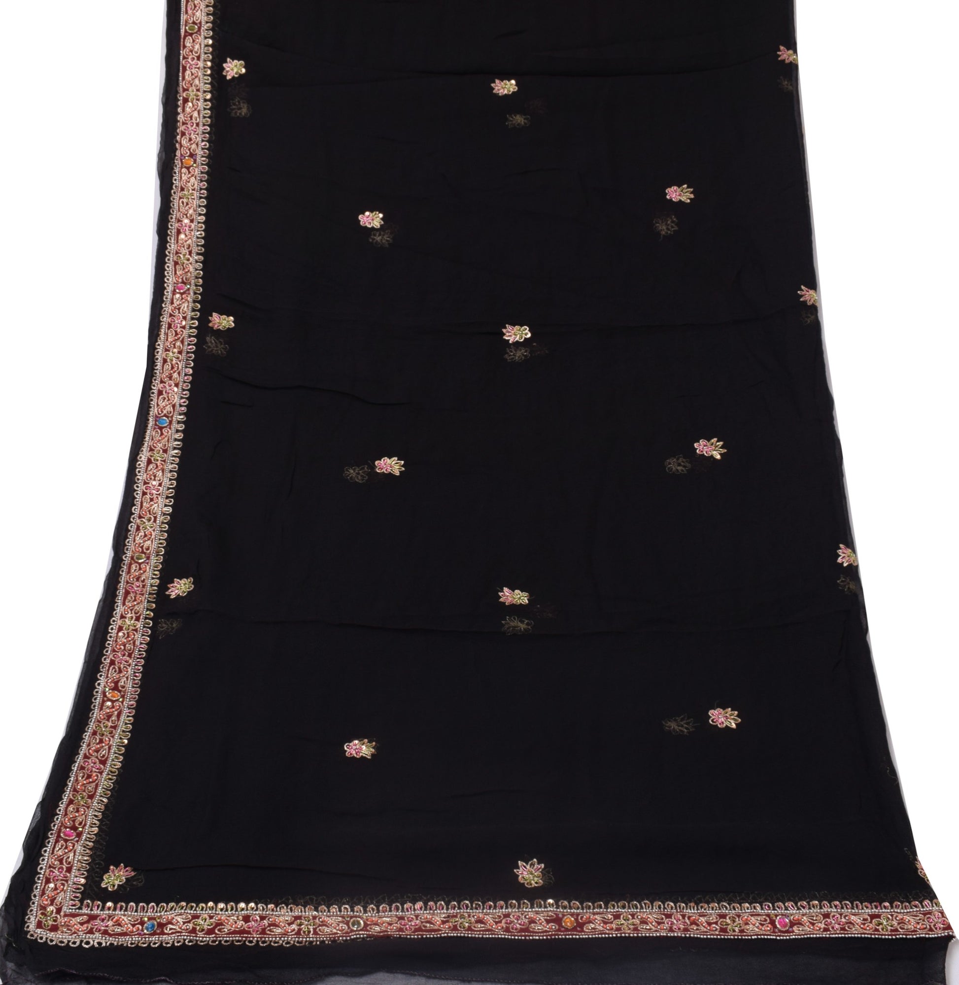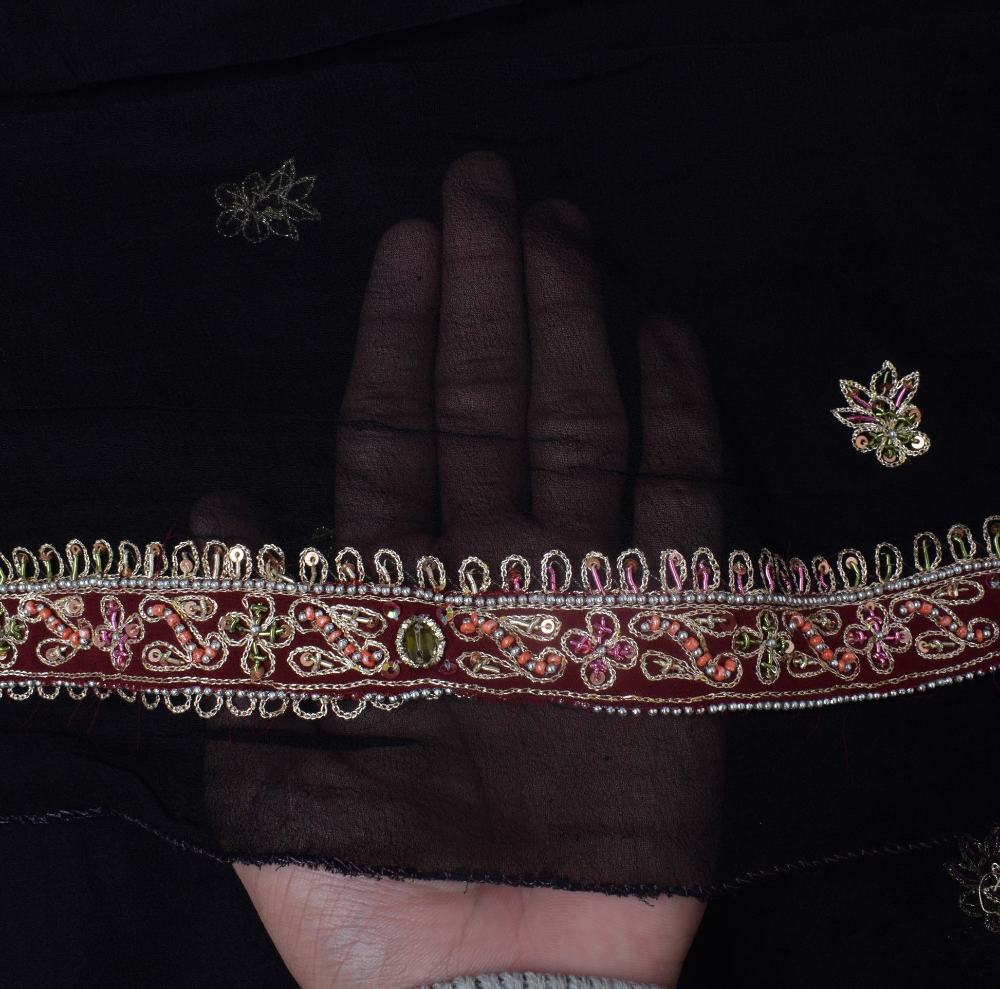 Sushila Vintage Black Dupatta Pure Georgette Silk Hand Beaded Long Stole Scarves