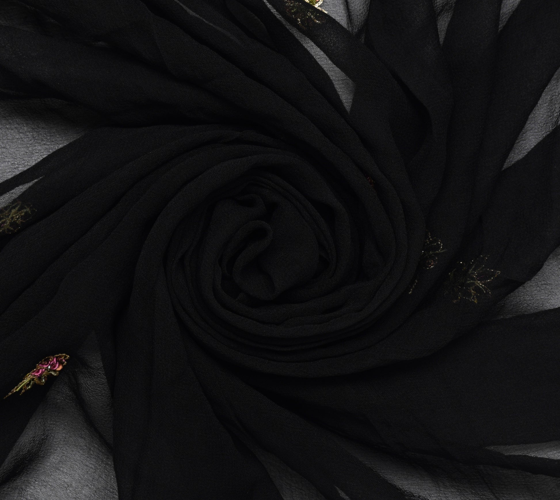 Step into a world of elegance with this richly textured Black Floral Dupatta, Scarf, Indian Long Stole, Veil, or Hijab, perfect for those who appreciate fine craftsmanship. Made from premium Pure Georgette Silk, this piece features intricate Hand Beaded Zardozi Work, Patch Work & Embroidered work, adding a touch of traditional charm to any outfit. The Black base beautifully complements the delicate Floral detailing, creating a truly timeless accessory.