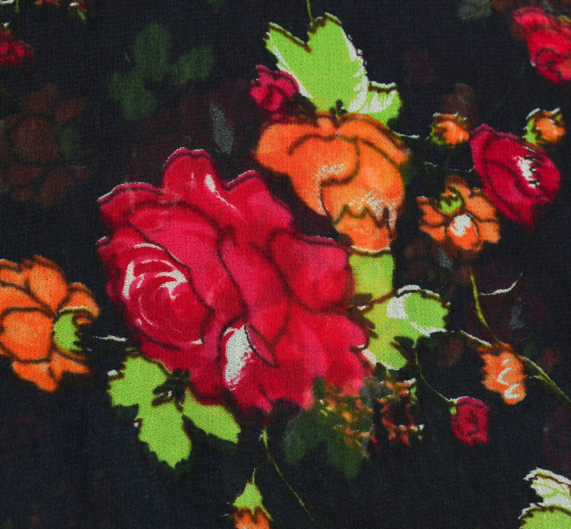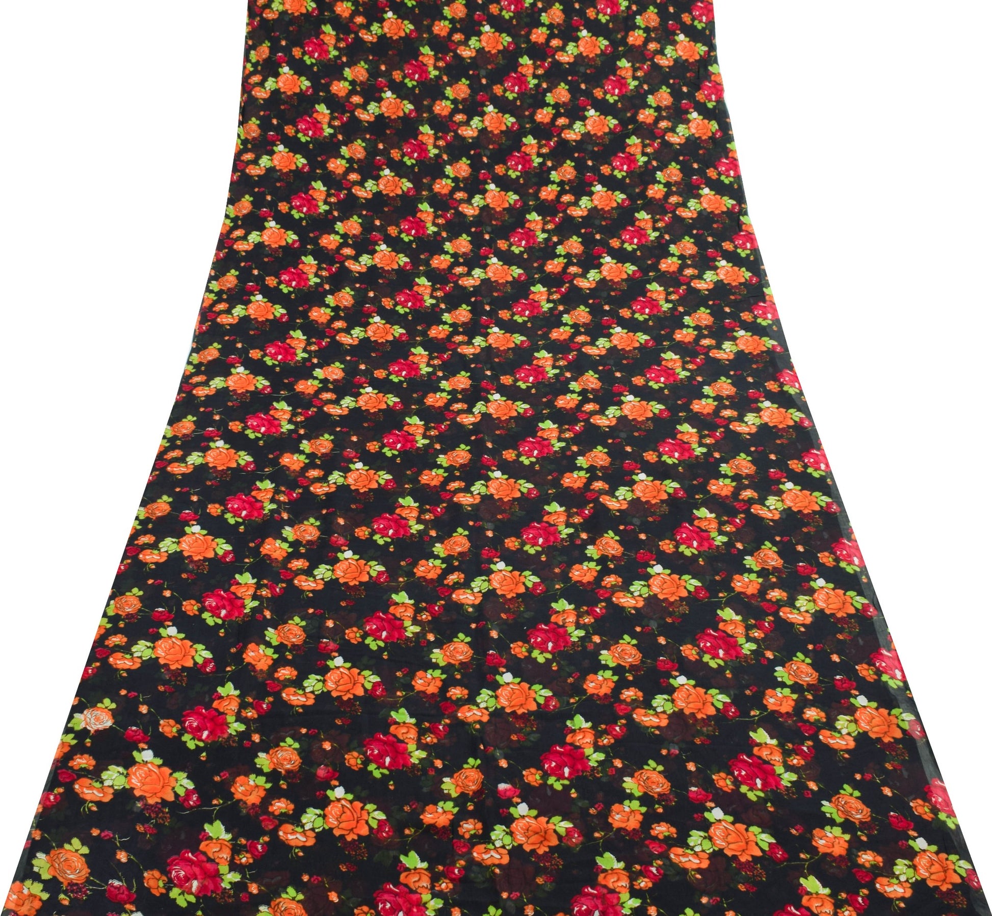 Sushila Vintage Black Floral Saree 100% Pure Georgette Silk Printed Craft Fabric