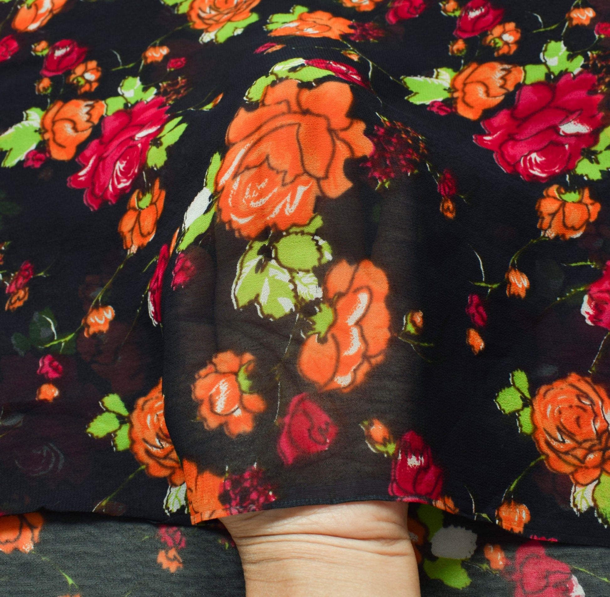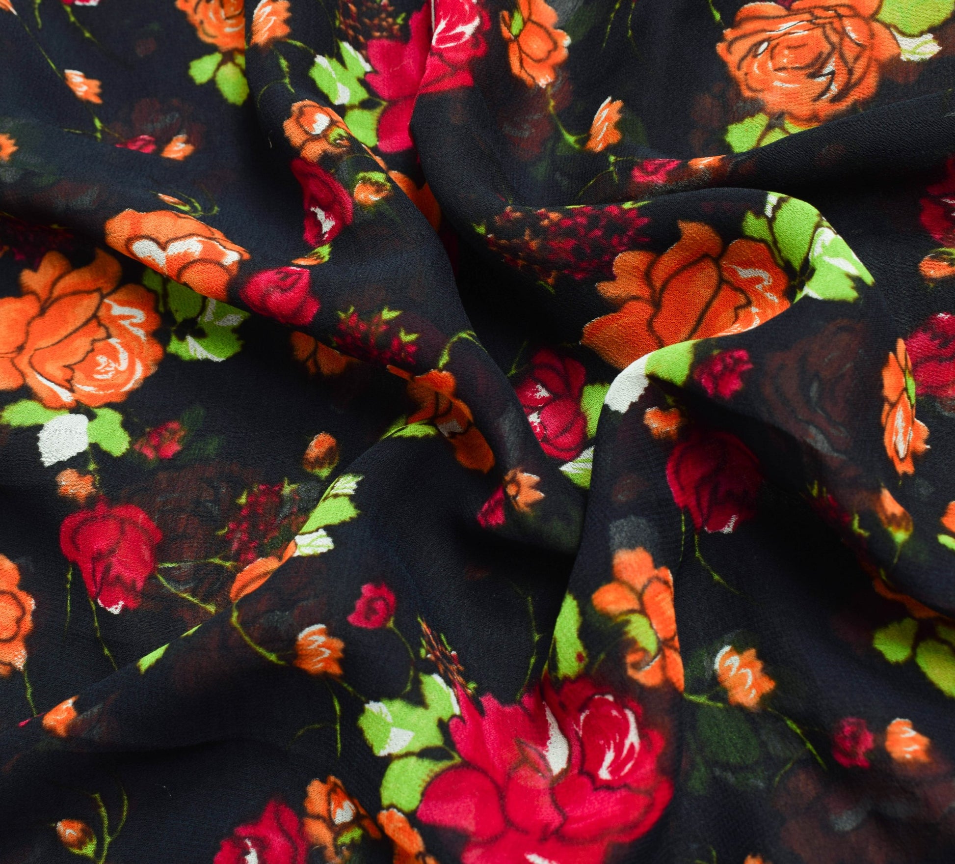 Step into classic sophistication with this Black 100% Pure Georgette Silk saree, known for its elegant Floral designs and delicate Printed craftsmanship. It is perfect for special occasions, creative repurposing, or as a beautiful heirloom gift. Measuring approximately 174 Inch in length and 39 Inch in width, this sari offers versatile styling options. It is lightweight, weighing just 310 Grams (Actual Product weight), making it easy to drape and carry for long hours. The natural breathability and luxurious drape of 100% pure georgette silk make it a prized choice for those who appreciate fine craftsmanship and vintage fashion.