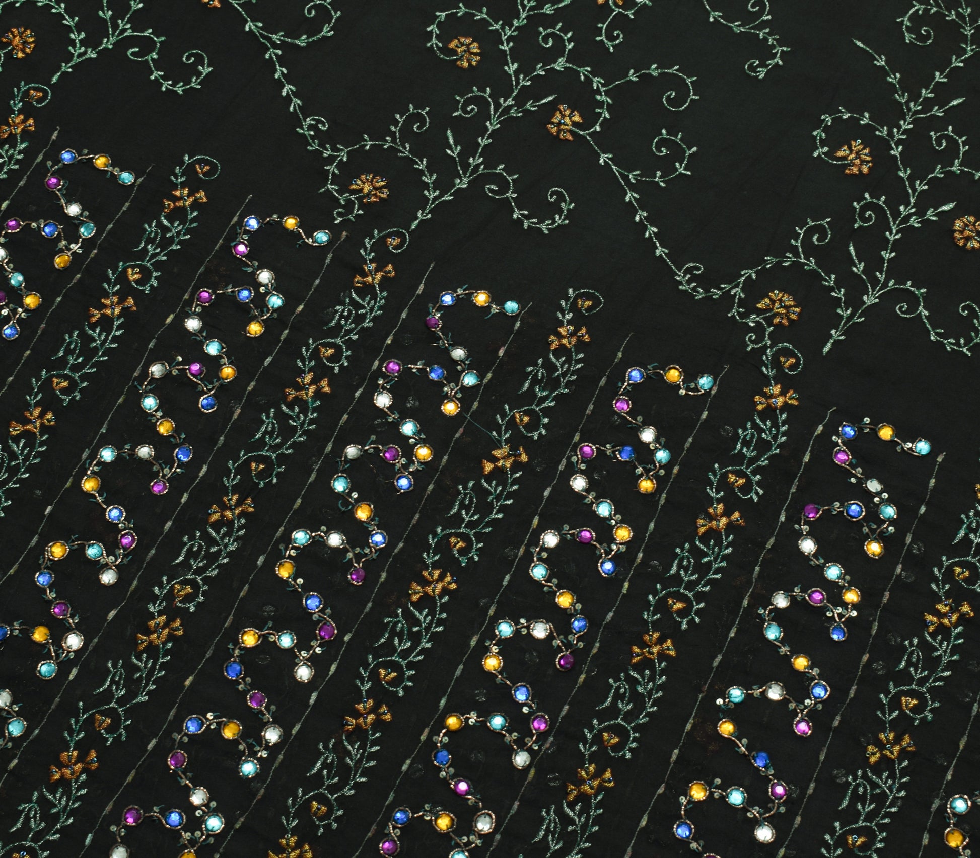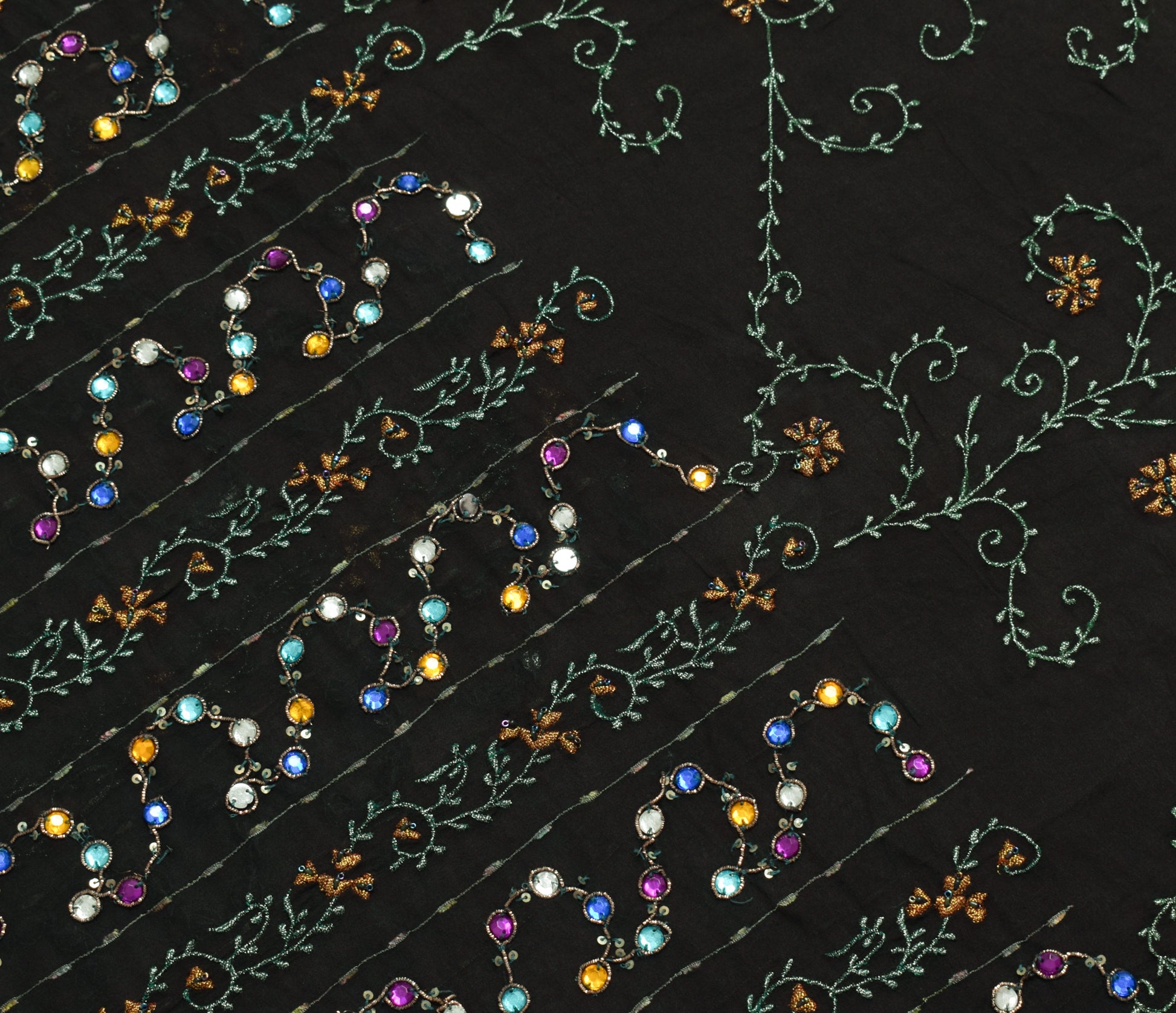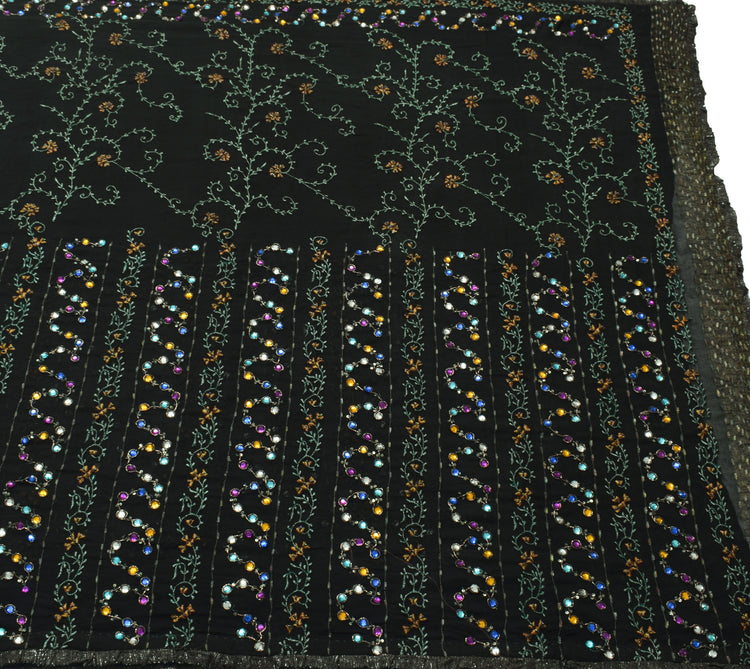 Sushila Vintage Black Heavy Saree Pure Georgette Silk Hand Beaded Sari Fabric