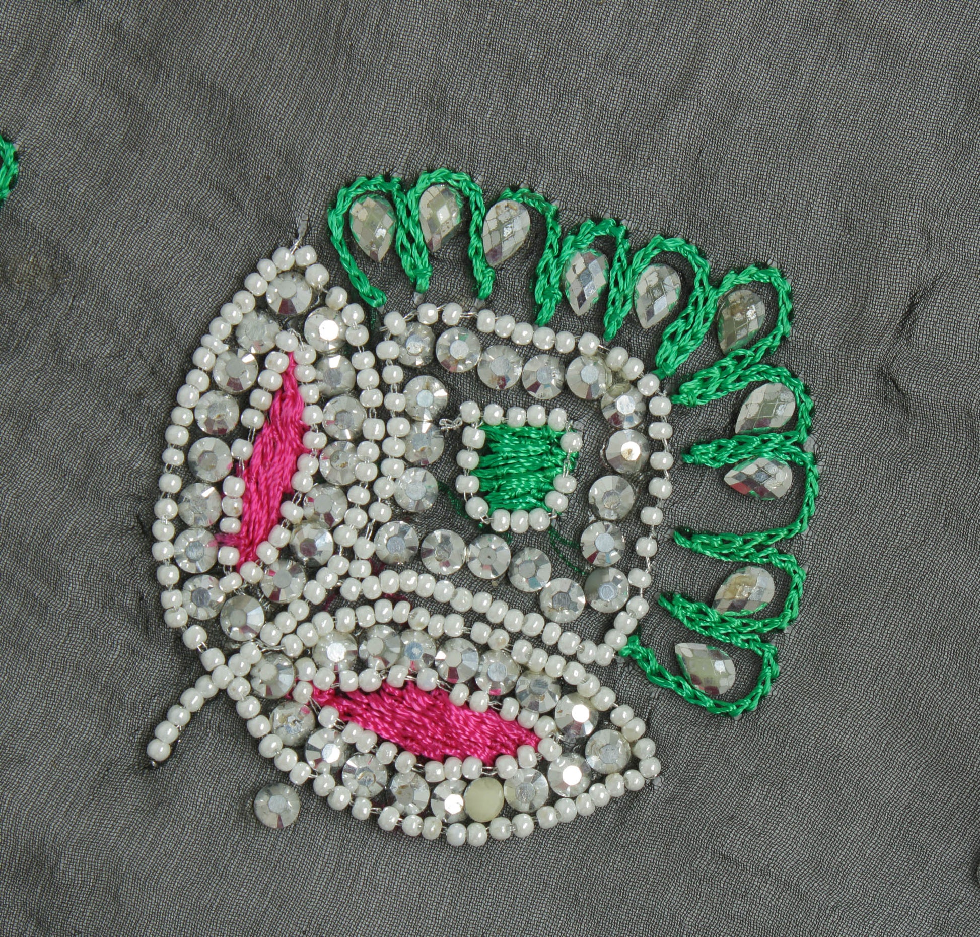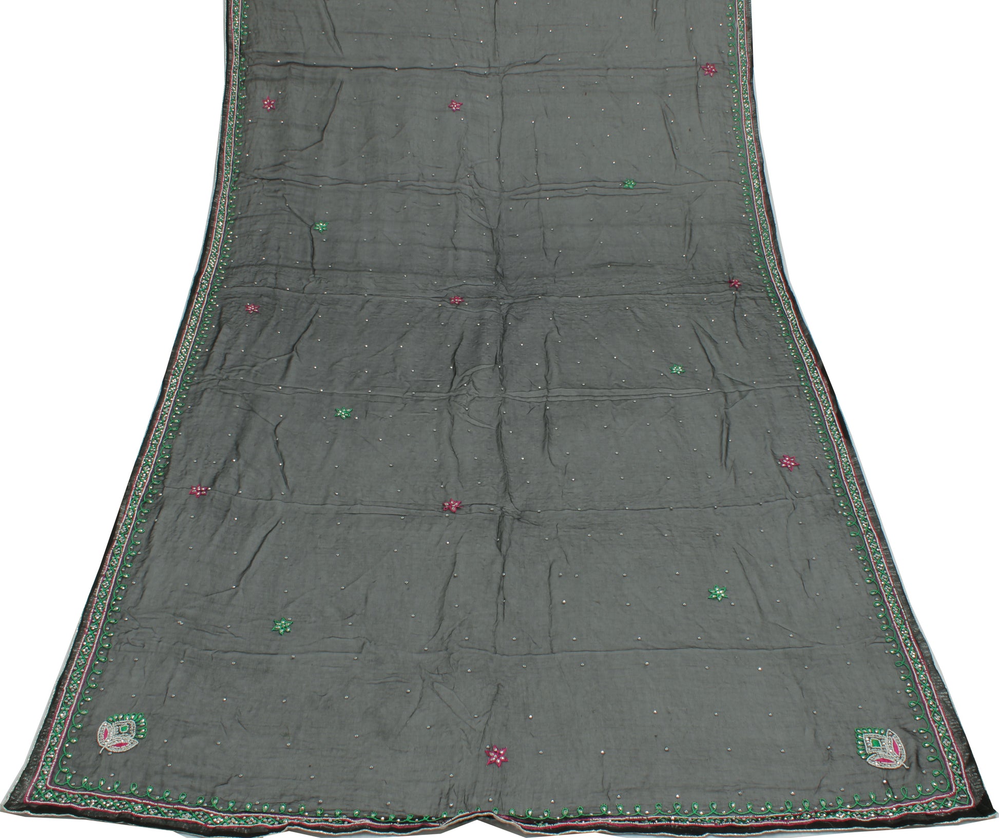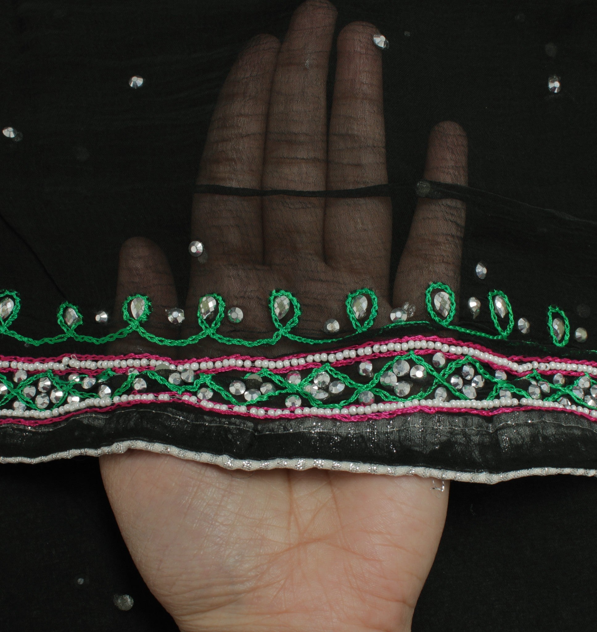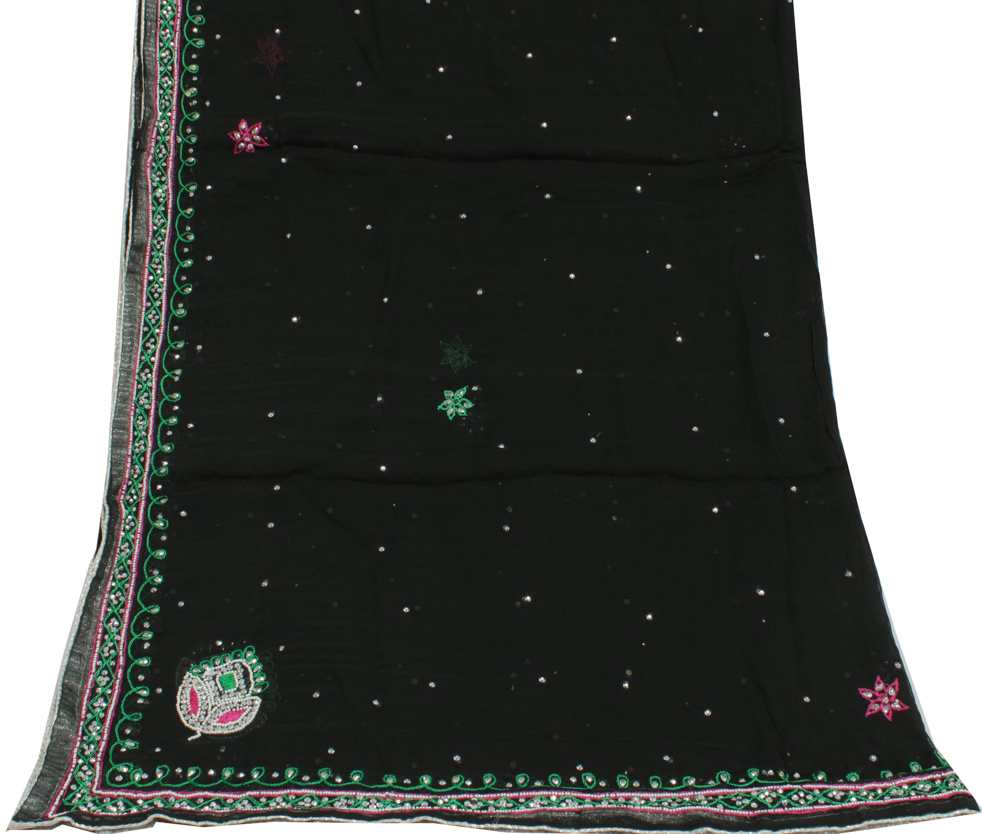 Sushila Vintage Black Indian Dupatta Pure Chiffon Silk Embroidered Long Stole