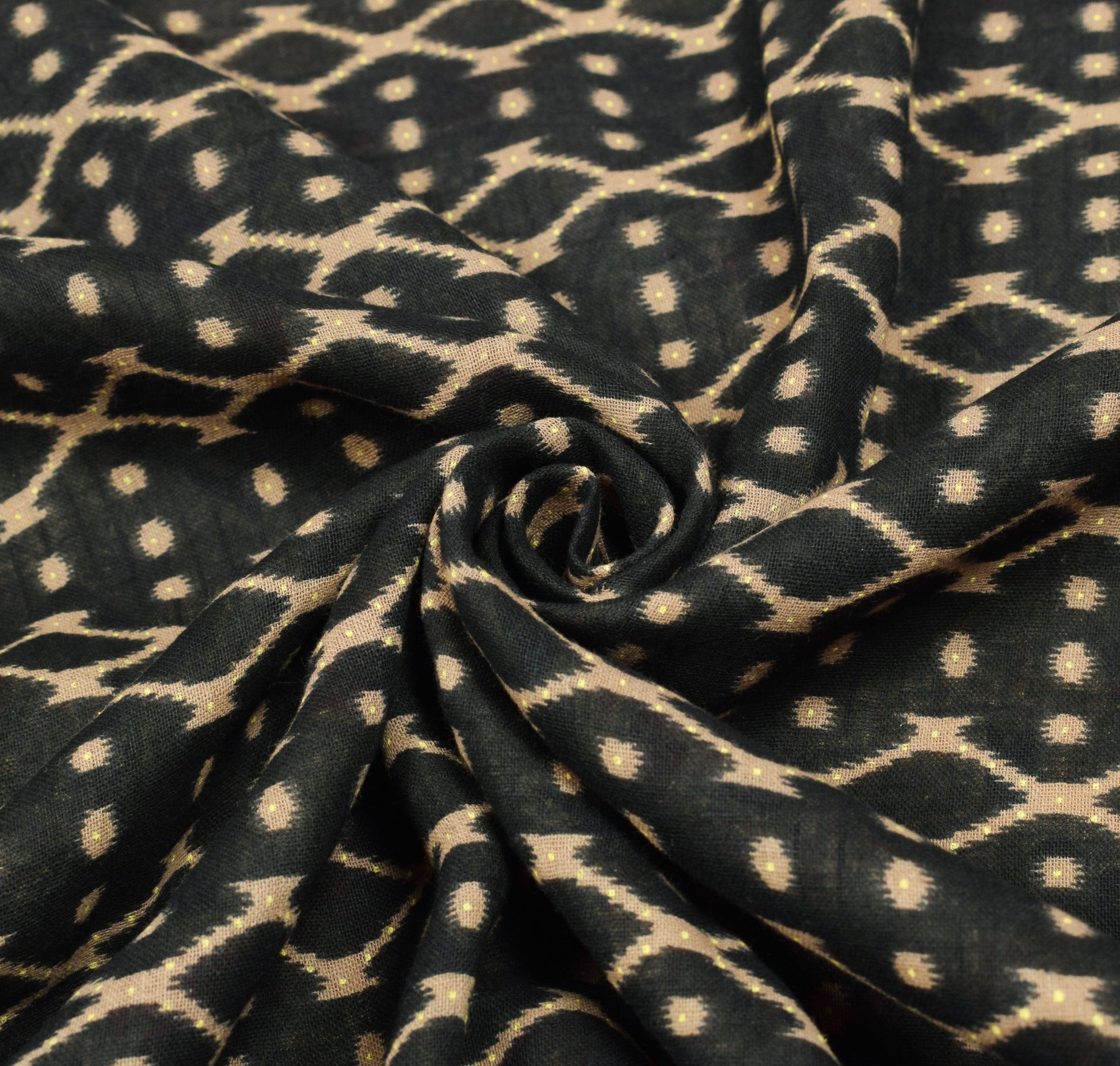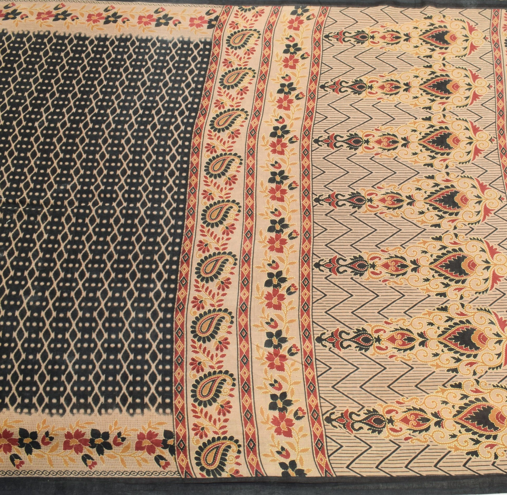 Sushila Vintage Black Saree 100% Pure Cotton Printed Indian Soft Craft Fabric