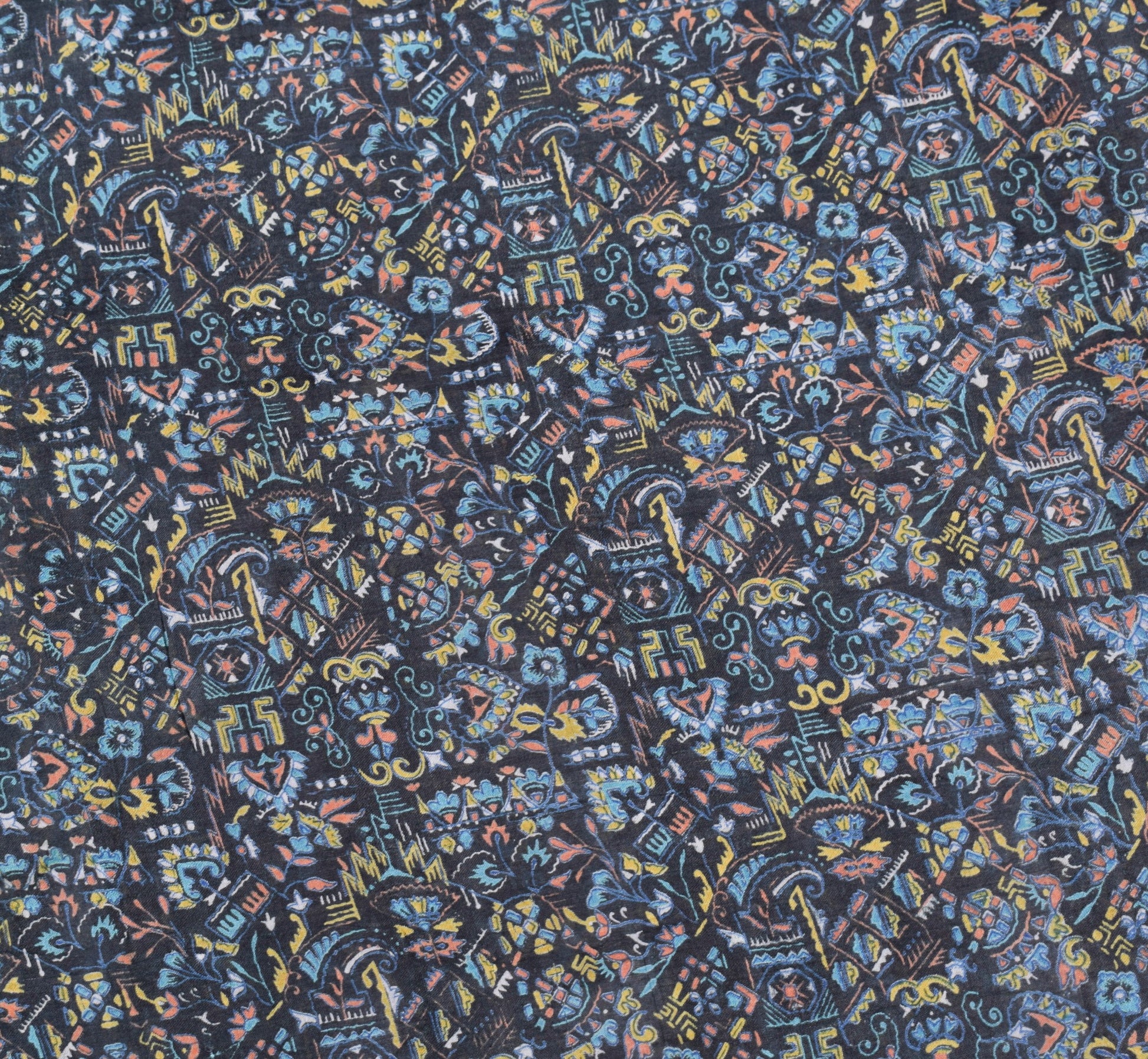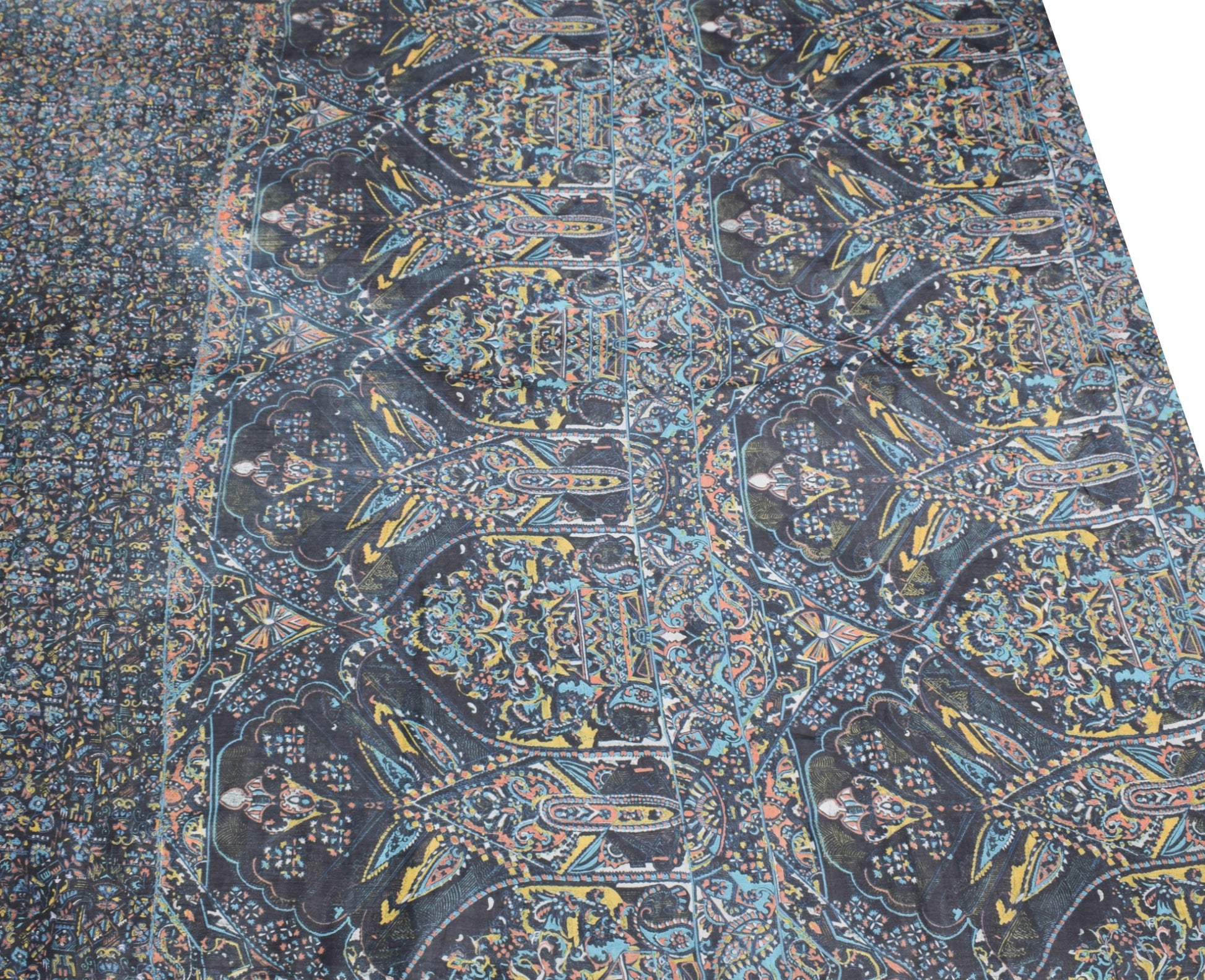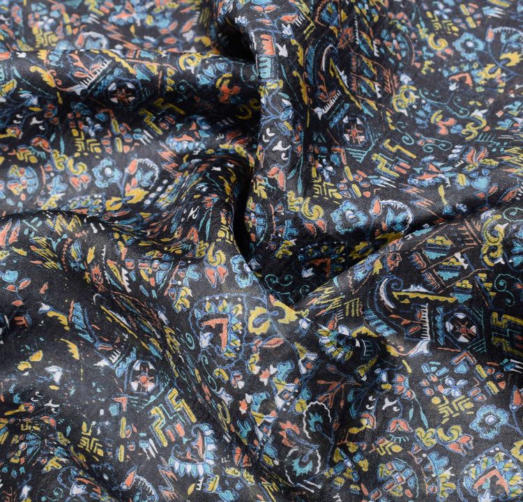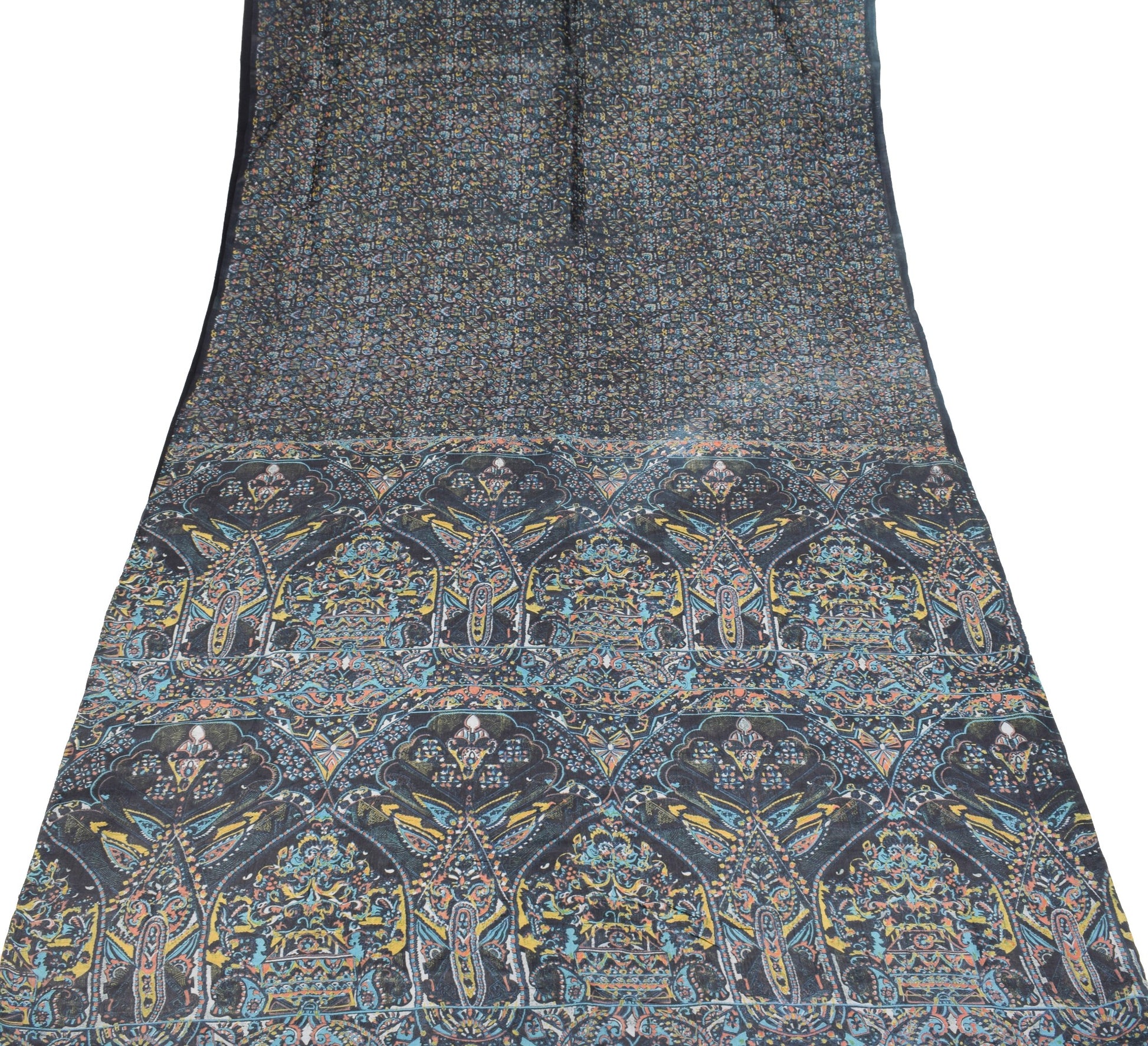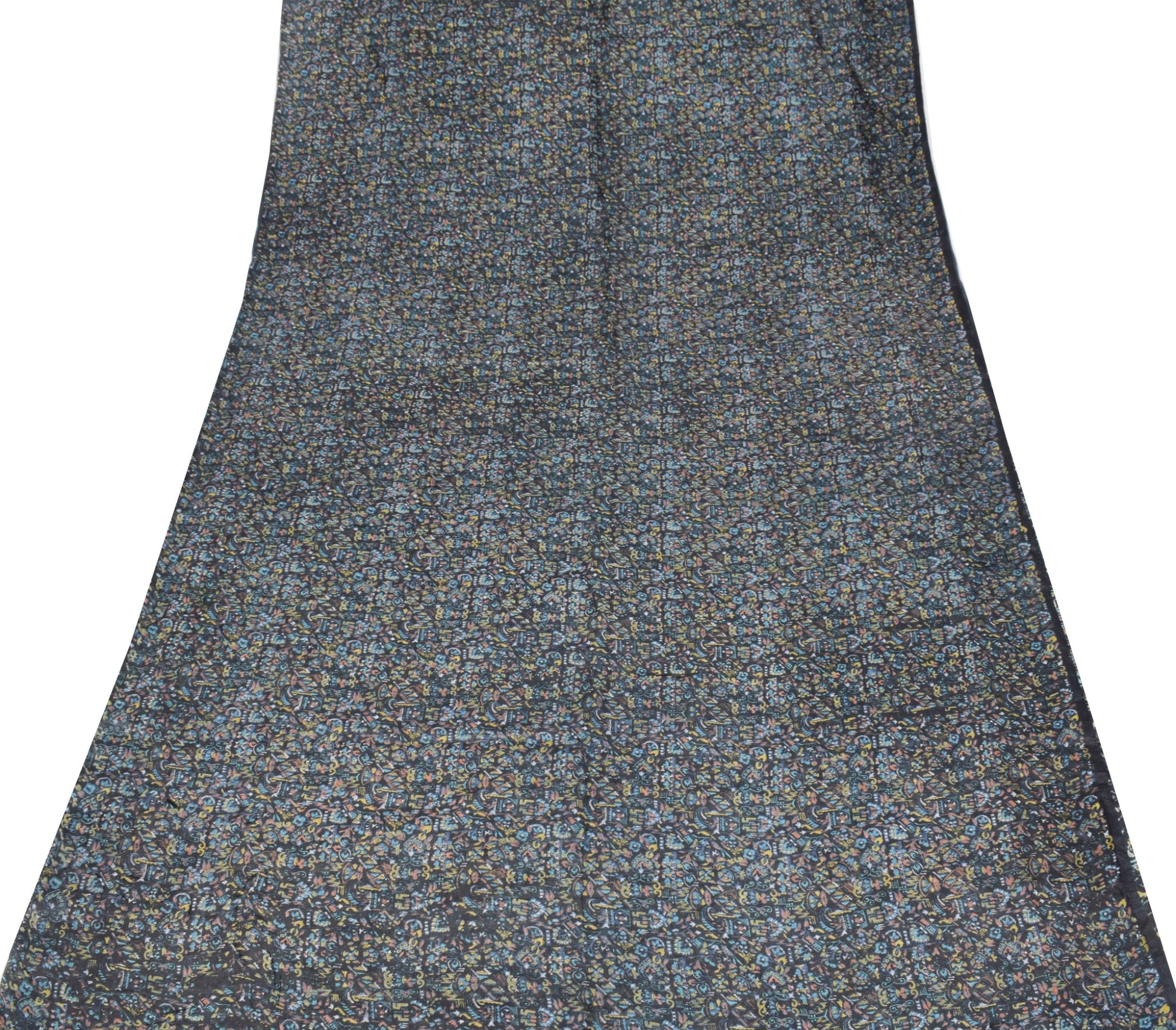 Sushila Vintage Black Saree 100% Pure Silk Printed Abstract Soft Craft Fabric