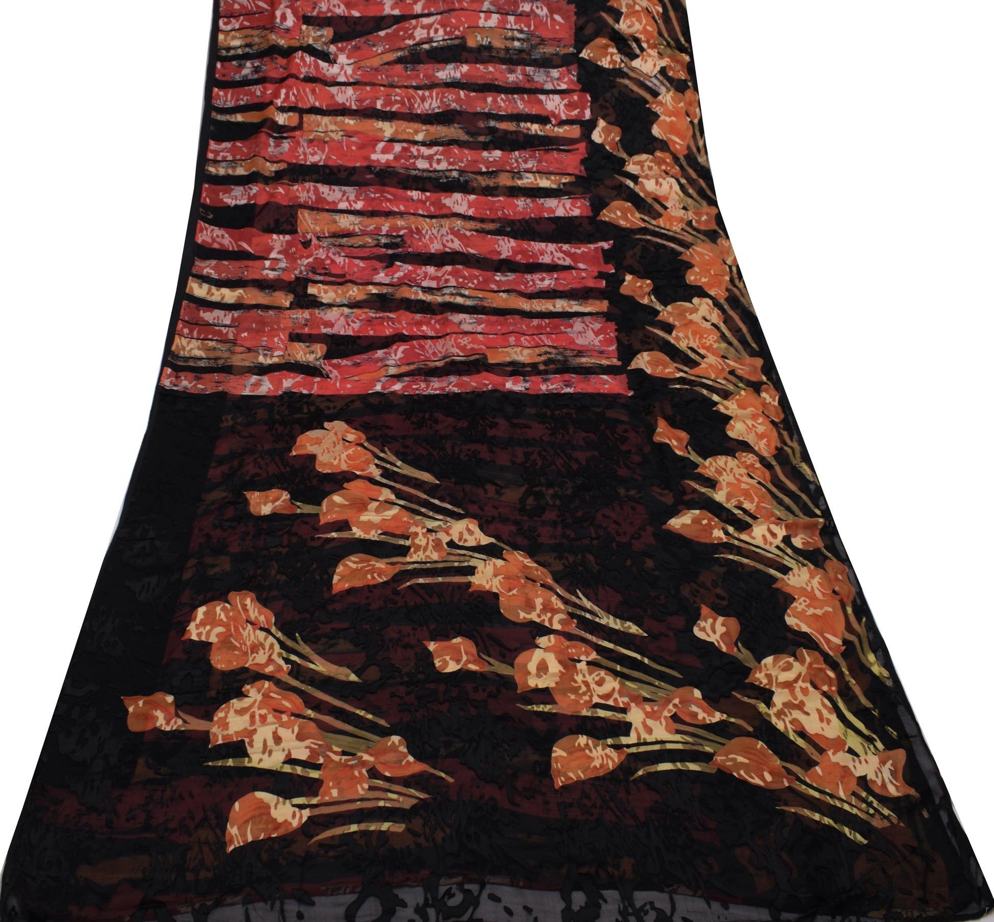Sushila Vintage Black Saree Blend Georgette Silk Printed Flroal Craft Fabric