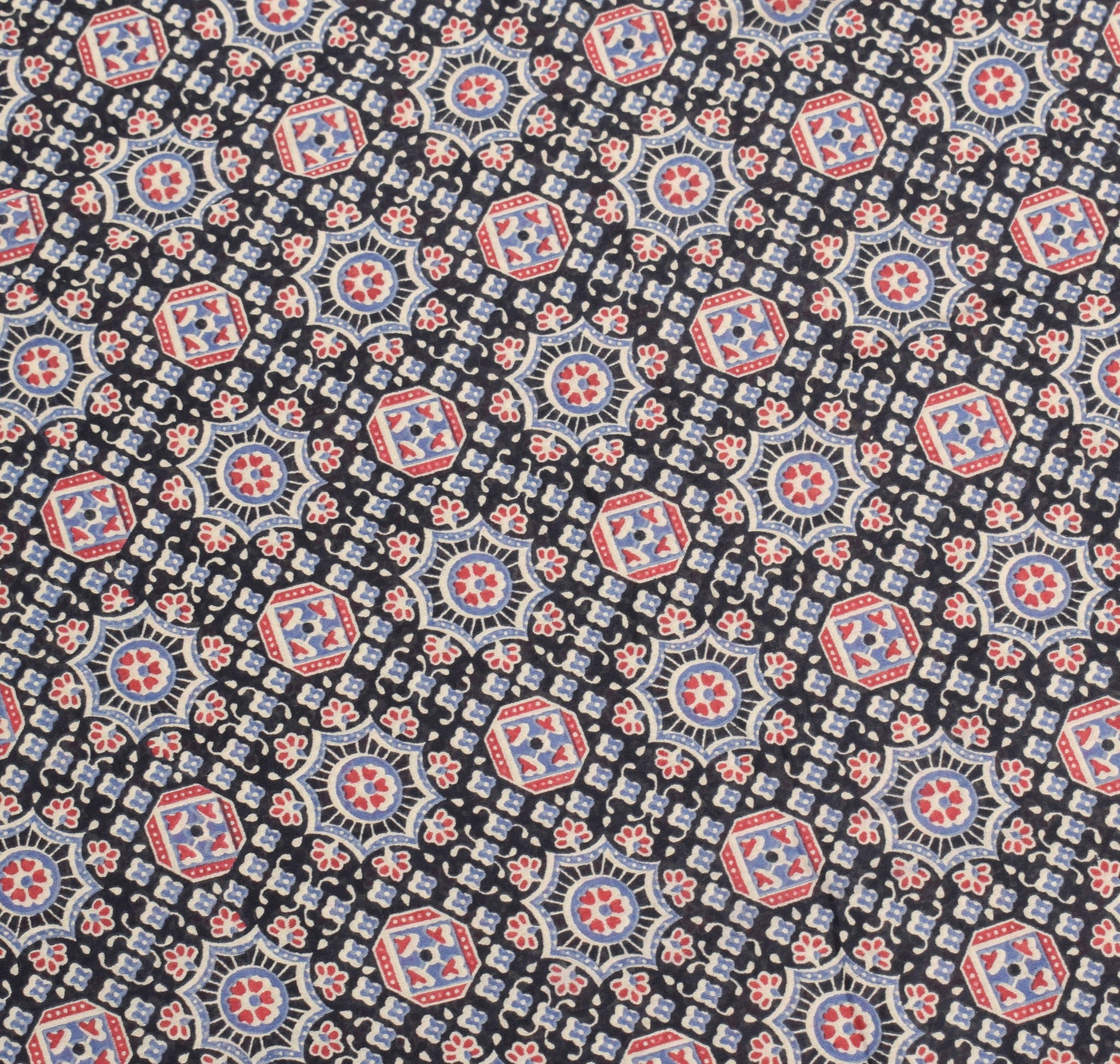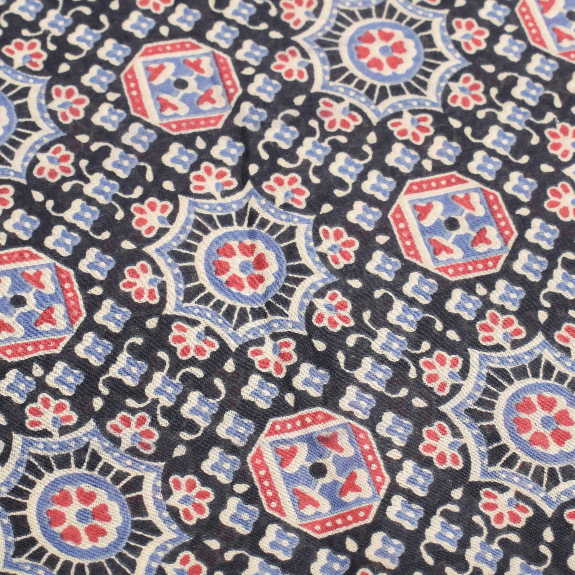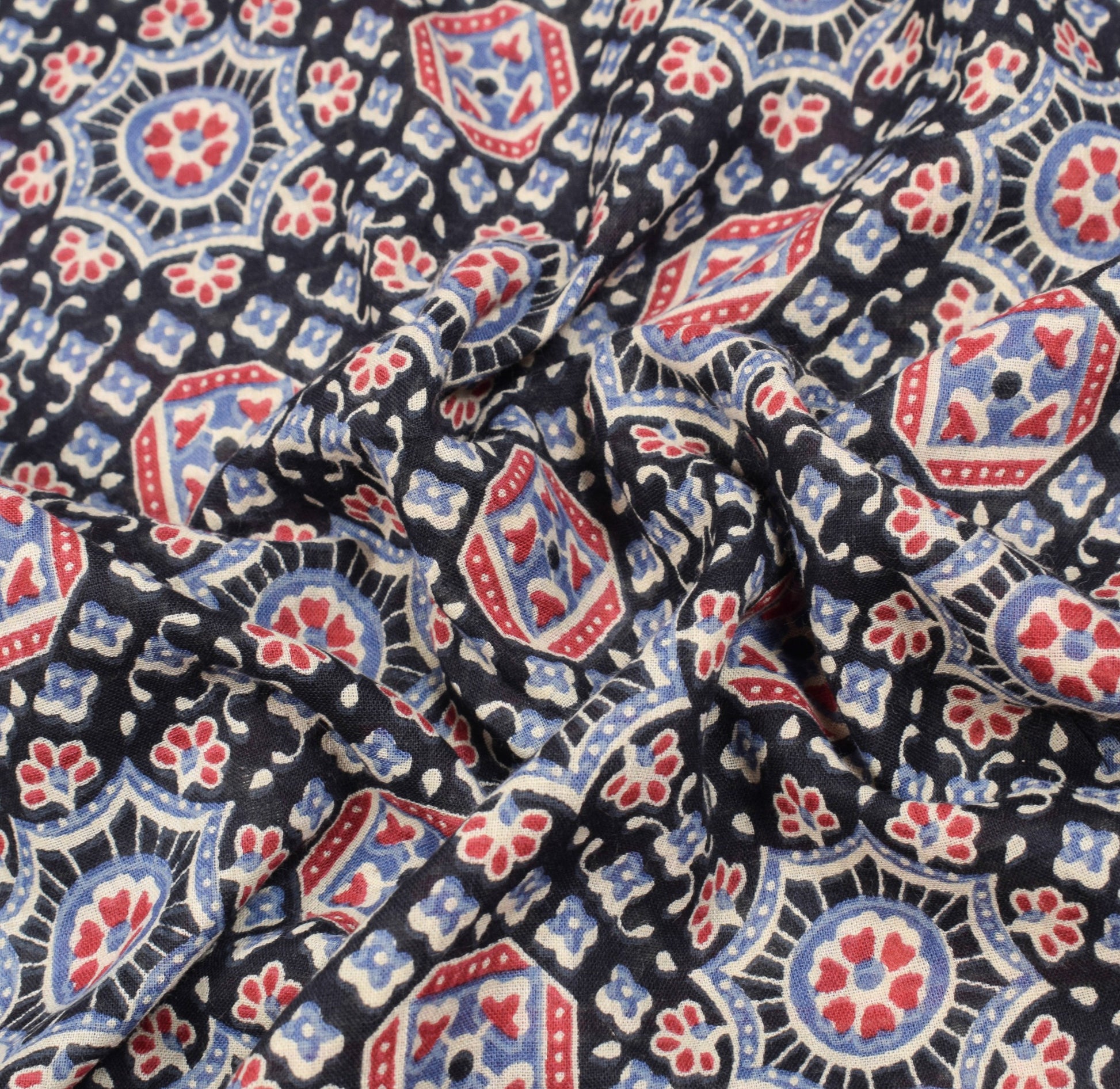 Sushila Vintage Black Saree Pure Cotton Ajrakh Hand Block Print Sari Soft Fabric