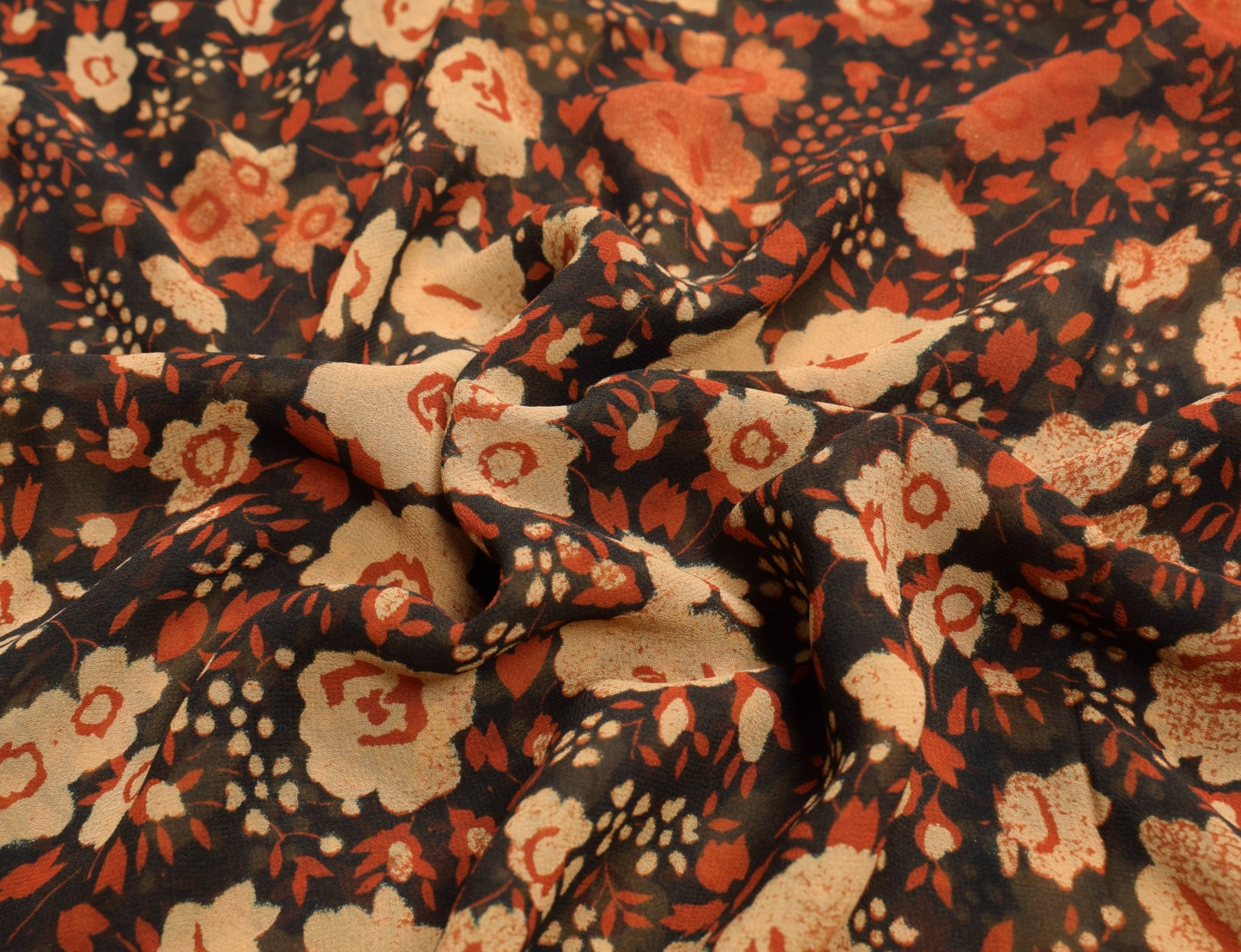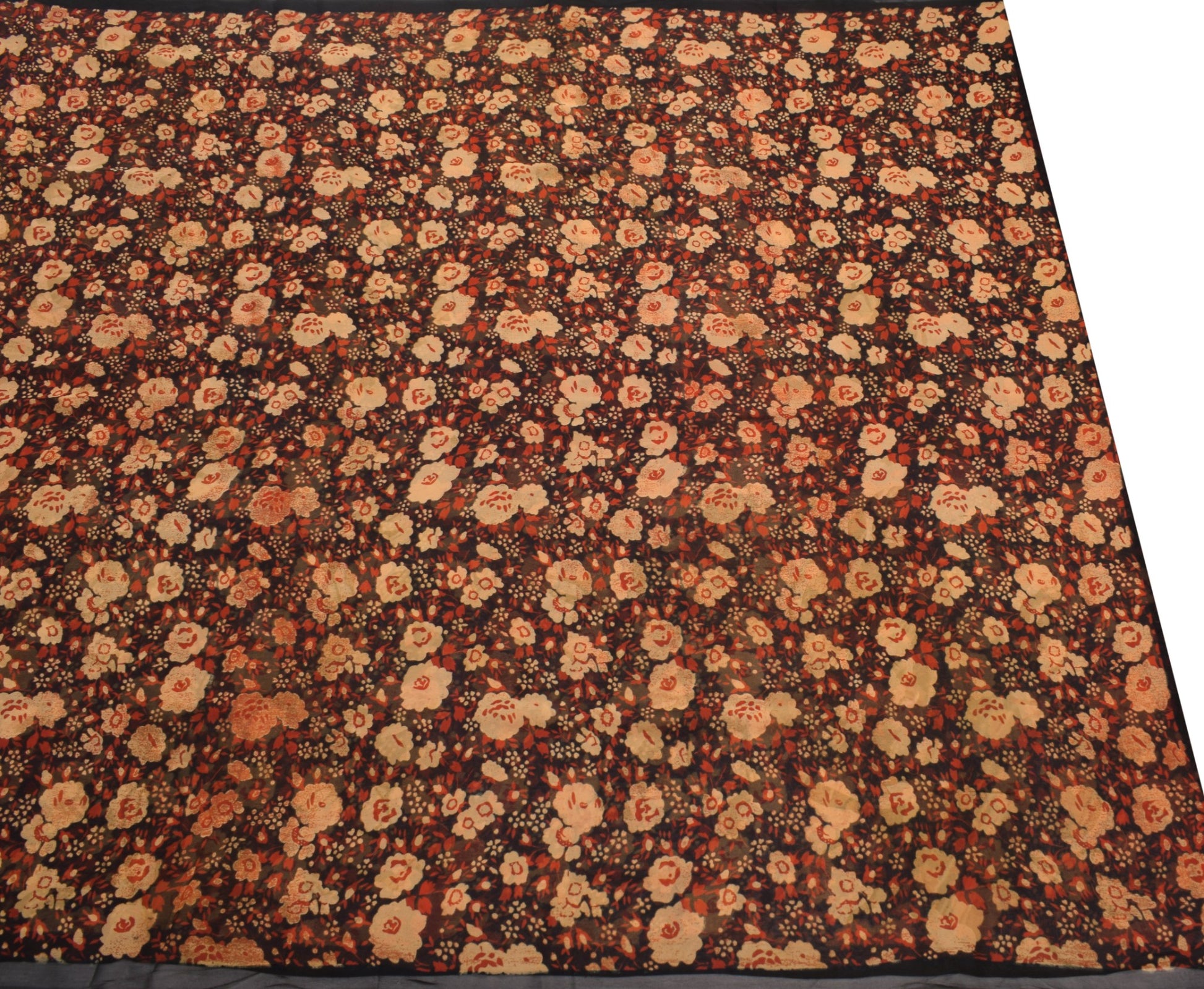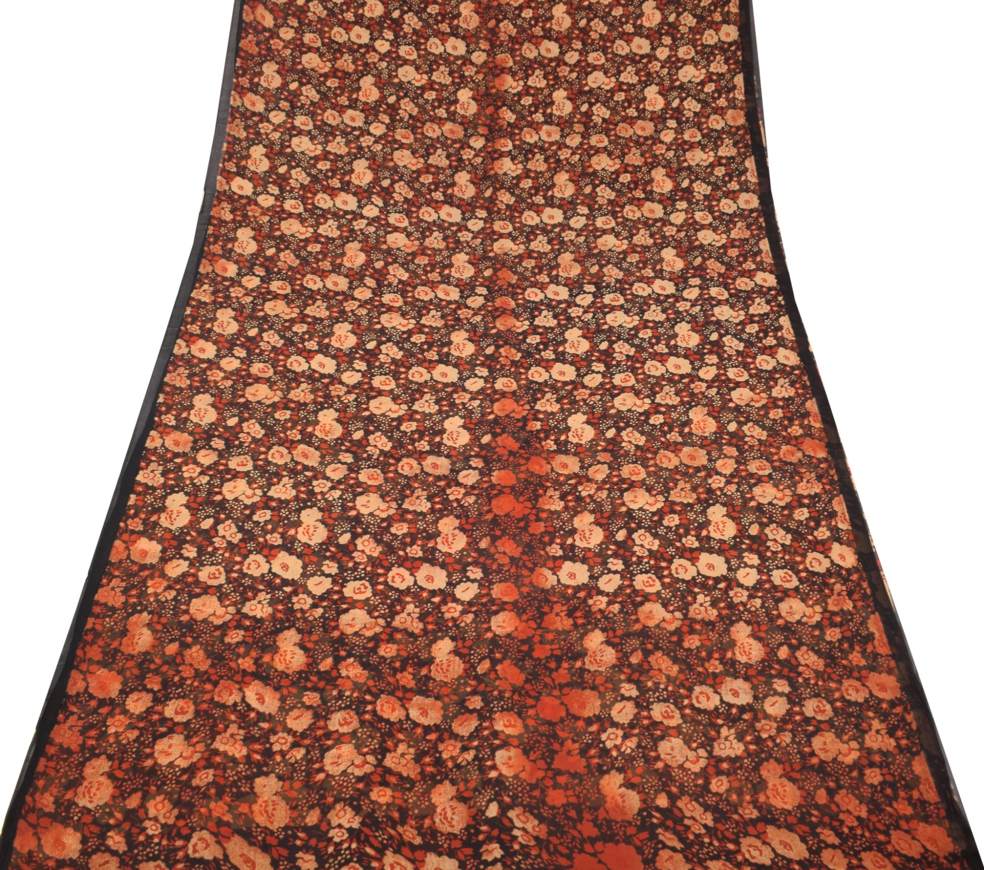 Sushila Vintage Black Saree Pure Georgette Silk Printed Craft Floral Sari Fabric