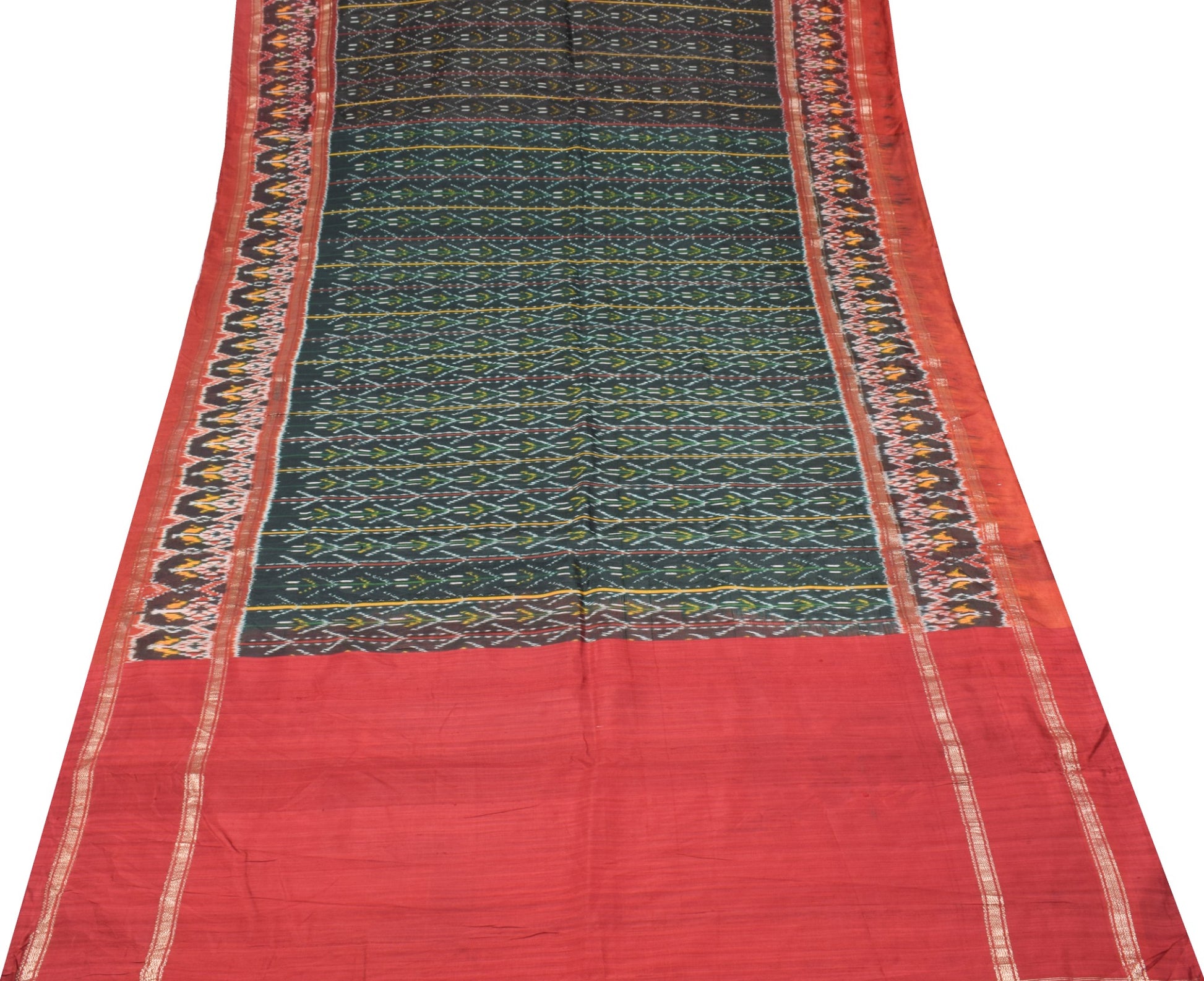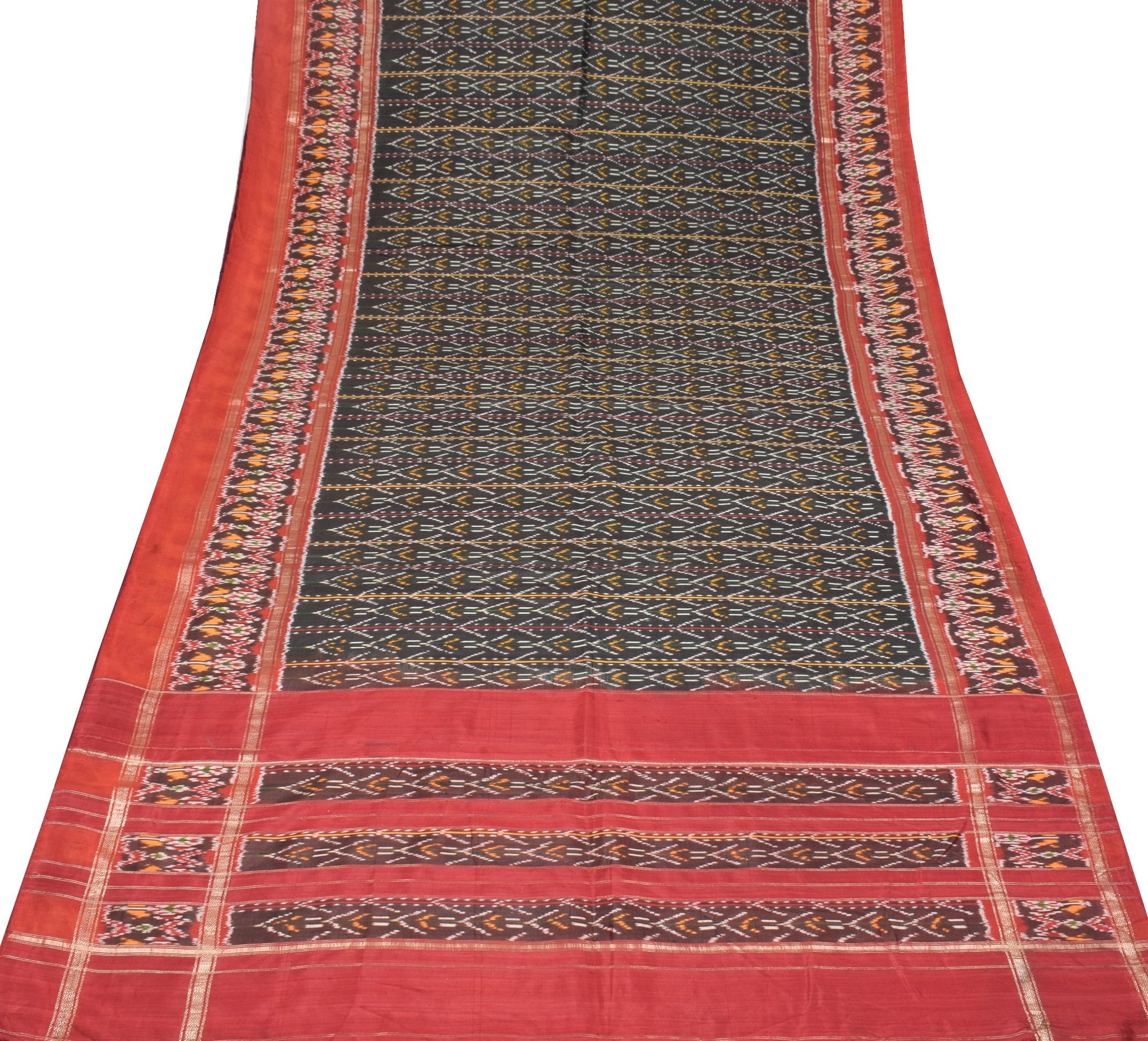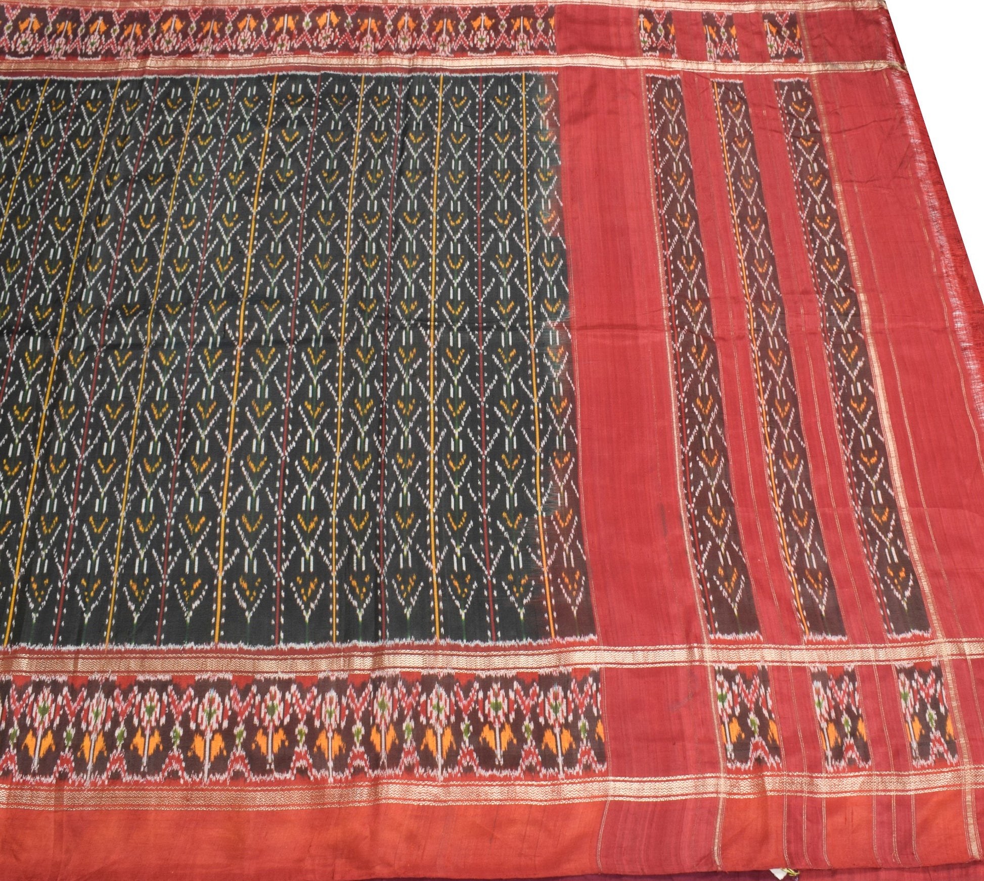 Sushila Vintage Black Saree Pure Silk Hand Woven Ikat Patola Rare Sari Fabric