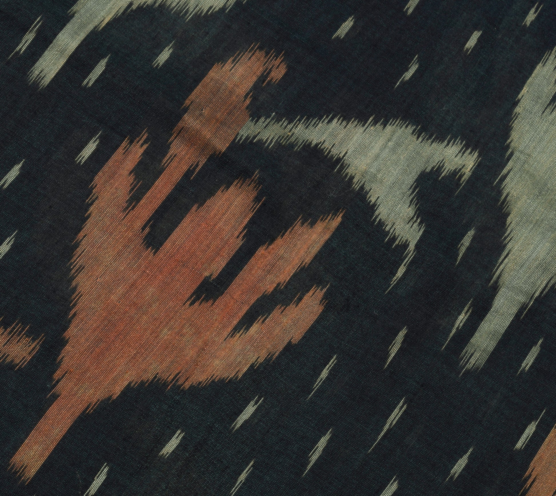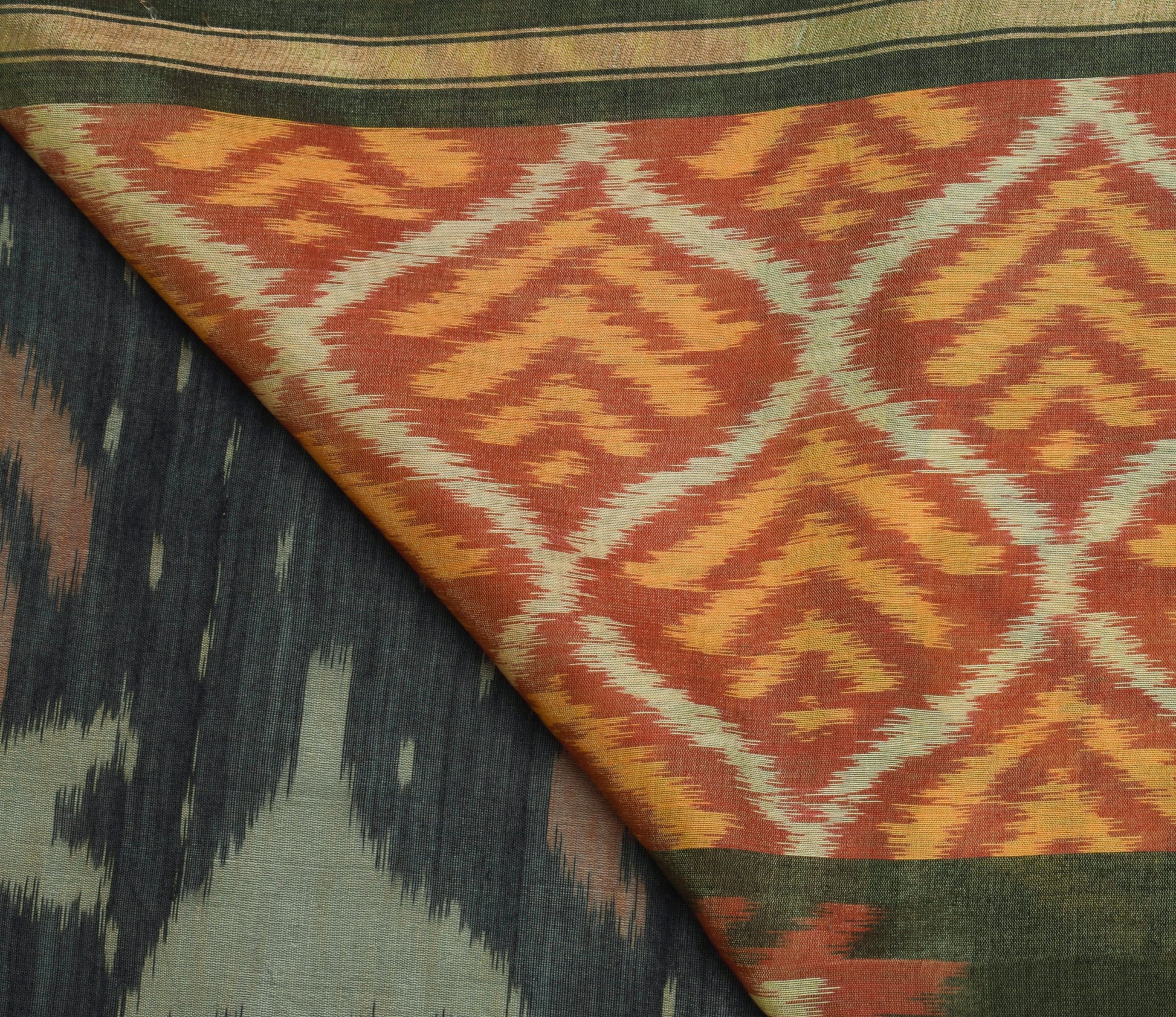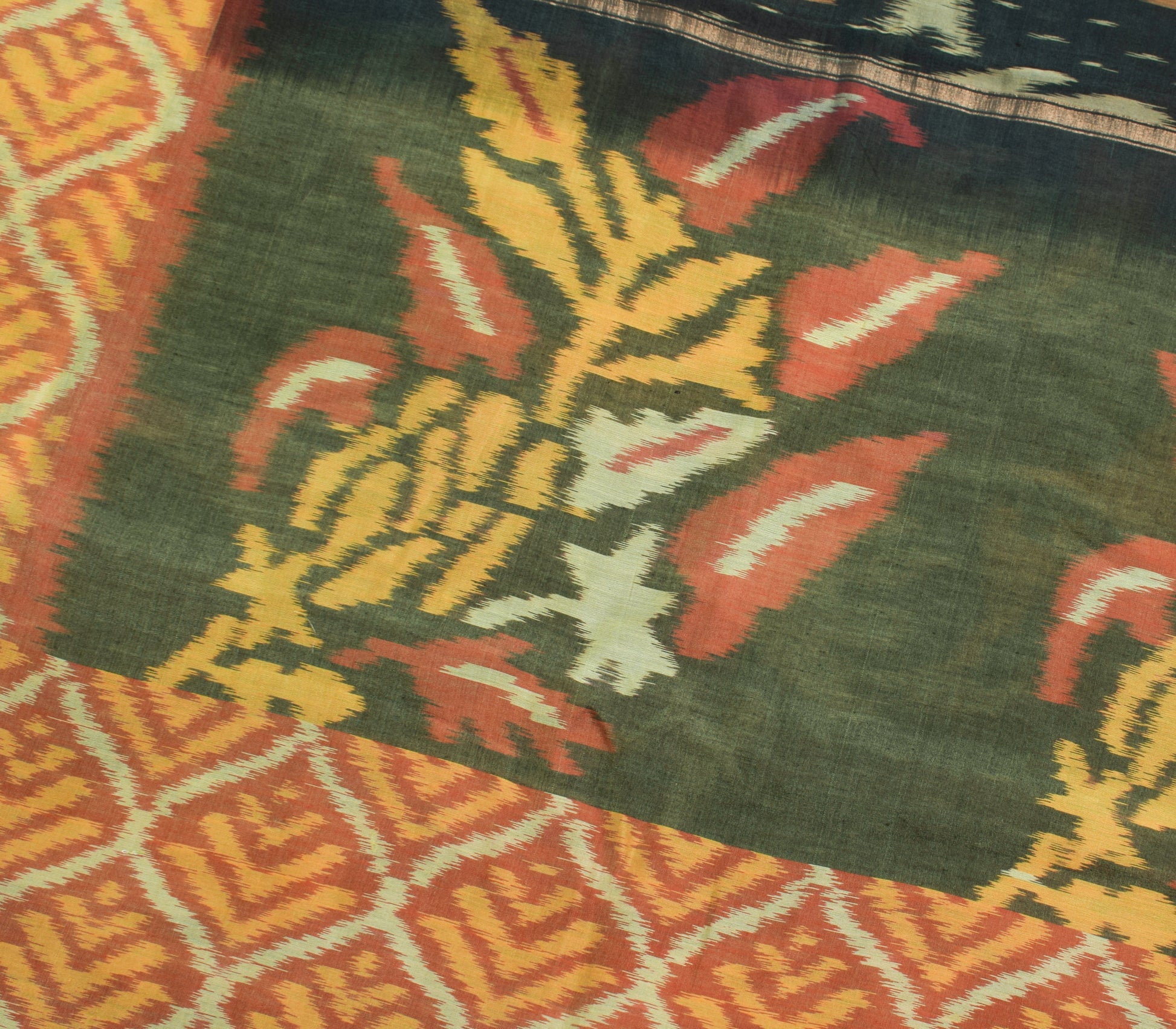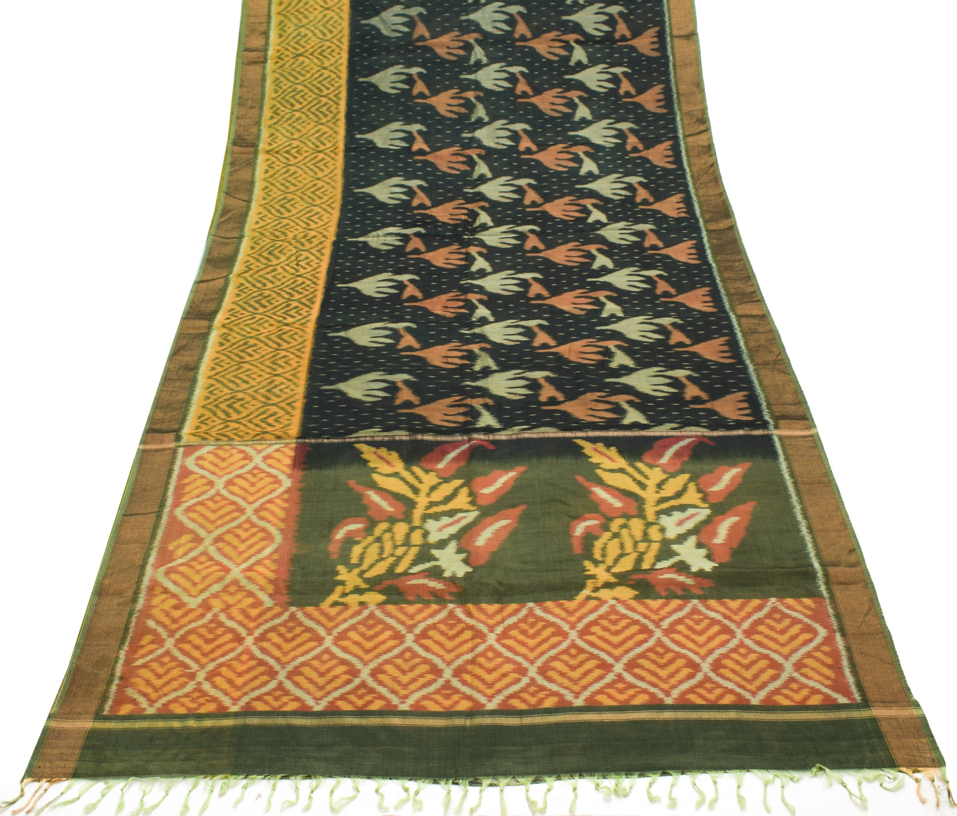 Sushila Vintage Black Saree Pure Silk Hand Woven Ikat Patola Sari Craft Fabric