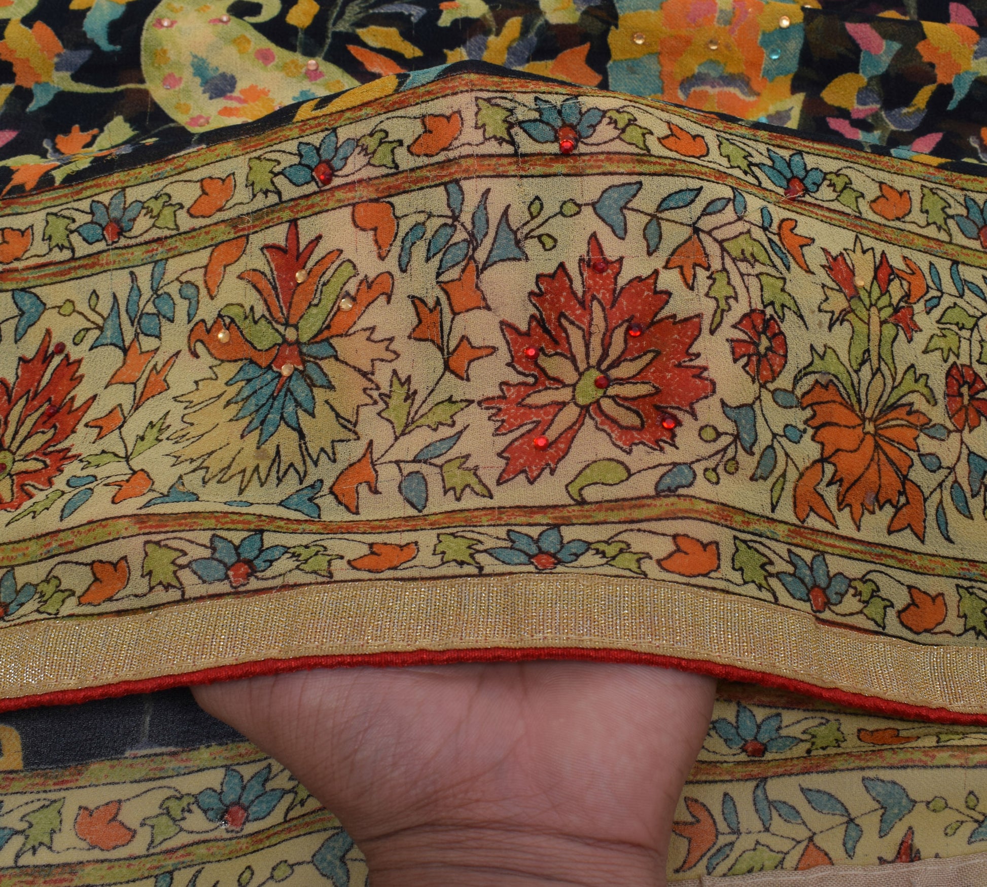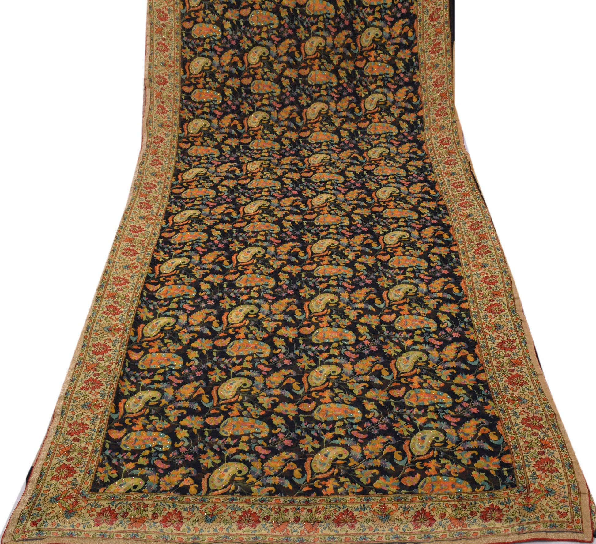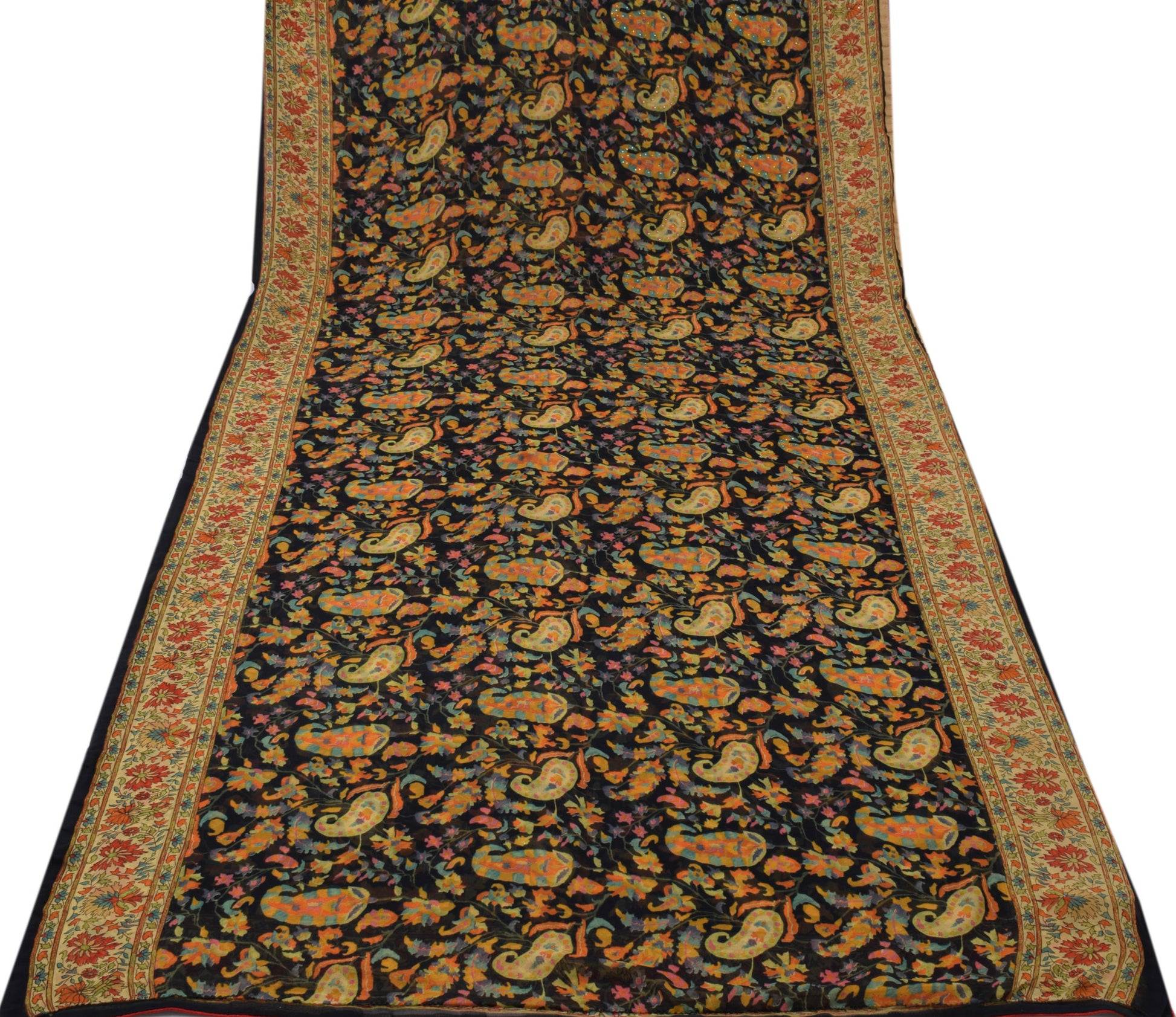 Sushila Vintage Black Sari Blend Georgette Silk Printed Paisley Craft Fabric