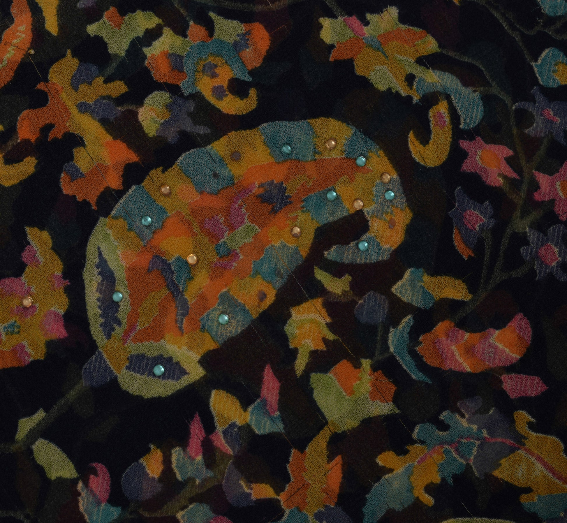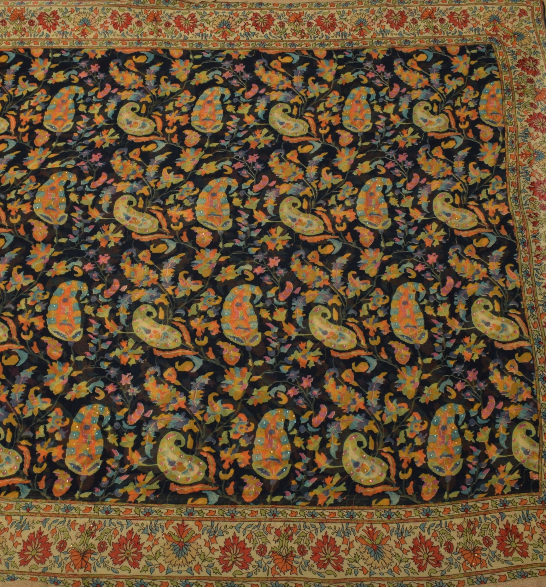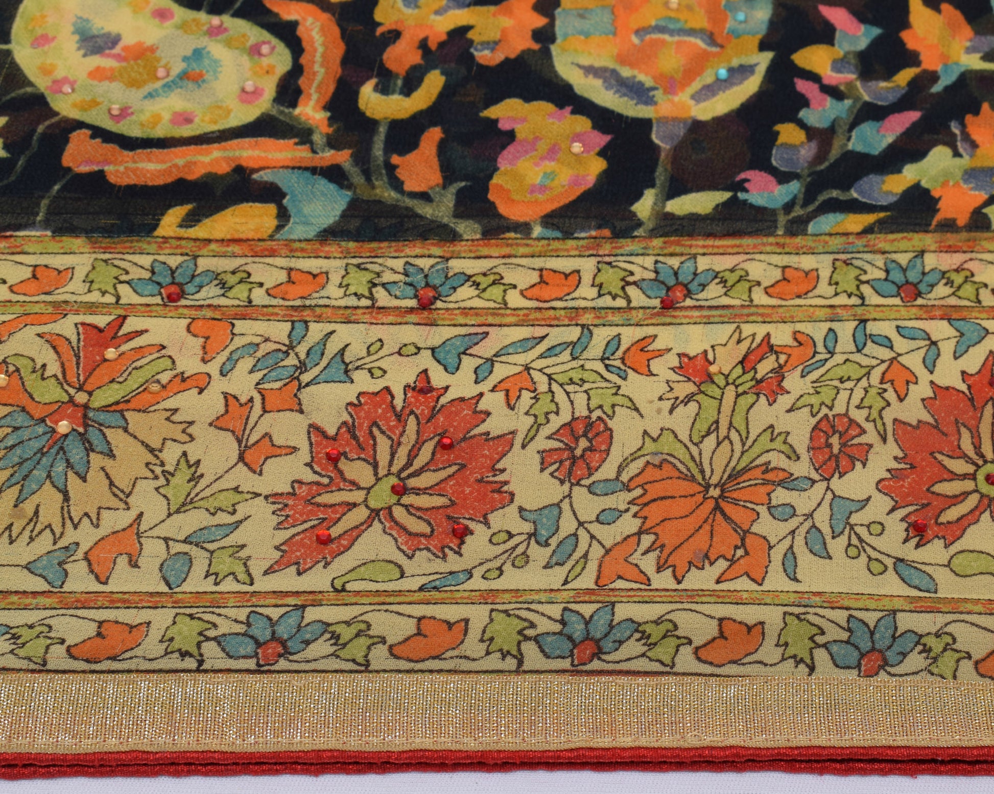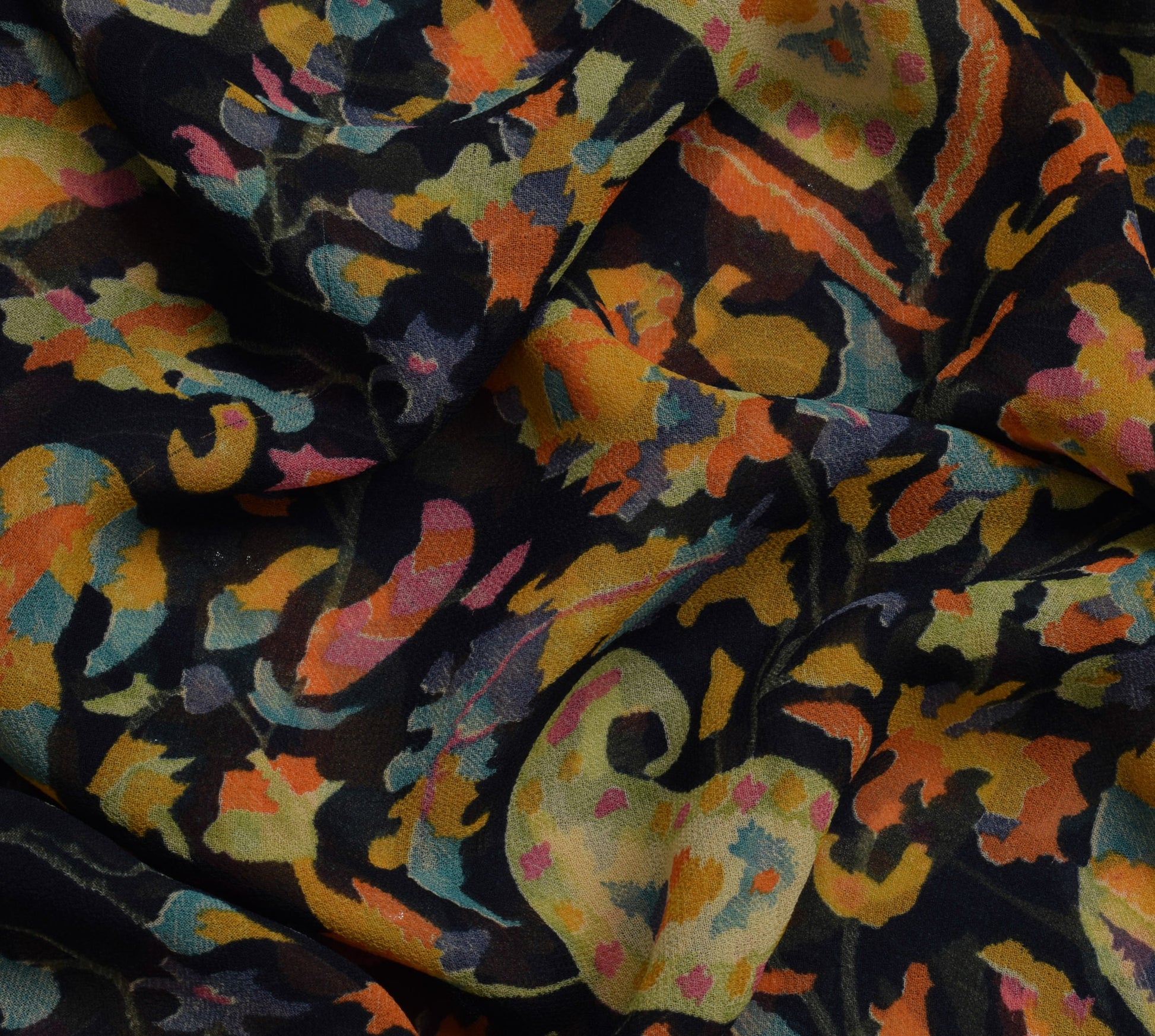 Sushila Vintage Black Sari Blend Georgette Silk Printed Paisley Craft Fabric