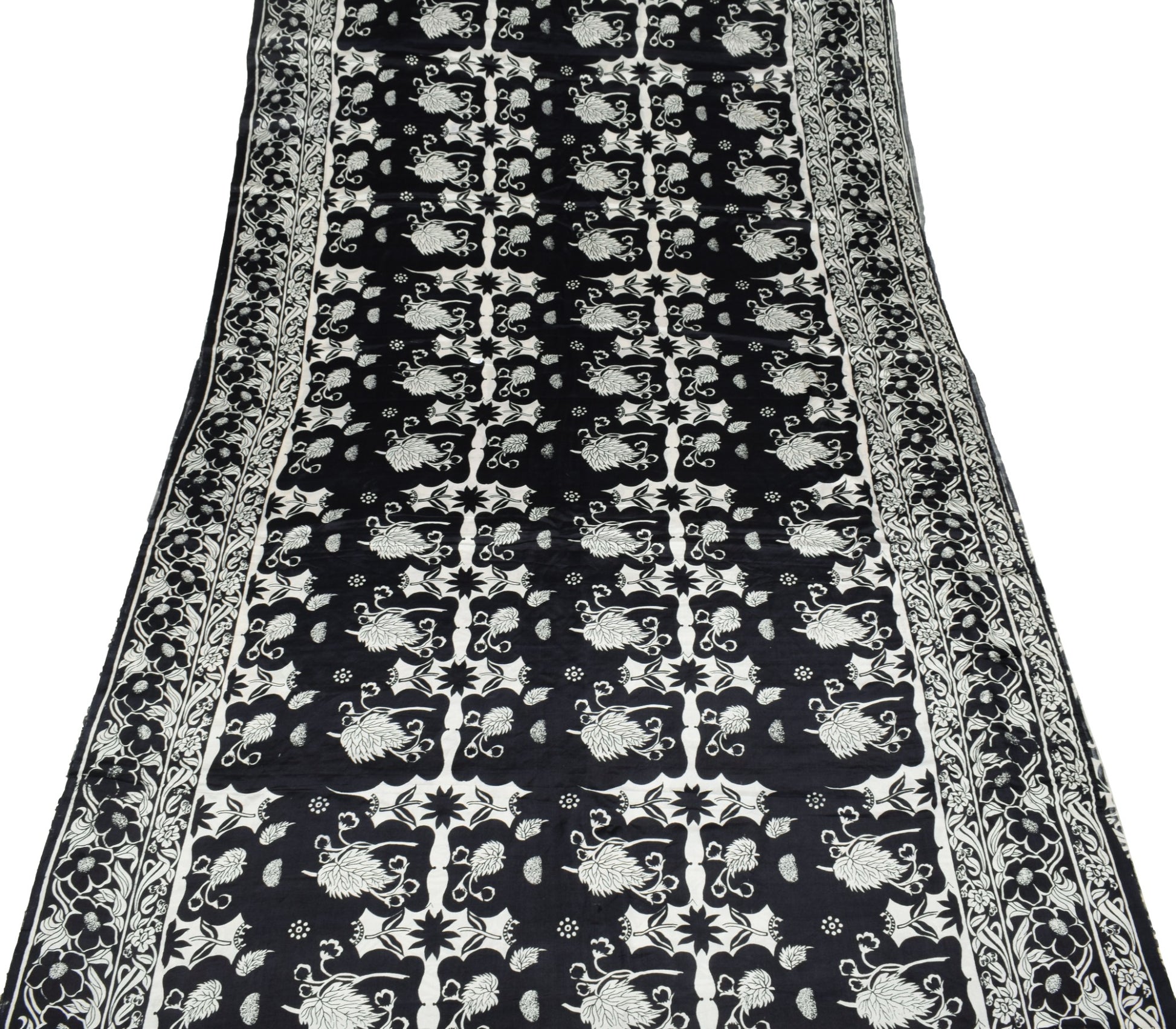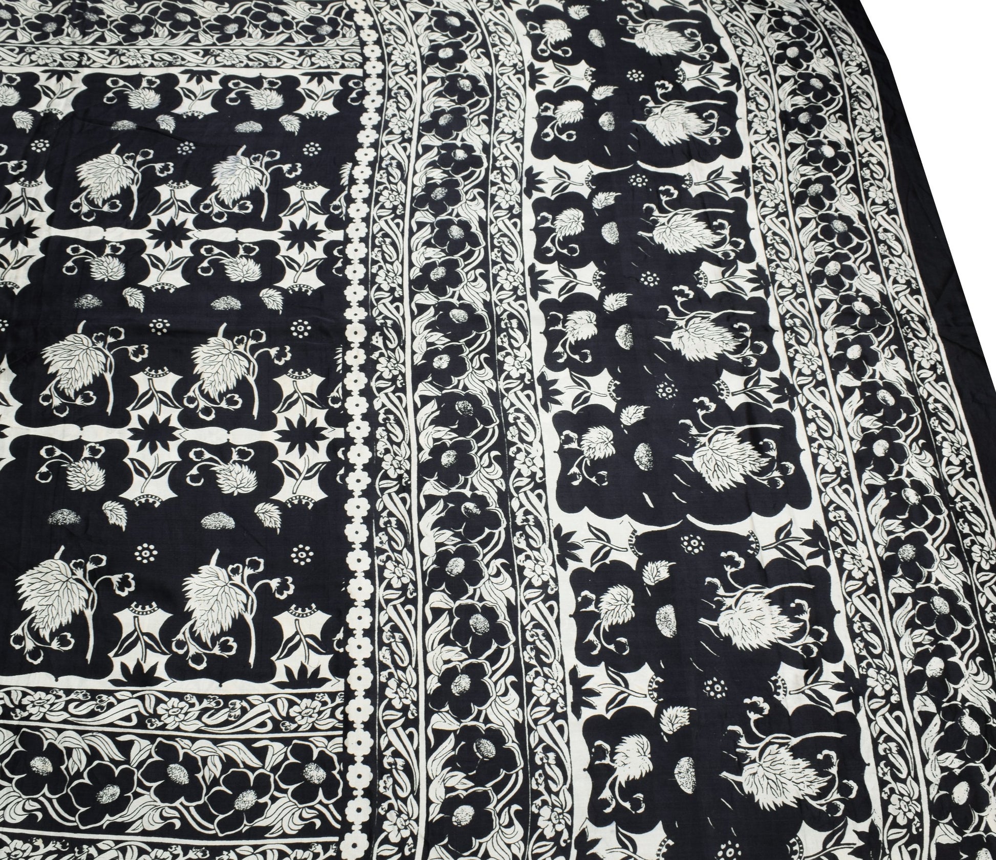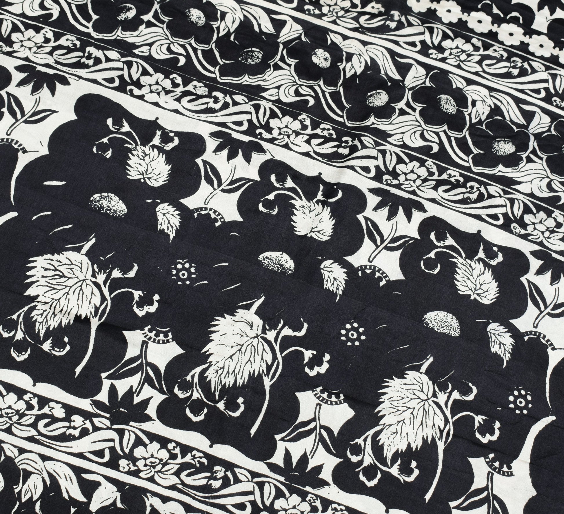 Sushila Vintage Black White Bollywood Saree Pure Satin Silk Printed Soft Fabric