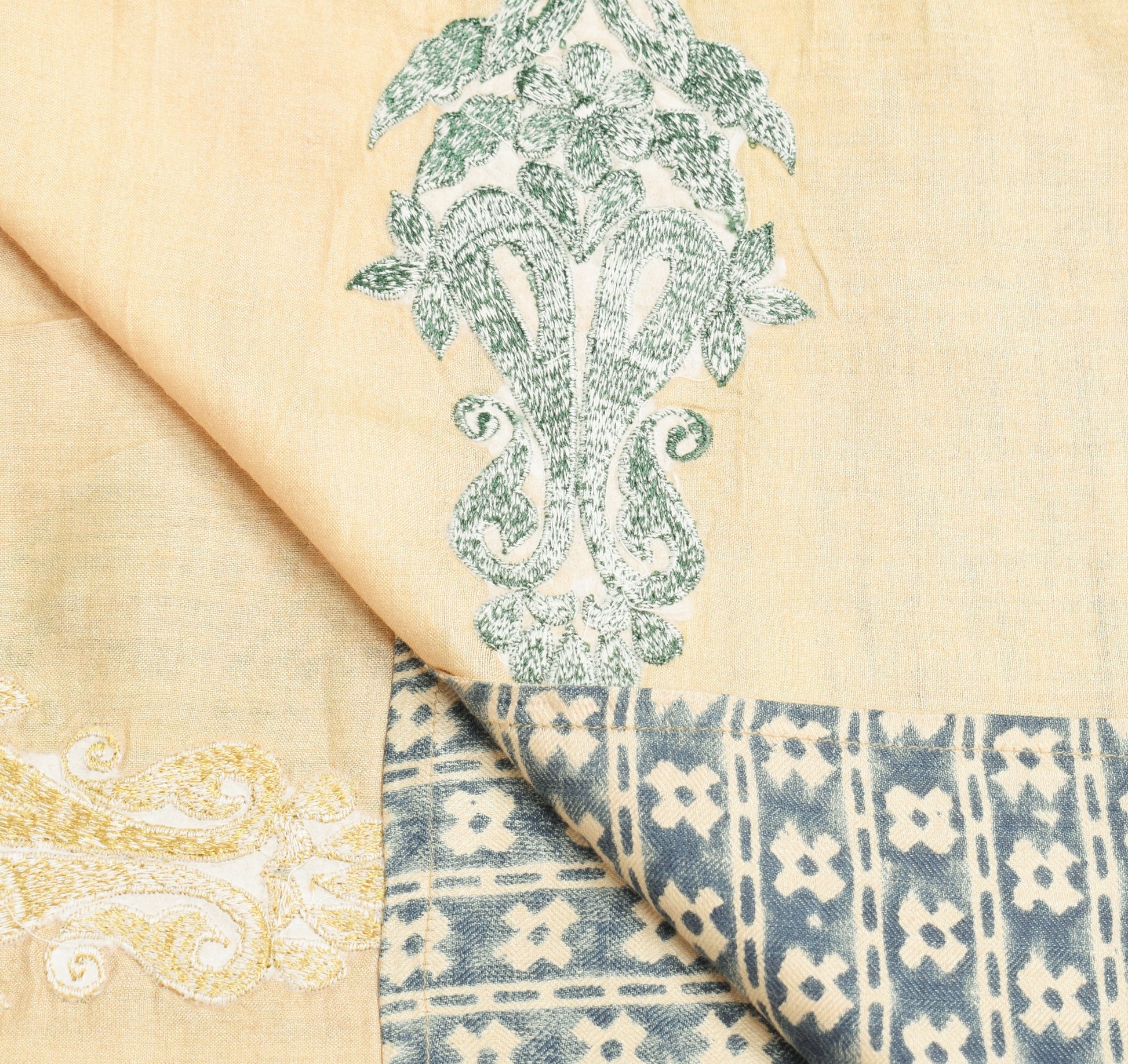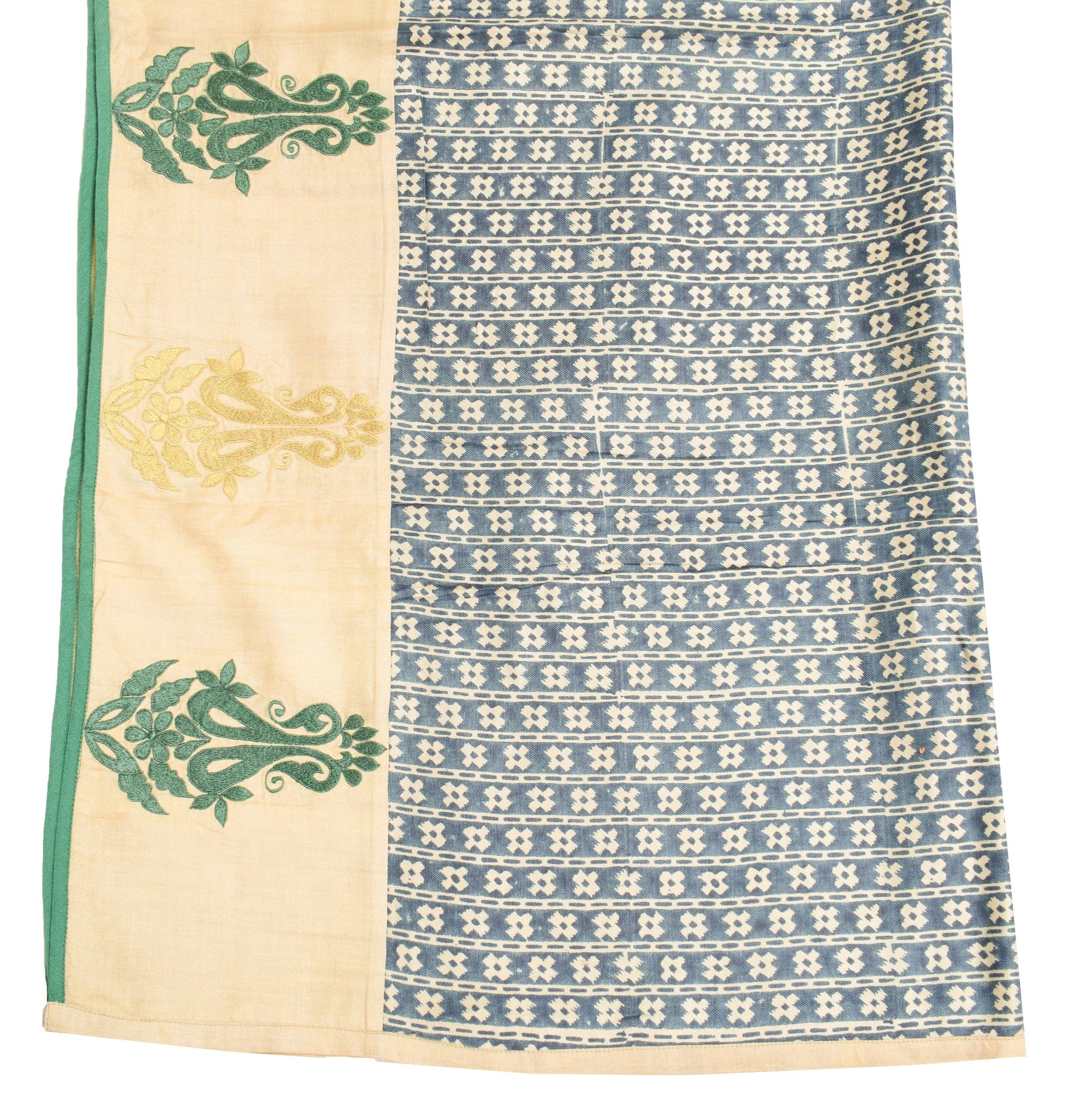 Wrap yourself in the warmth and artistry of this Blue & Cream woolen dupatta, designed for use as a Scarf, Indian Long Stole, Veil, or Hijab. Made from high-quality 100% Pure Woolen & Tussar Silk, this piece features intricate Hand Block Printed & Embroidered work, making it perfect for both special occasions and everyday wear. The Blue & Cream base beautifully complements the delicate Floral detailing, adding a touch of traditional charm to any outfit.