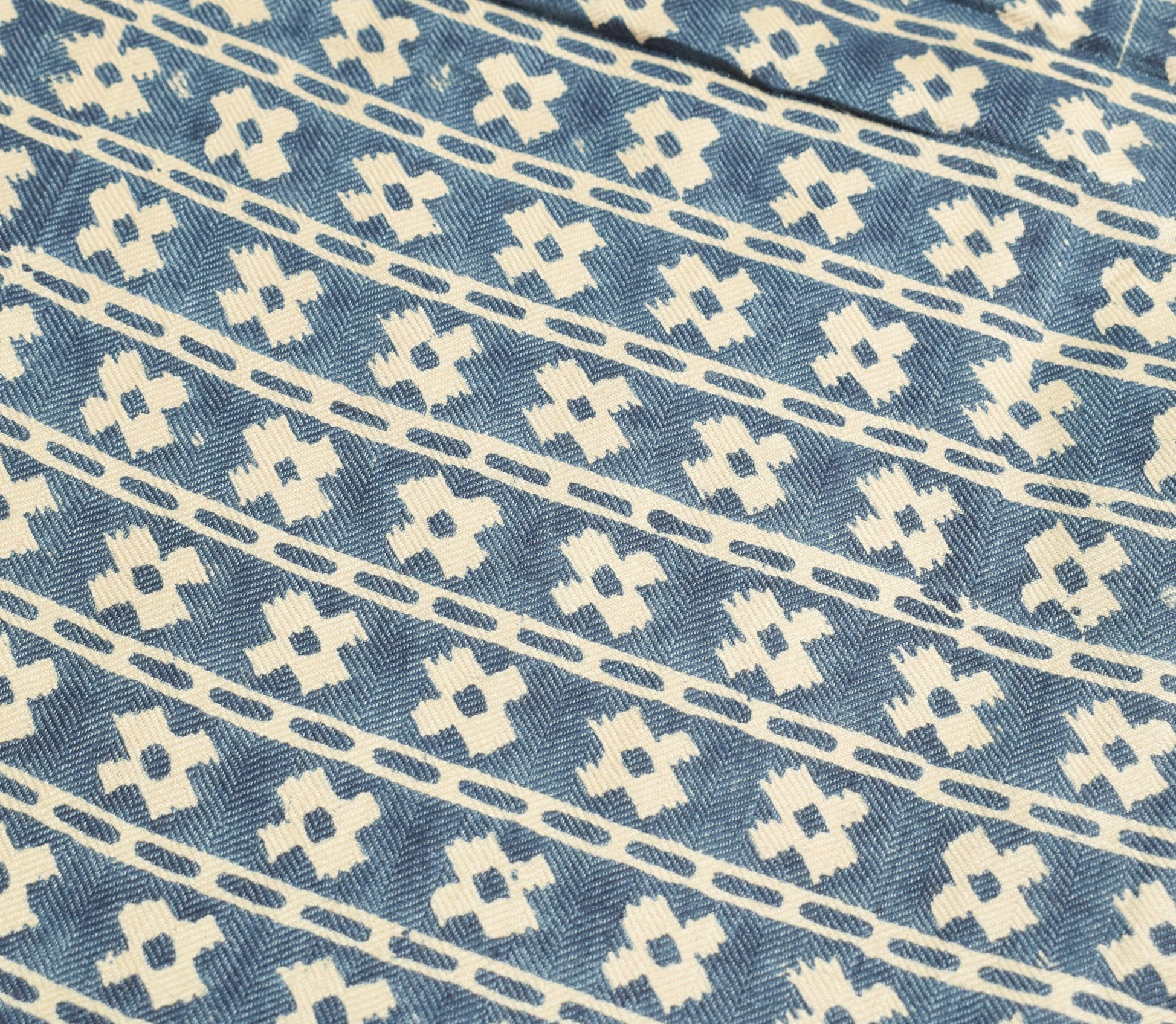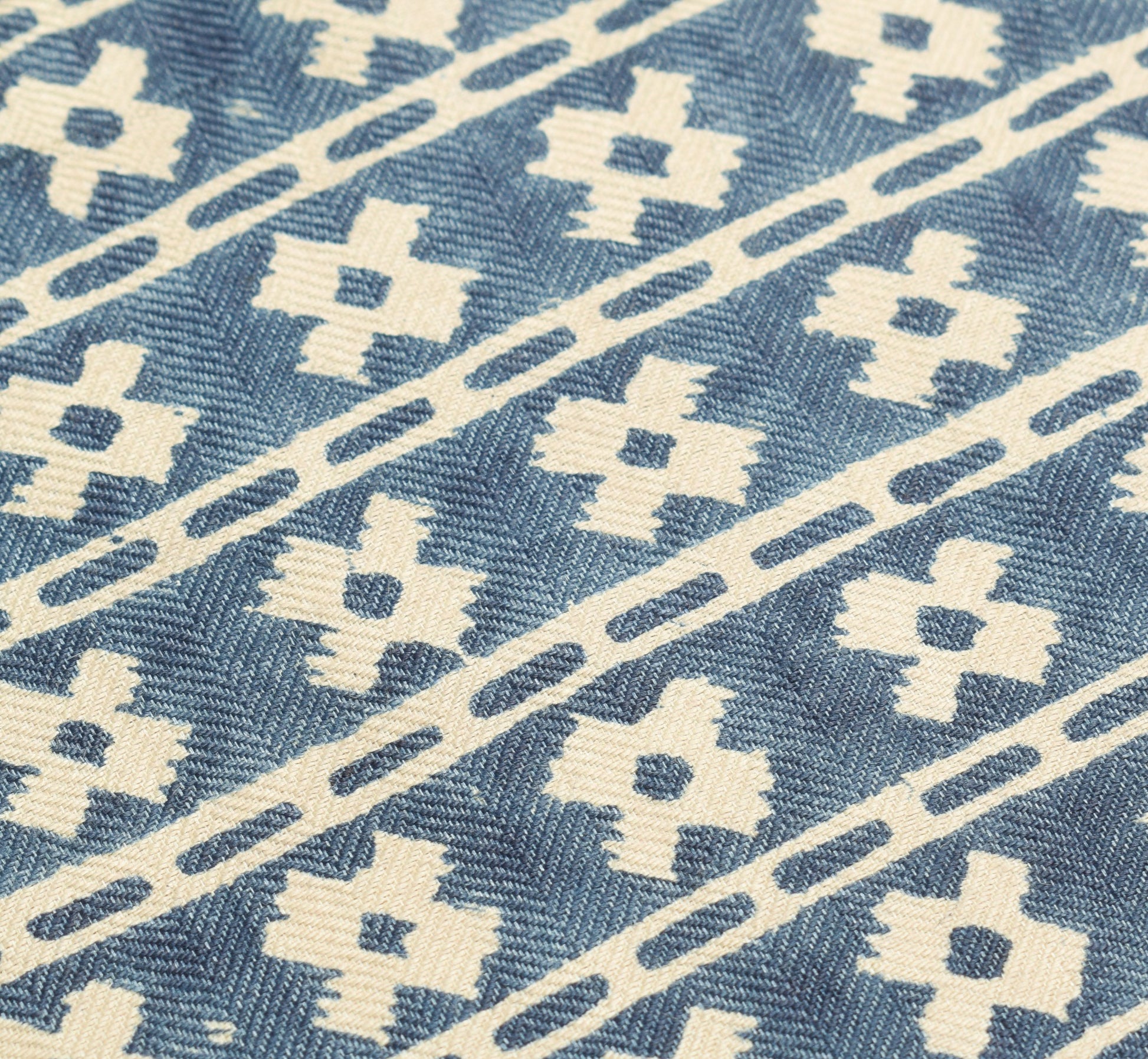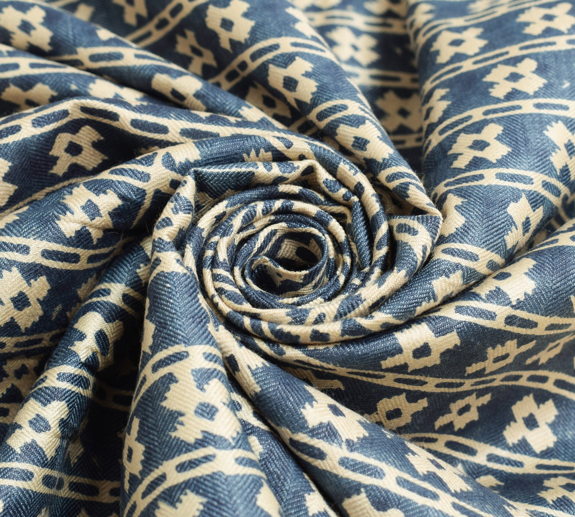 Sushila Vintage Blue Cream Dupatta Hand Block Printed Pure Woolen Long Stole