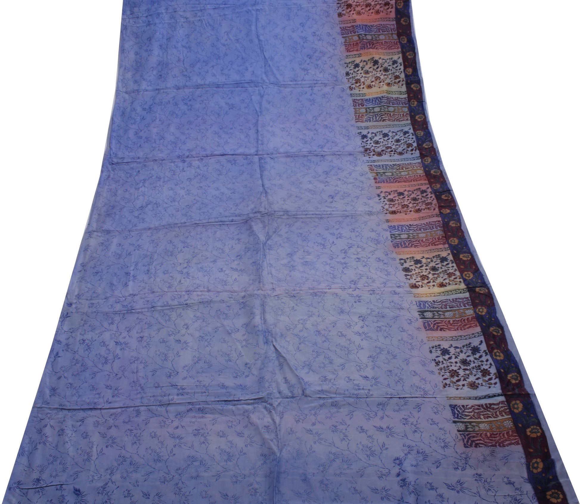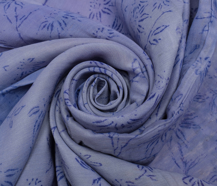 Sushila Vintage Blue Saree 100% Pure Crepe Silk Printed Floral 5 YD Soft Fabric