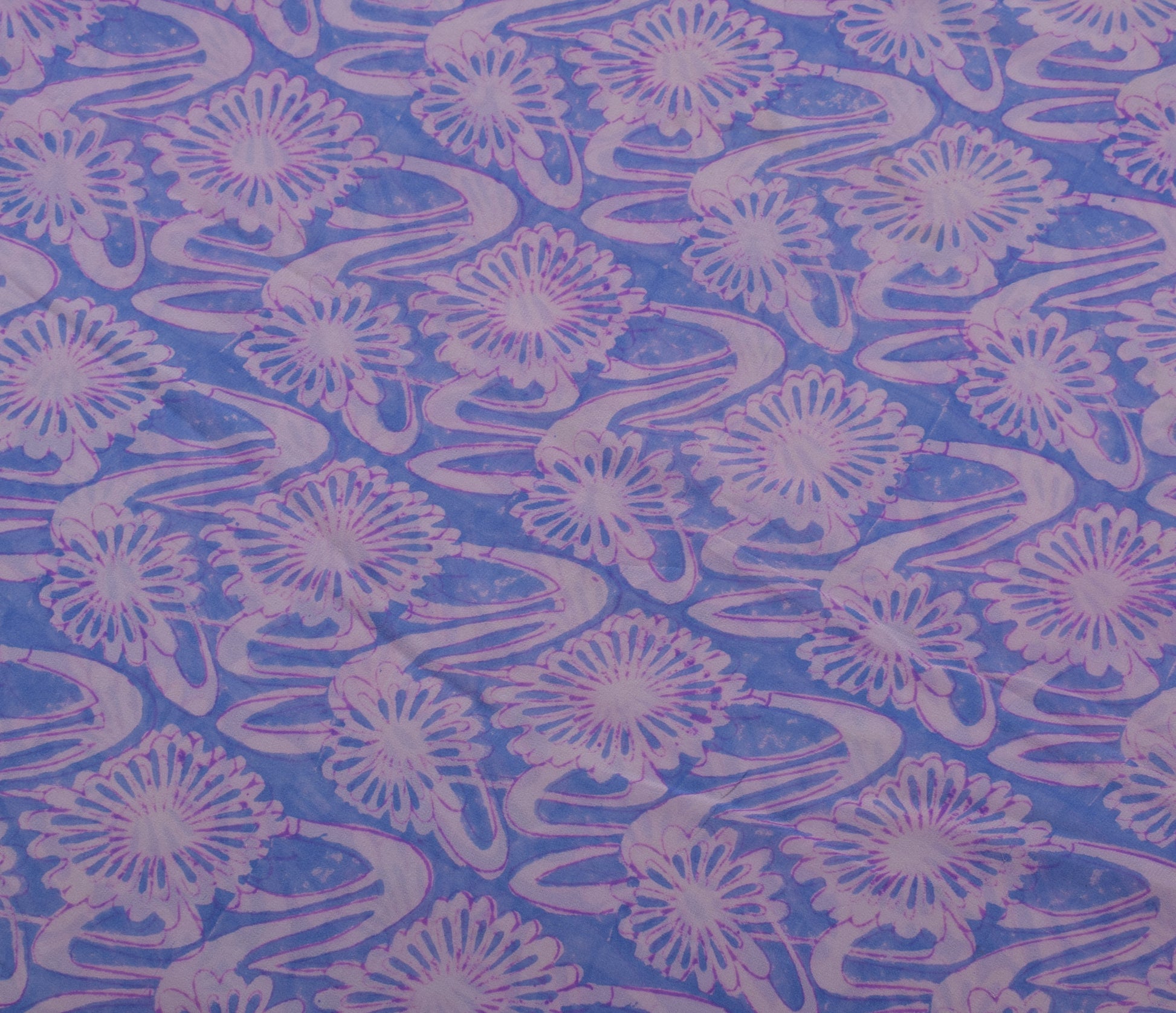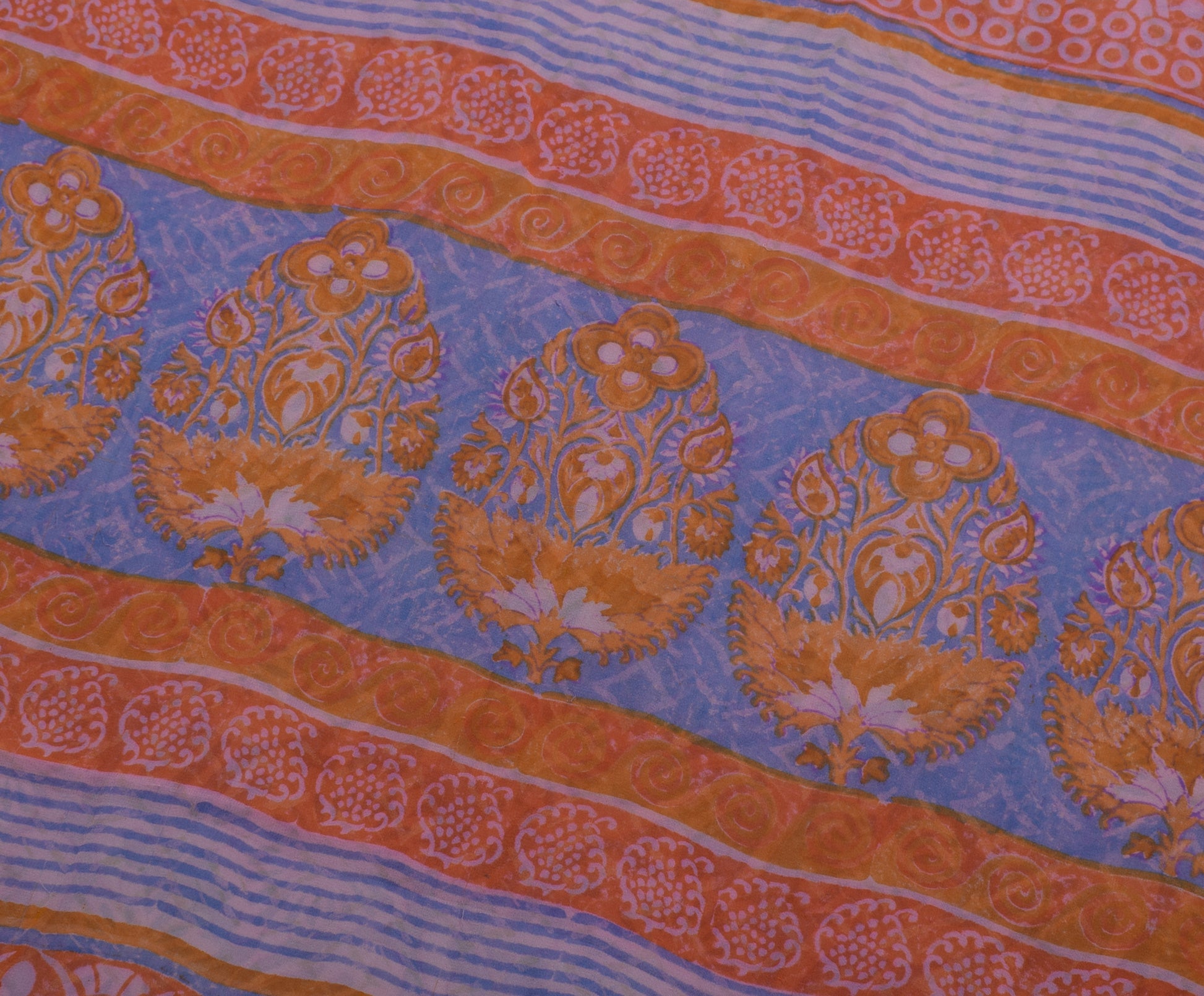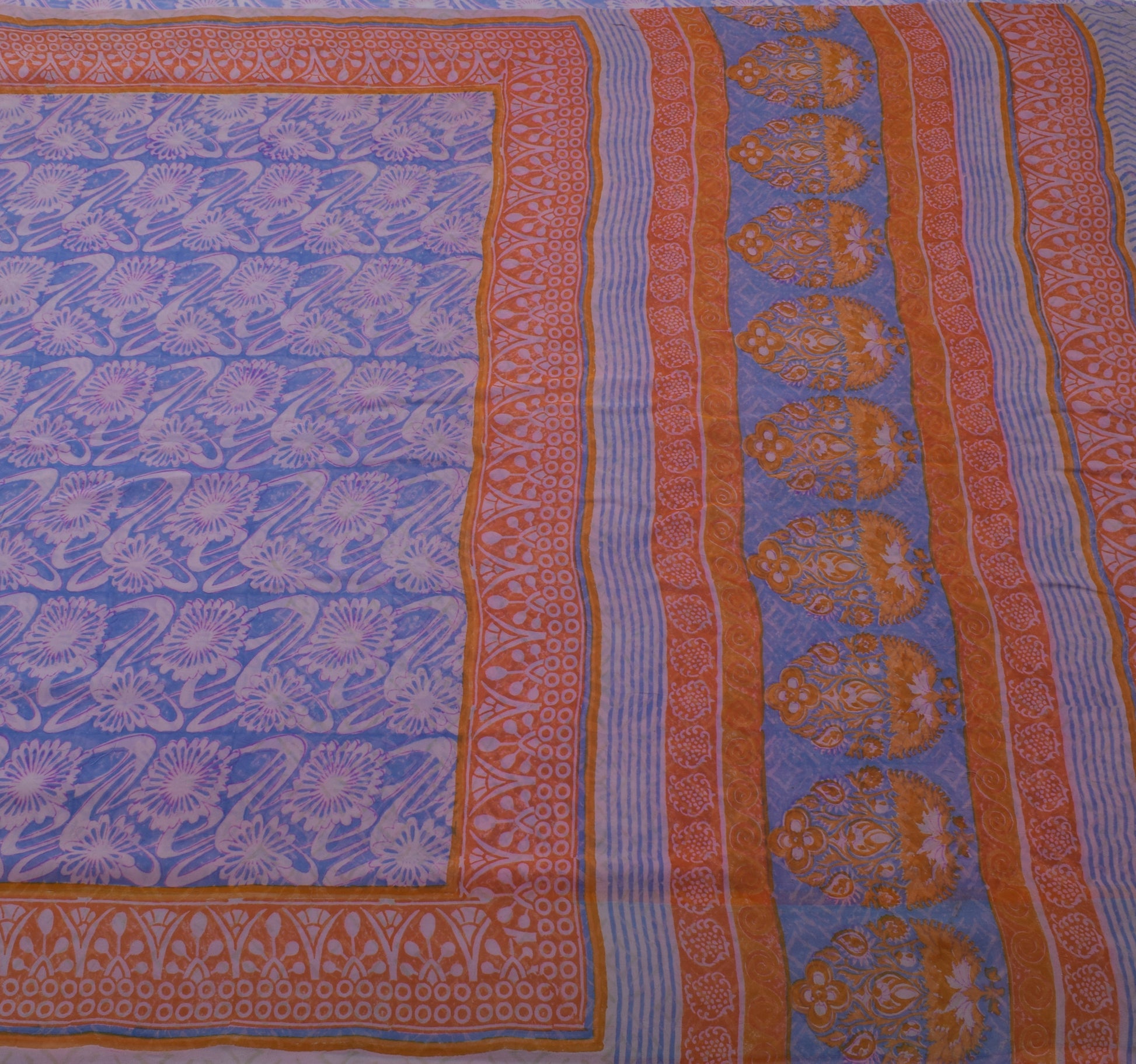 Sushila Vintage Blue Saree 100% Pure Georgette Silk Printed Floral Craft Fabric
