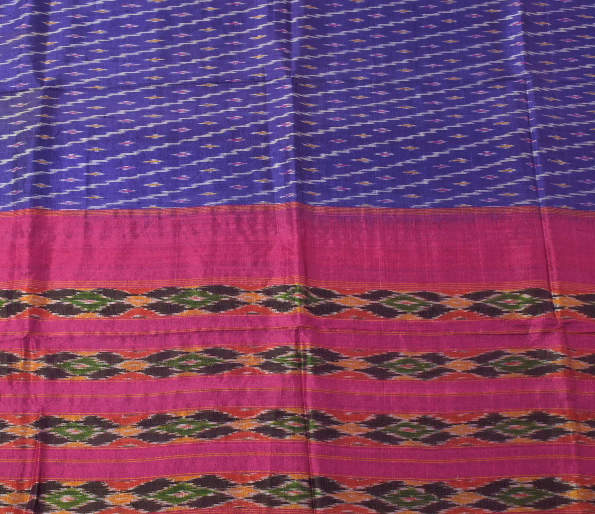 Sushila Vintage Blue Scrap Craft Sari Pure Silk Hand Woven Ikkat Patola Fabric