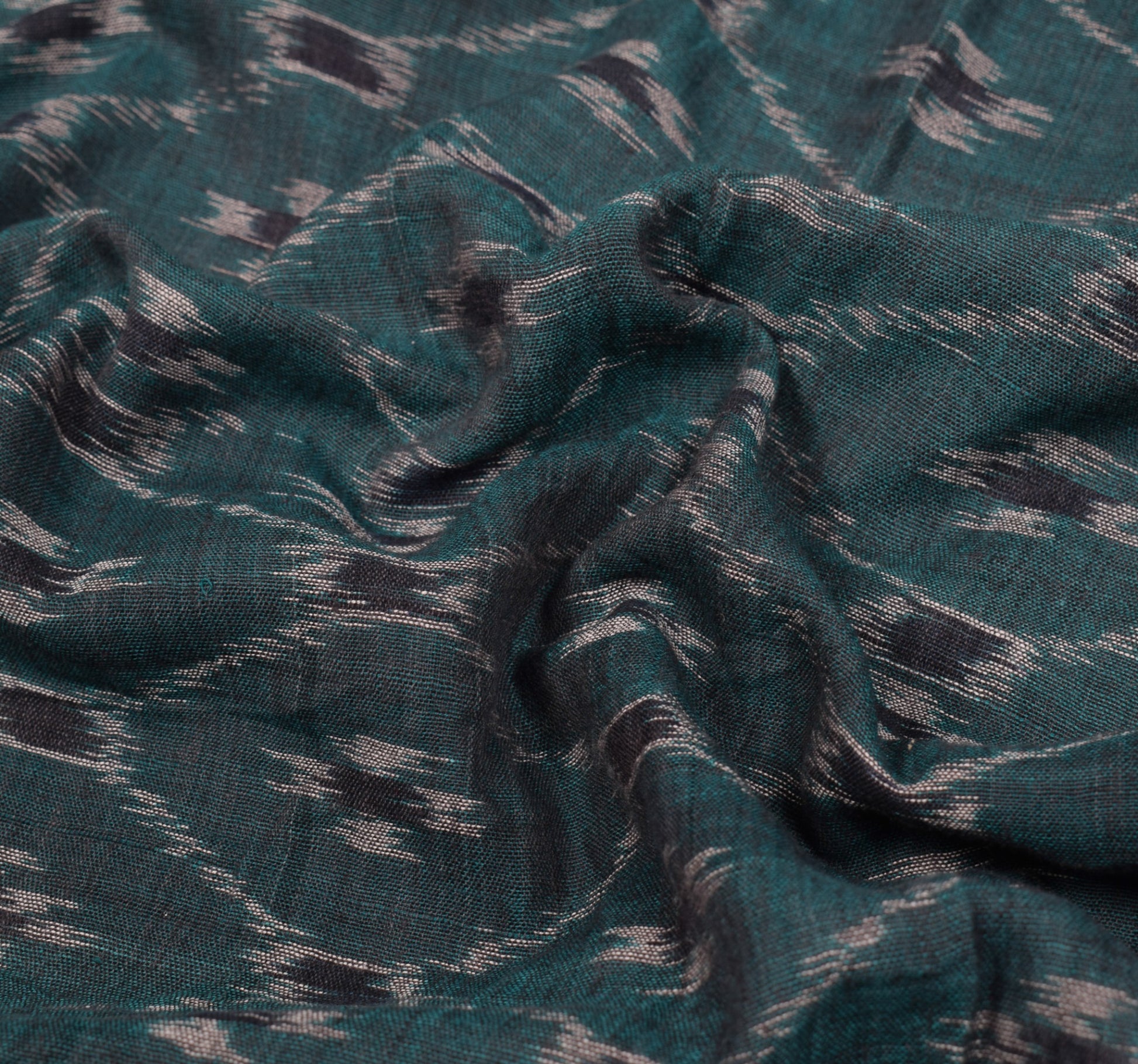 Celebrate traditional artistry with this Sushila vintage Sambalpuri saree, woven from 100% pure cotton in striking bottle green and black hues. Featuring a classic floral pattern created through the intricate Maniabandha (Bandha) Ikat handloom technique, this saree is a true piece of Odisha’s weaving heritage. Finished with fall and pico, it's ready to wear and perfect for both cultural occasions and everyday elegance.