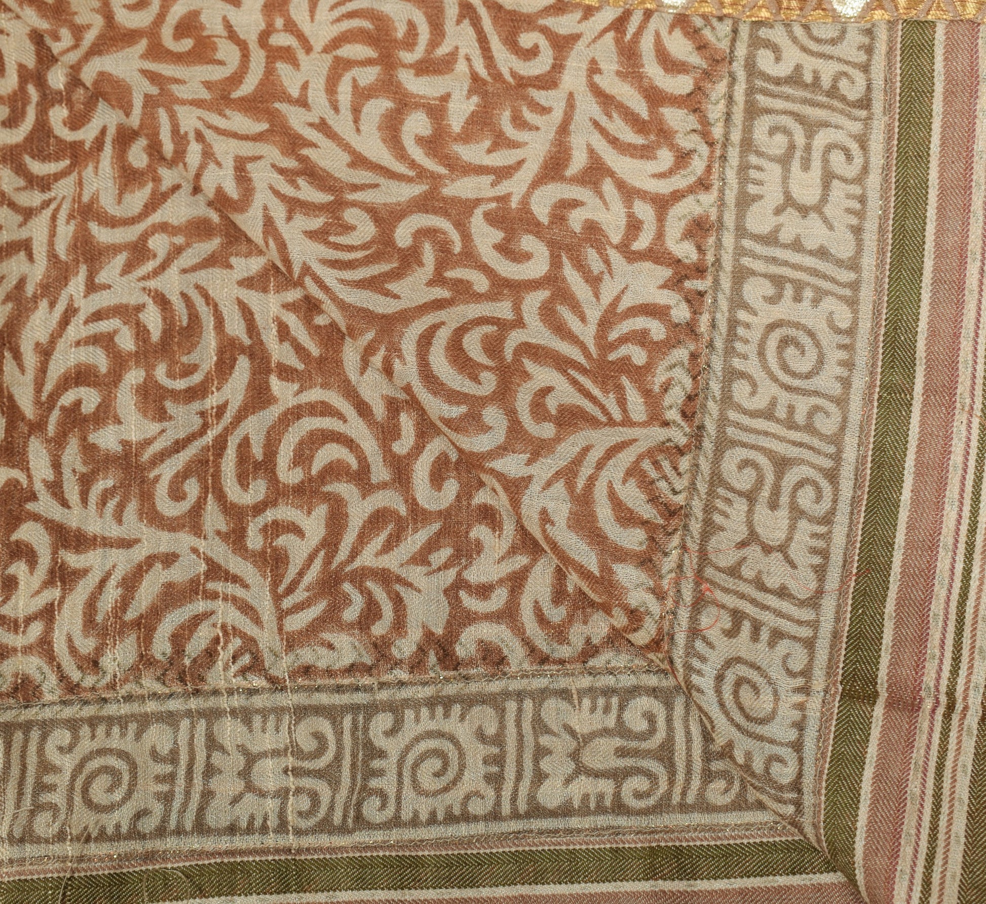 Sushila Vintage Brown Floral Dupatta Hand Block Printed Pure Woolen Shawl Stole