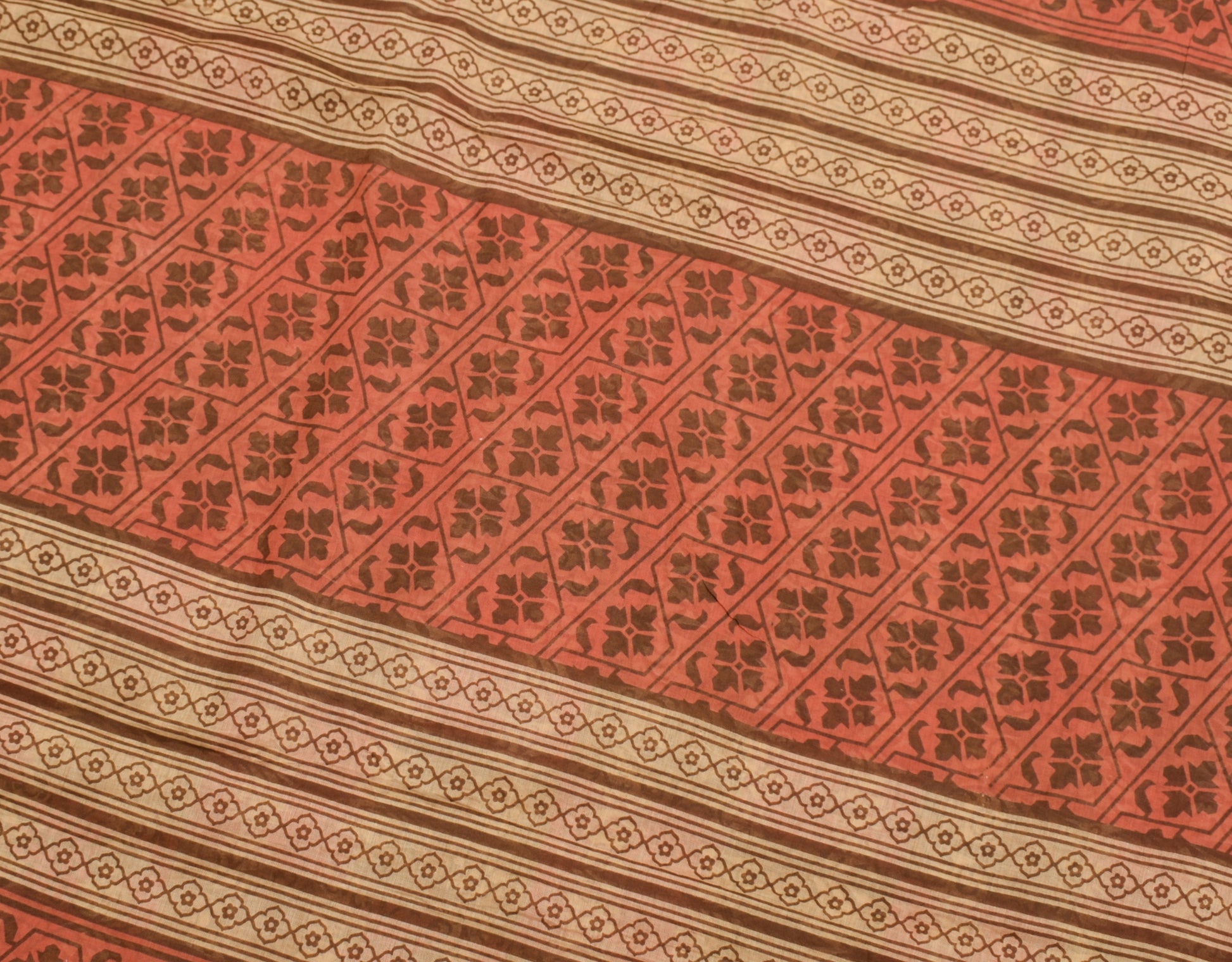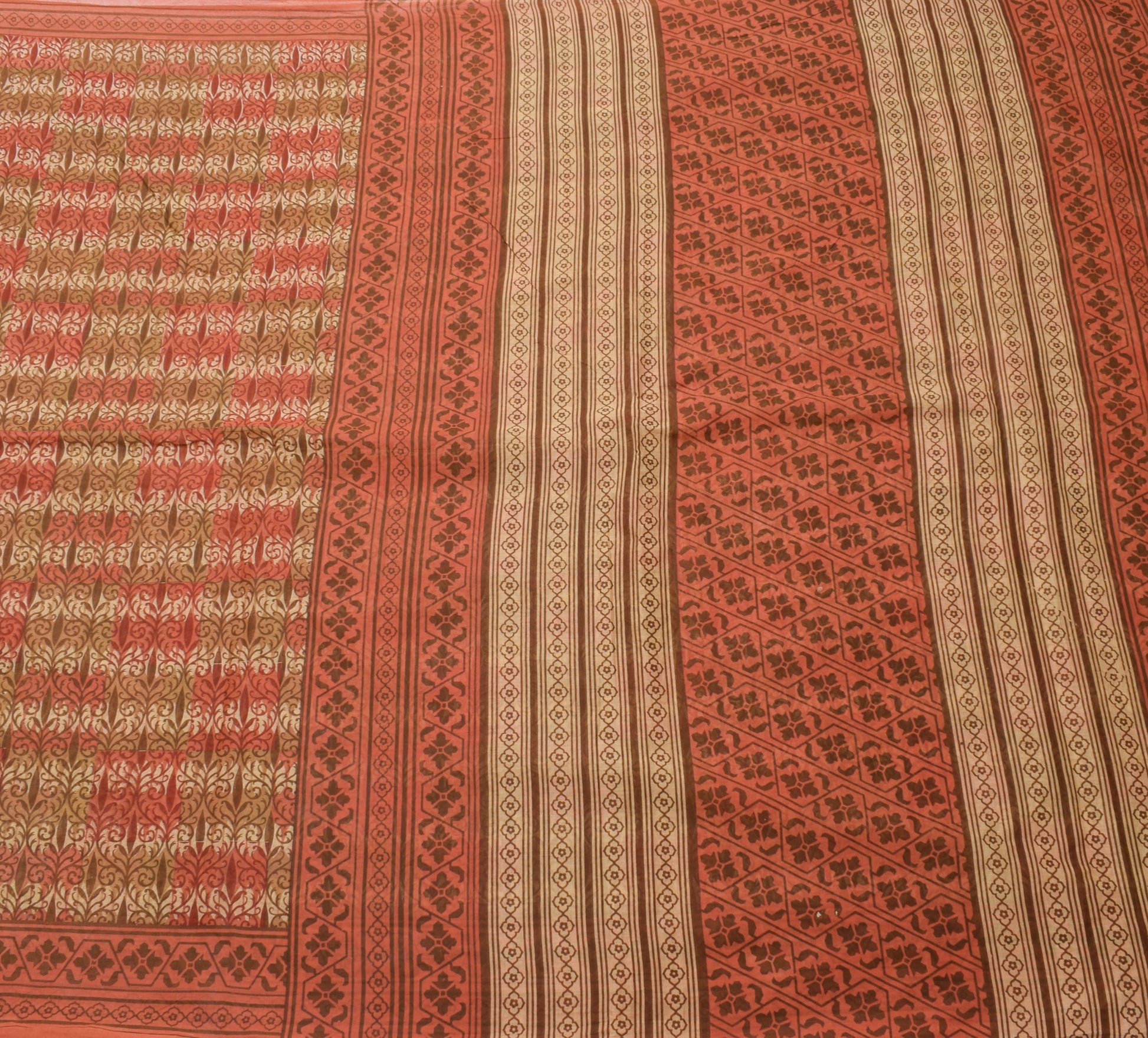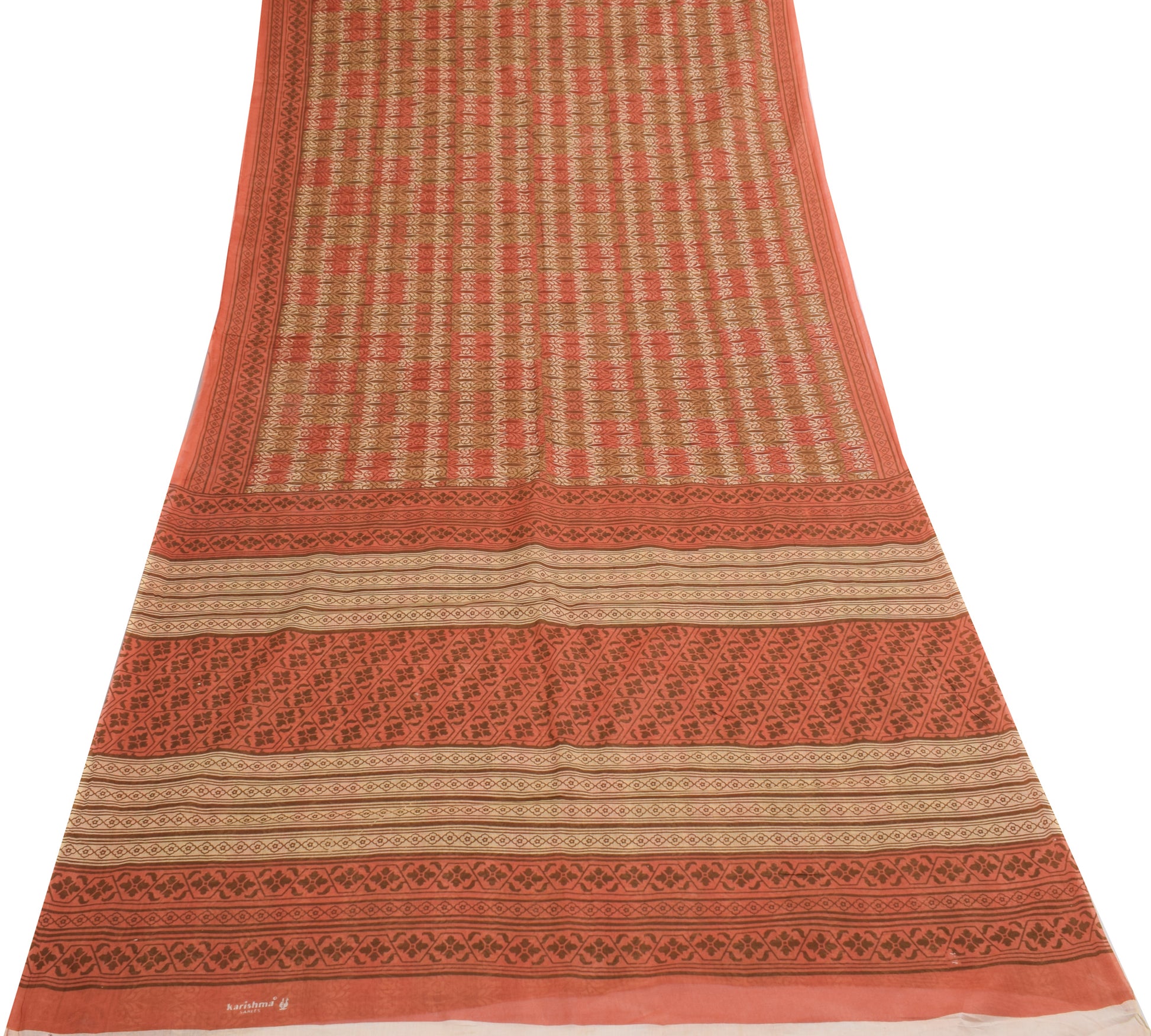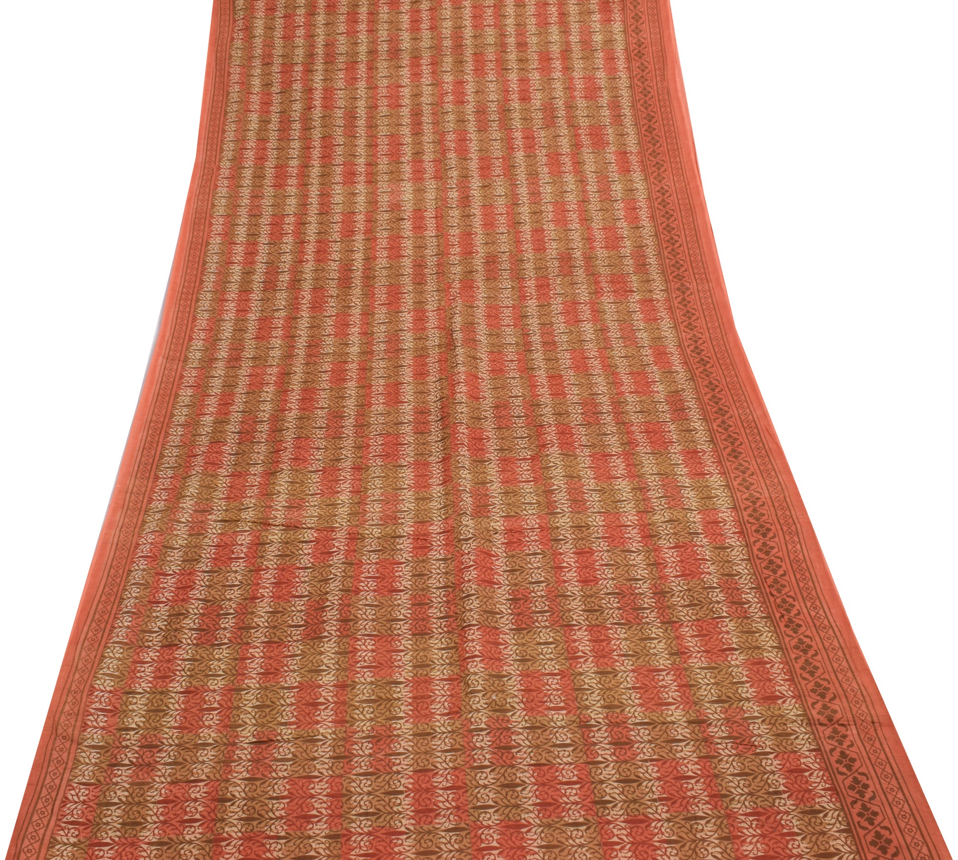Sushila Vintage Brown Floral Saree 100% Pure Cotton Printed Indian Craft Fabric