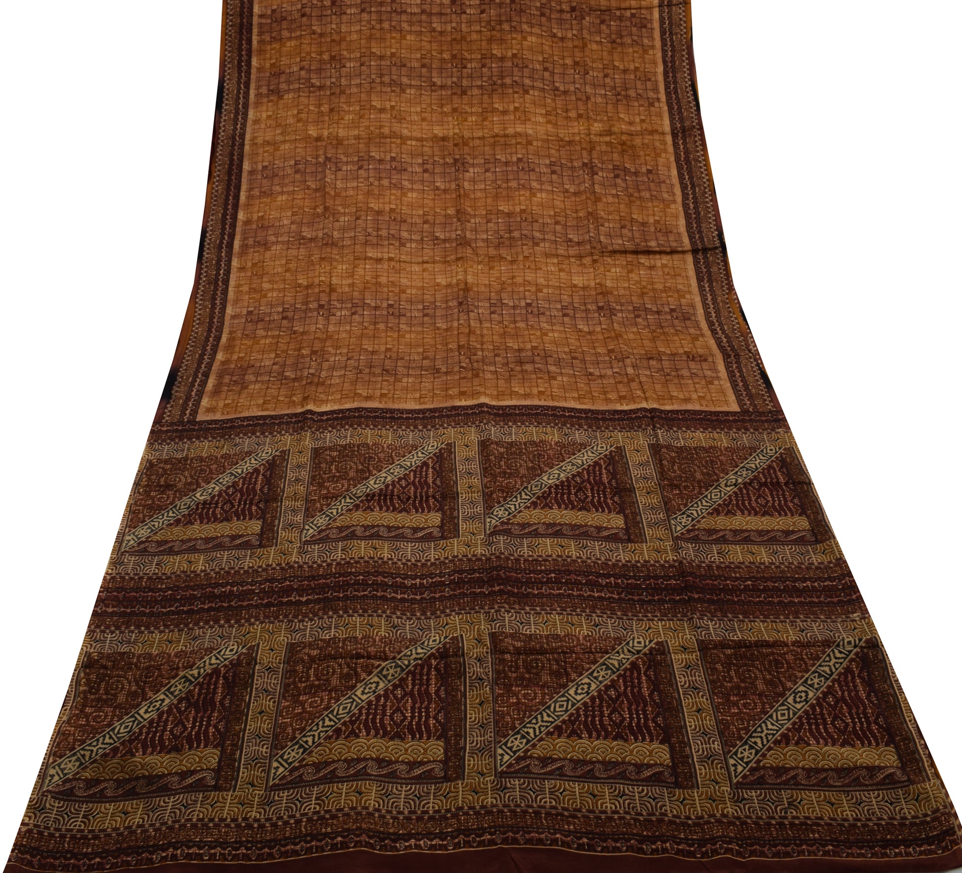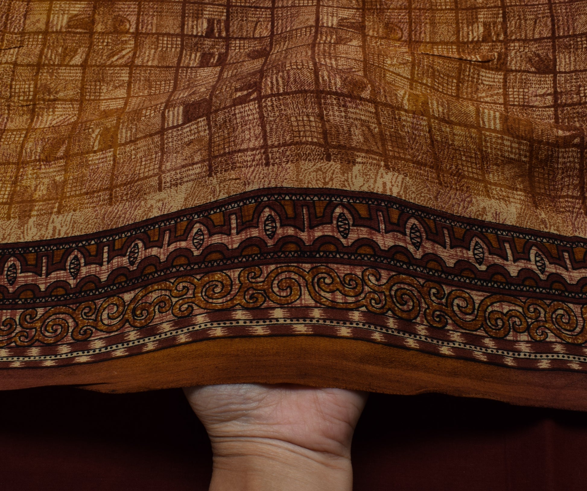 Sushila Vintage Brown Saree 100% Pure Crepe Silk Printed 5 Yard Soft Fabric