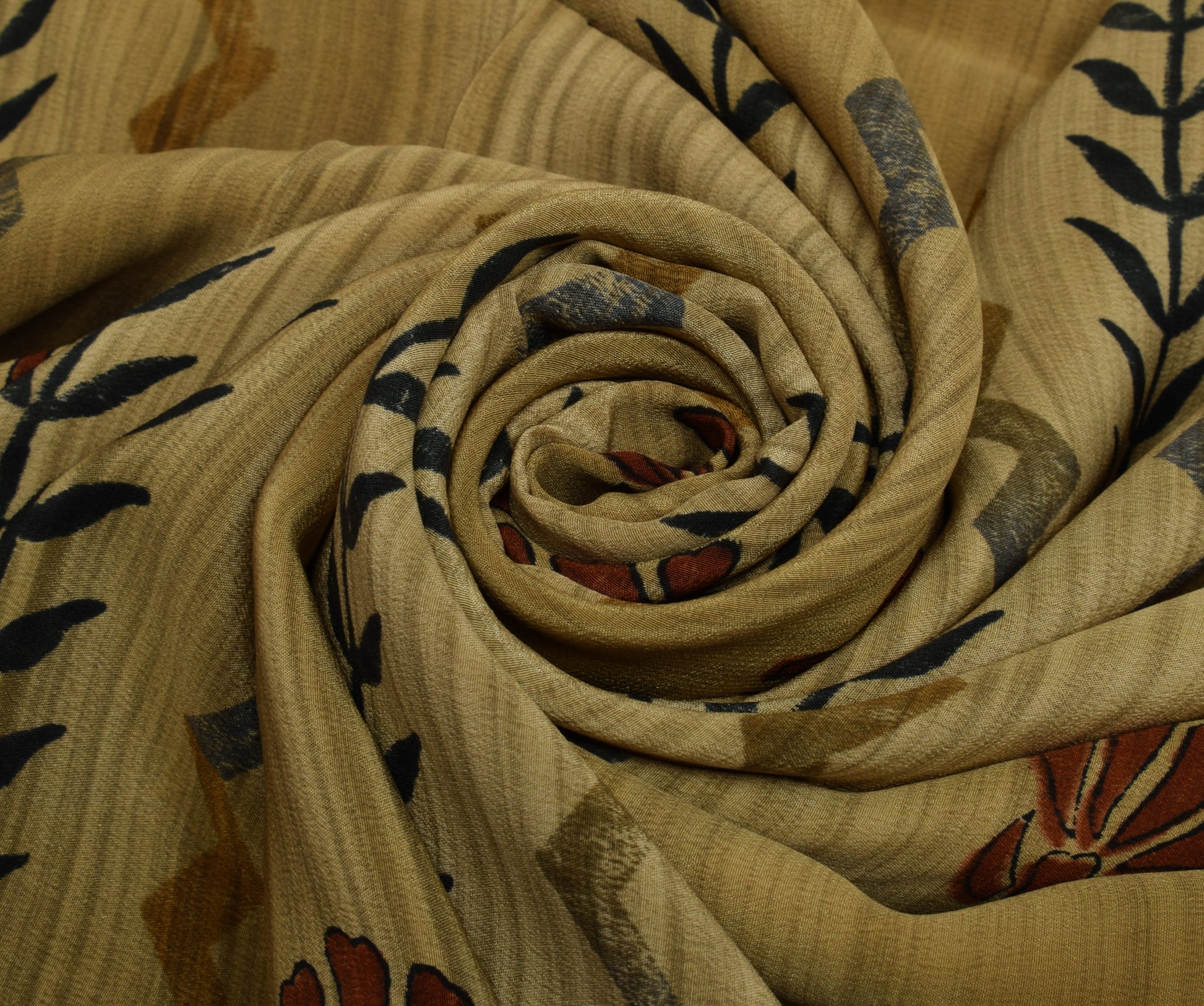 Celebrate heritage craftsmanship in this brown 100% pure crepe silk saree, adorned with graceful floral patterns and exquisite printed work. Crafted from pure, breathable 100% pure crepe silk, this sarI boasts a luxurious drape and enduring appeal. Measuring roughly 192 inch in length and 43 inch in width, it offers versatile styling—whether worn traditionally or repurposed into bespoke dresses, home décor, or creative crafts. Weighing about 342 grams (actual product weight), it falls gracefully, making it ideal for anyone who appreciates the charm of vintage textiles.