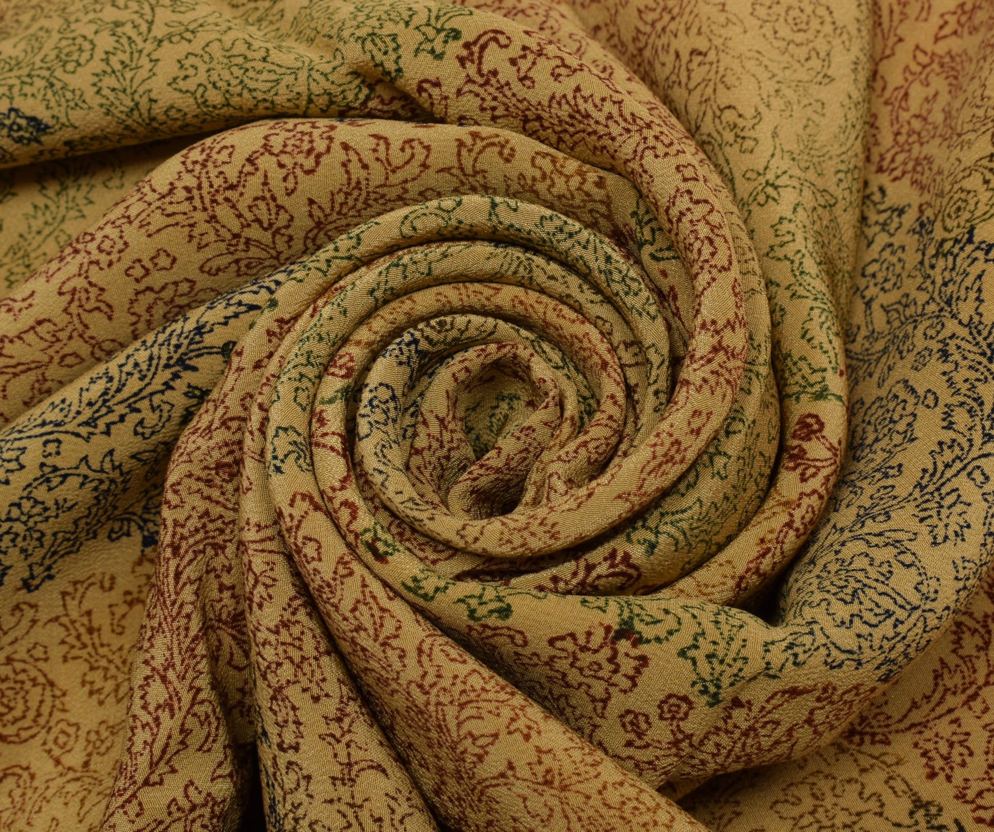 Capture vintage allure with this light brown 100% pure crepe silk saree, beautifully crafted with floral designs and intricate printed accents. Crafted from pure, breathable 100% pure crepe silk, this sarI boasts a luxurious drape and enduring appeal. Measuring roughly 192 inch in length and 43 inch in width, it offers versatile styling—whether worn traditionally or repurposed into bespoke dresses, home décor, or creative crafts. Weighing about 364 grams (actual product weight), it falls gracefully, making it ideal for anyone who appreciates the charm of vintage textiles.