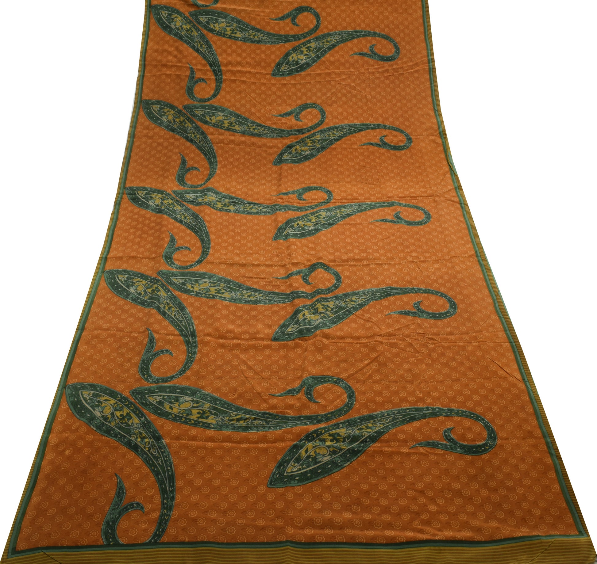 Sushila Vintage Brown Saree 100% Pure Crepe Silk Printed Paisley Soft Fabric