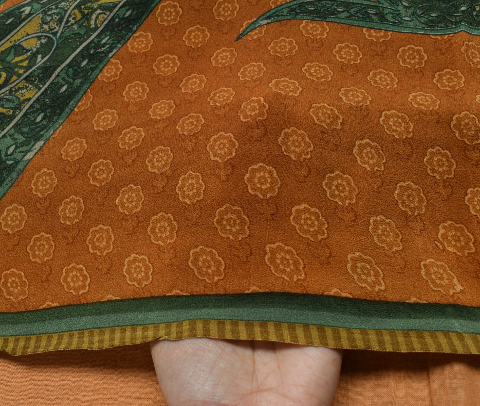 Capture vintage allure with this brown 100% pure crepe silk saree, beautifully crafted with paisley designs and intricate printed accents. Crafted from pure, breathable 100% pure crepe silk, this sarI boasts a luxurious drape and enduring appeal. Measuring roughly 196 inch in length and 42 inch in width, it offers versatile styling—whether worn traditionally or repurposed into bespoke dresses, home décor, or creative crafts. Weighing about 360 grams (actual product weight), it falls gracefully, making it ideal for anyone who appreciates the charm of vintage textiles.