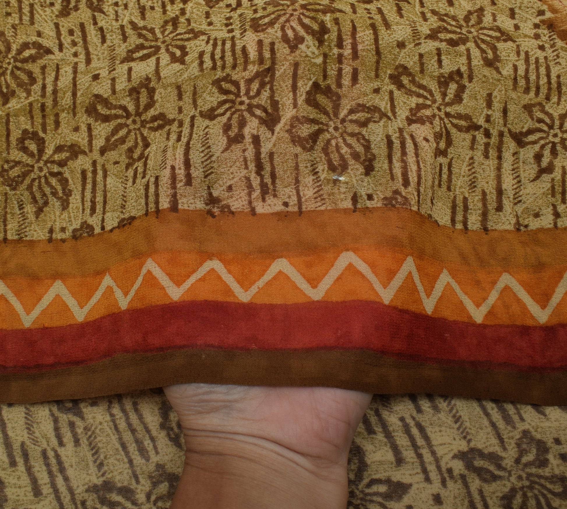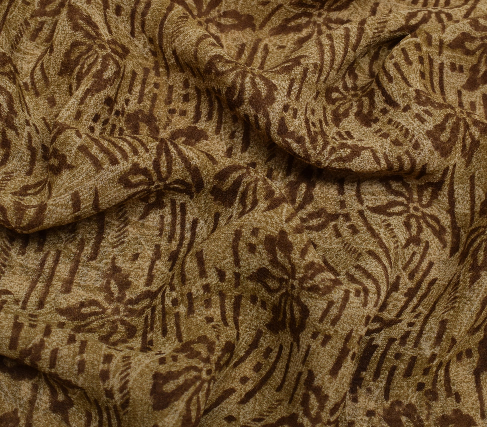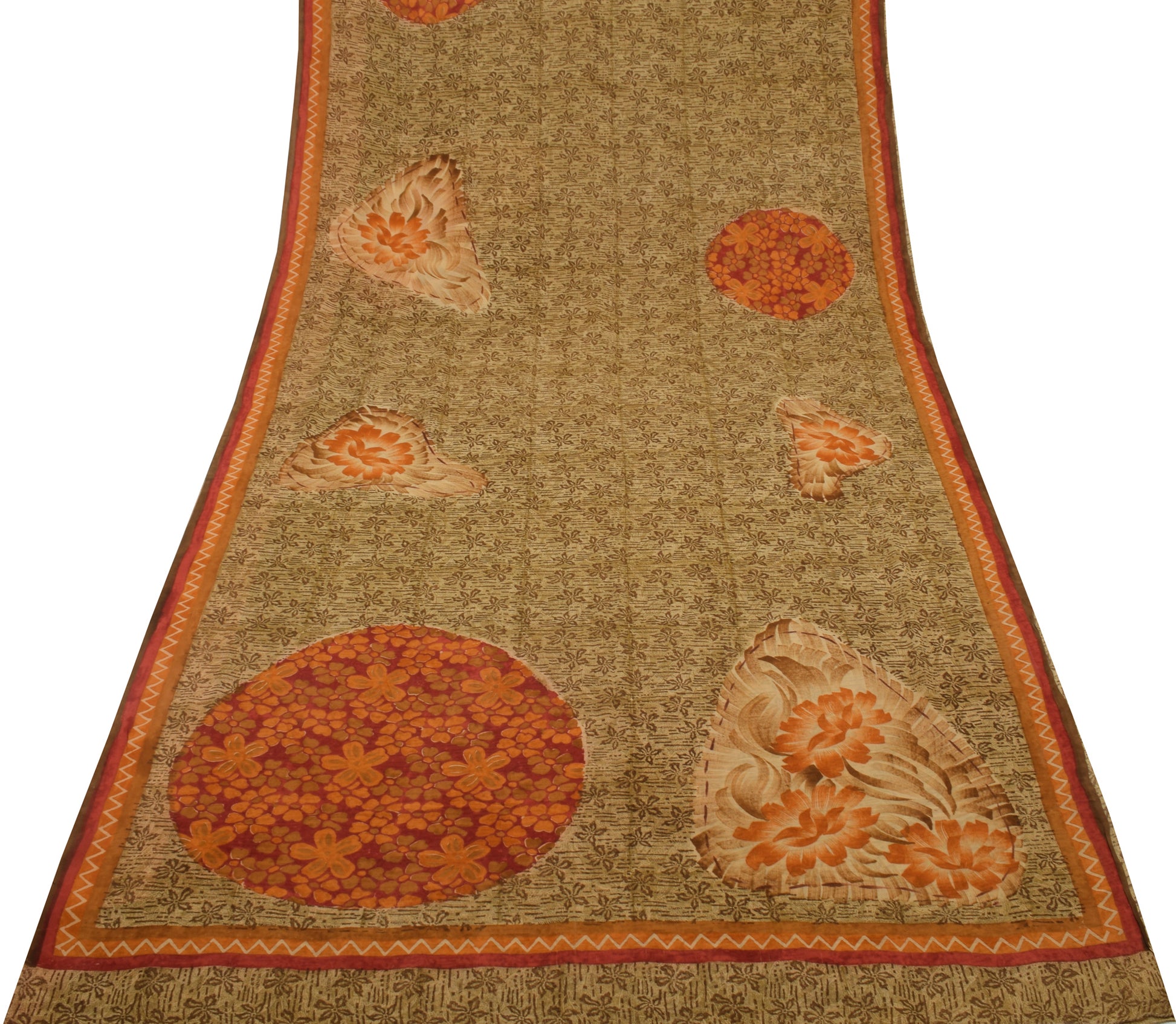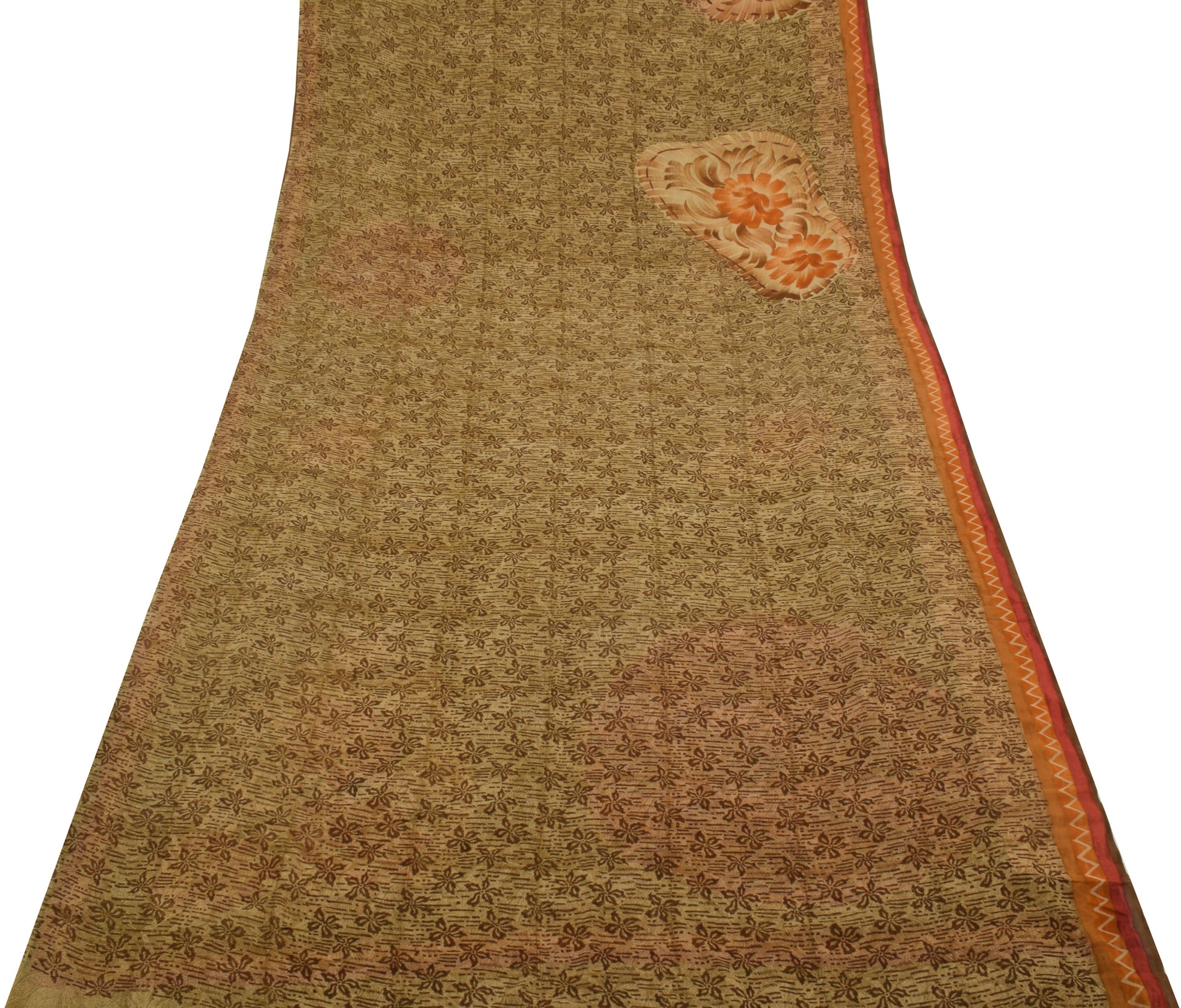 Sushila Vintage Brown Saree 100% Pure Georgette Silk Printed Floral Craft Fabric