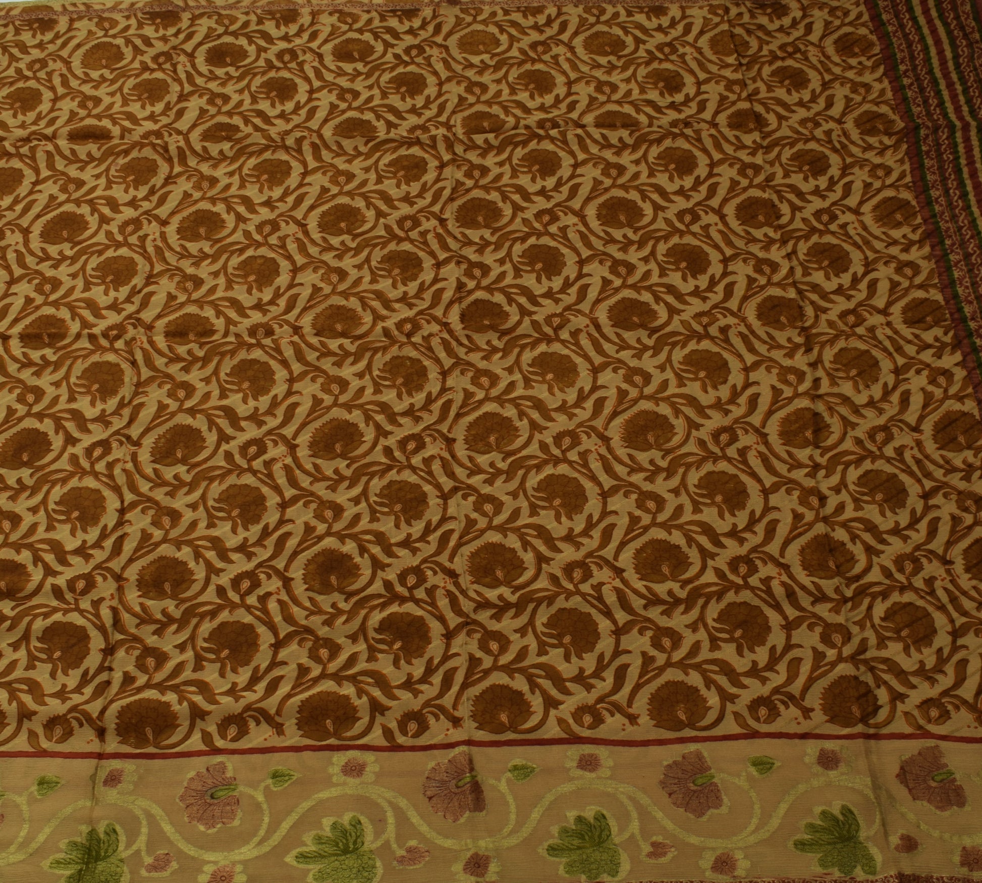 Sushila Vintage Brown Saree 100% Pure Georgette Silk Printed Floral Craft Fabric