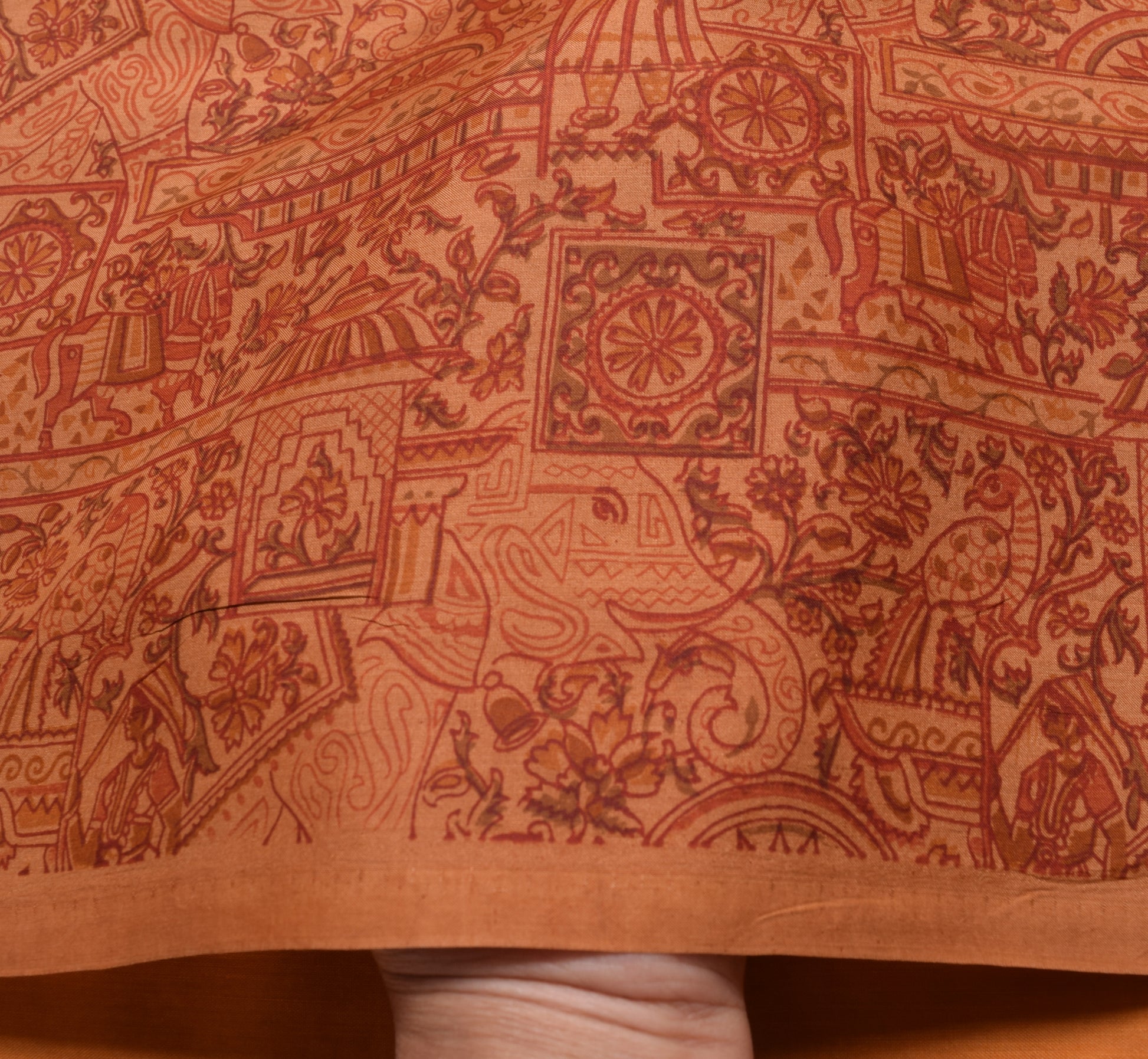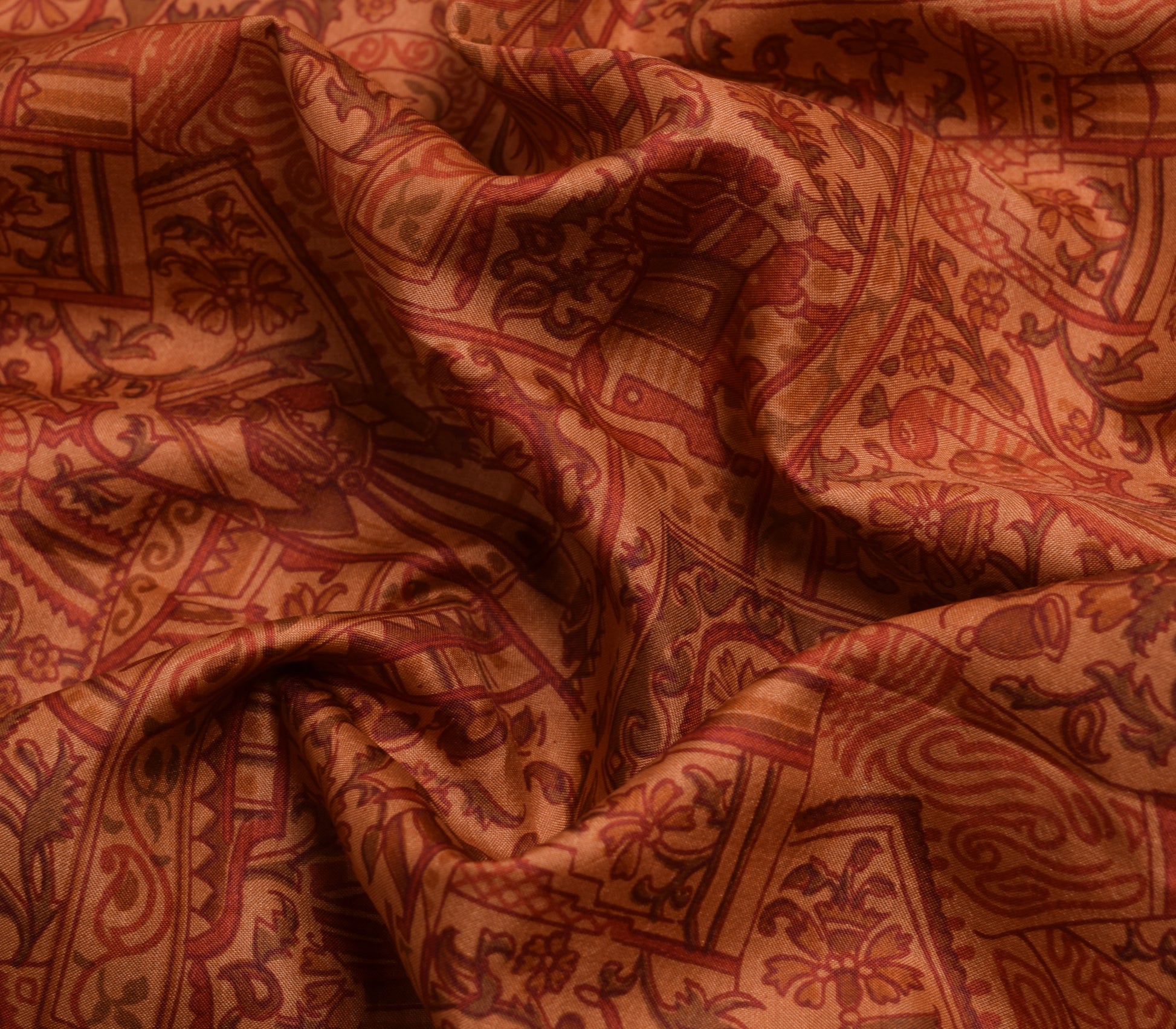 Celebrate the beauty of heritage textiles with this stunning brown 100% pure silk saree, adorned with human patterns and fine printed craftsmanship. Crafted from pure, breathable 100% pure silk, this saree is known for its luxurious drape and timeless appeal. Measuring approximately 222 inch in length and 44 inch in width, it offers versatile styling possibilities, whether worn traditionally or repurposed for creative projects. With a weight of 290 grams (actual product weight), it drapes beautifully, making it an ideal choice for those who appreciate the charm of vintage textiles.