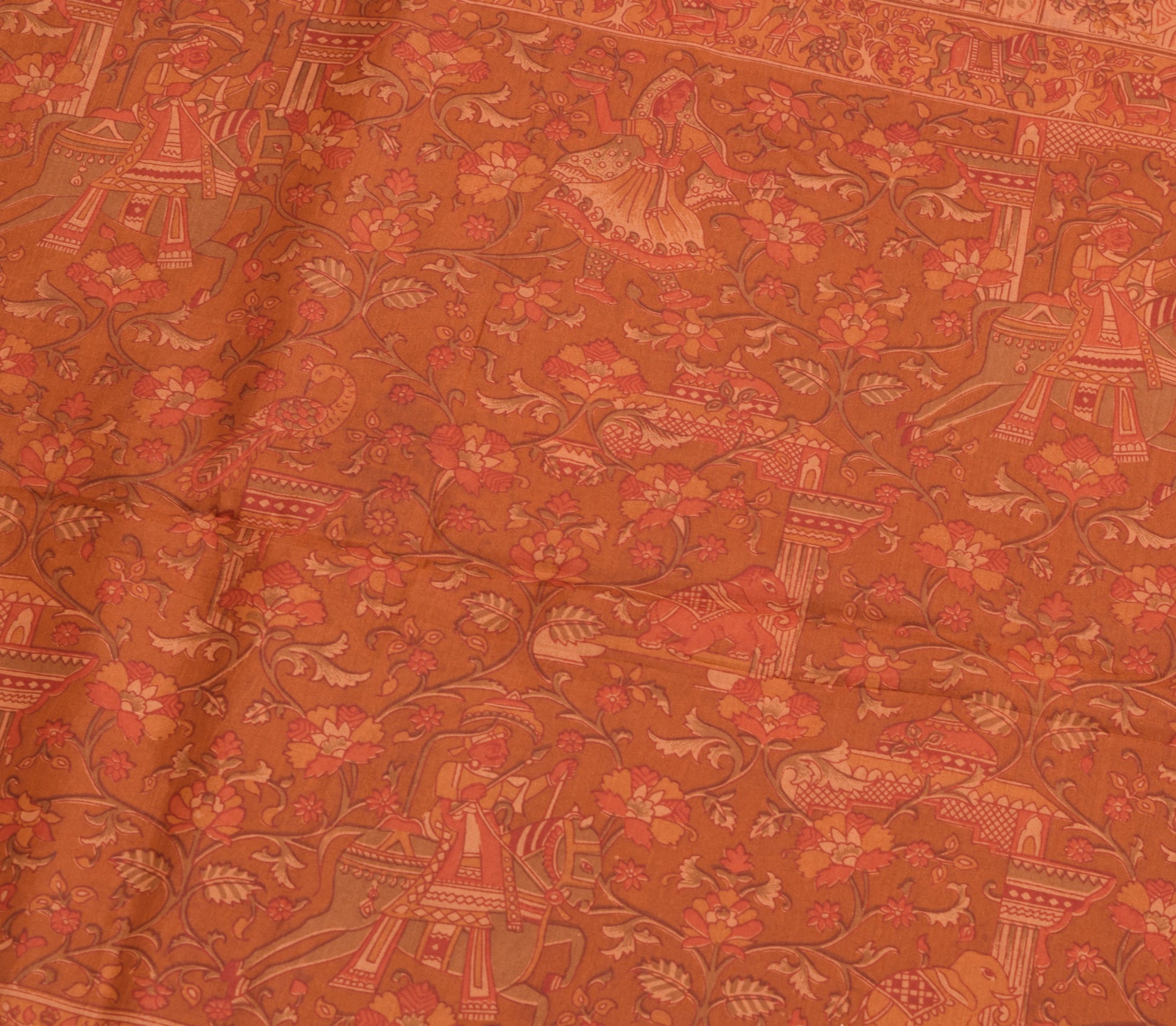 Sushila Vintage Brown Saree 100% Pure Silk Printed Human Soft Sari Craft Fabric