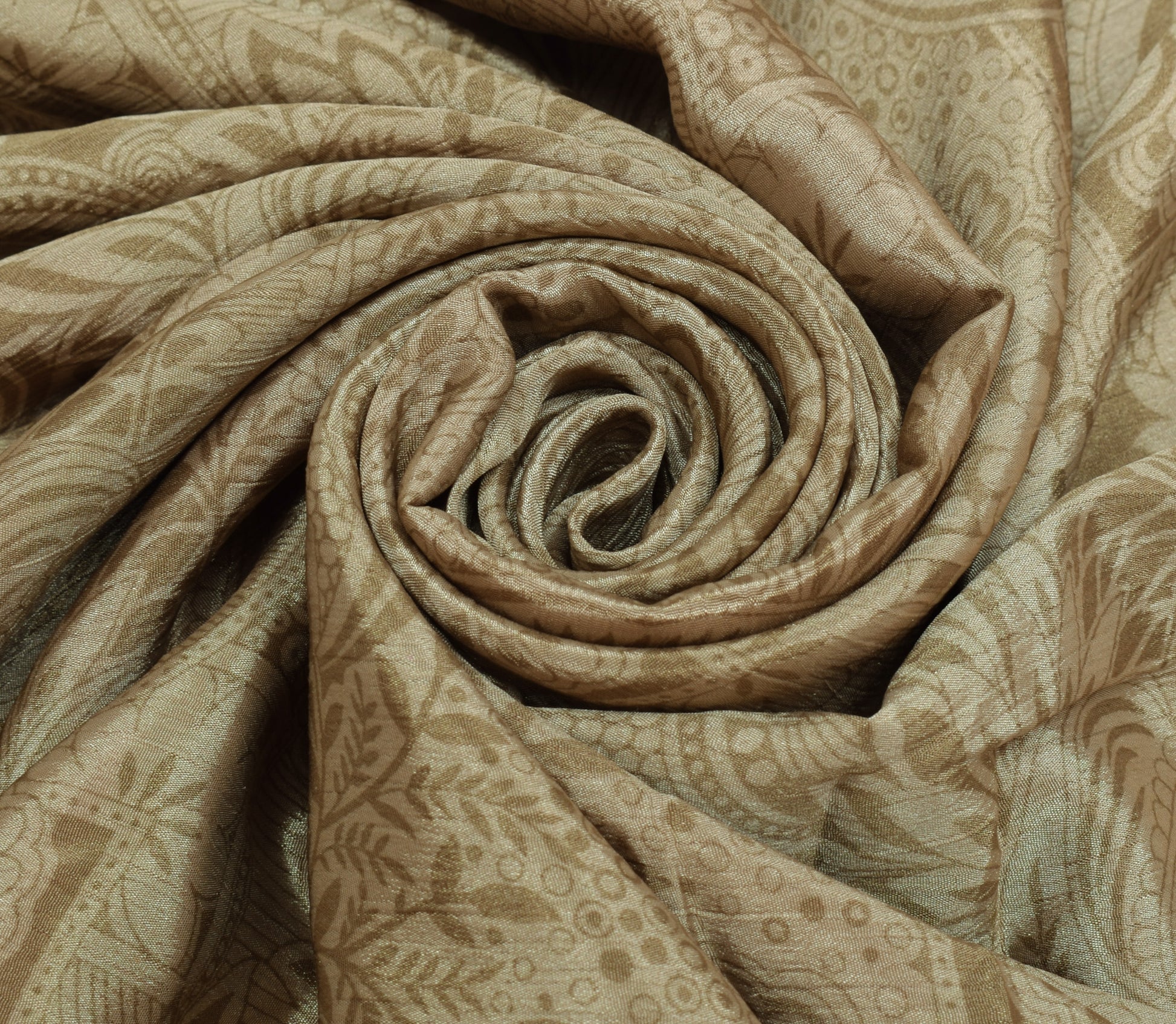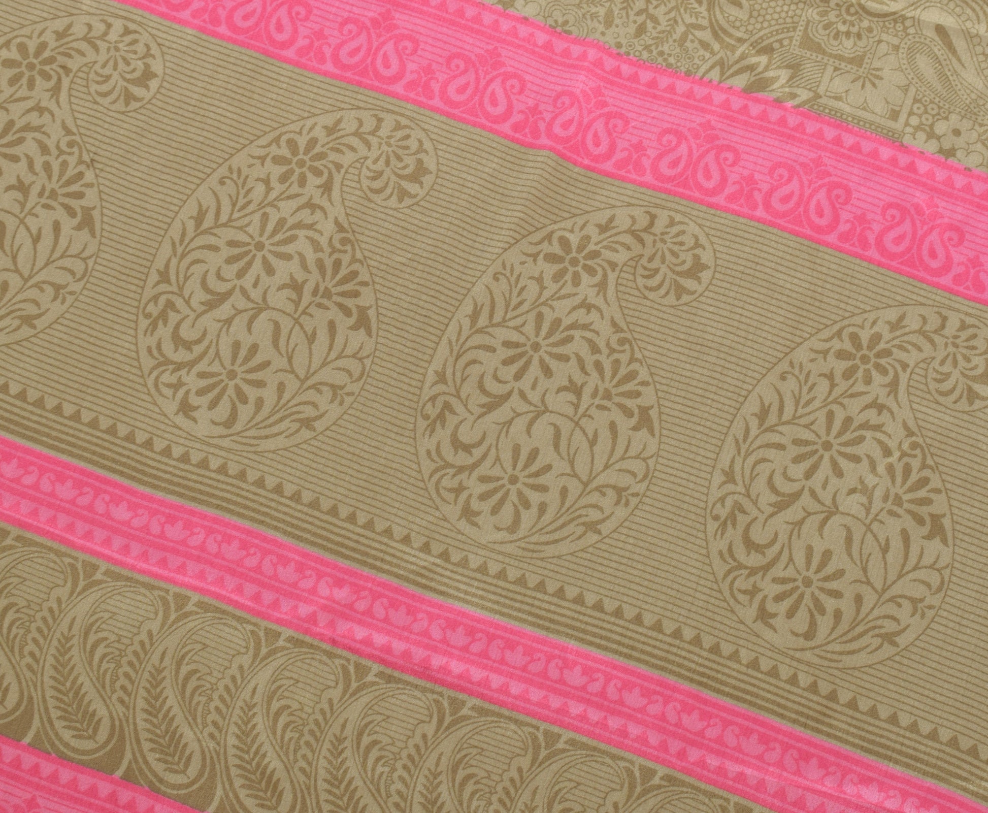 Sushila Vintage Brown Saree Blend Crepe Silk Printed Paisley Soft Craft Fabric