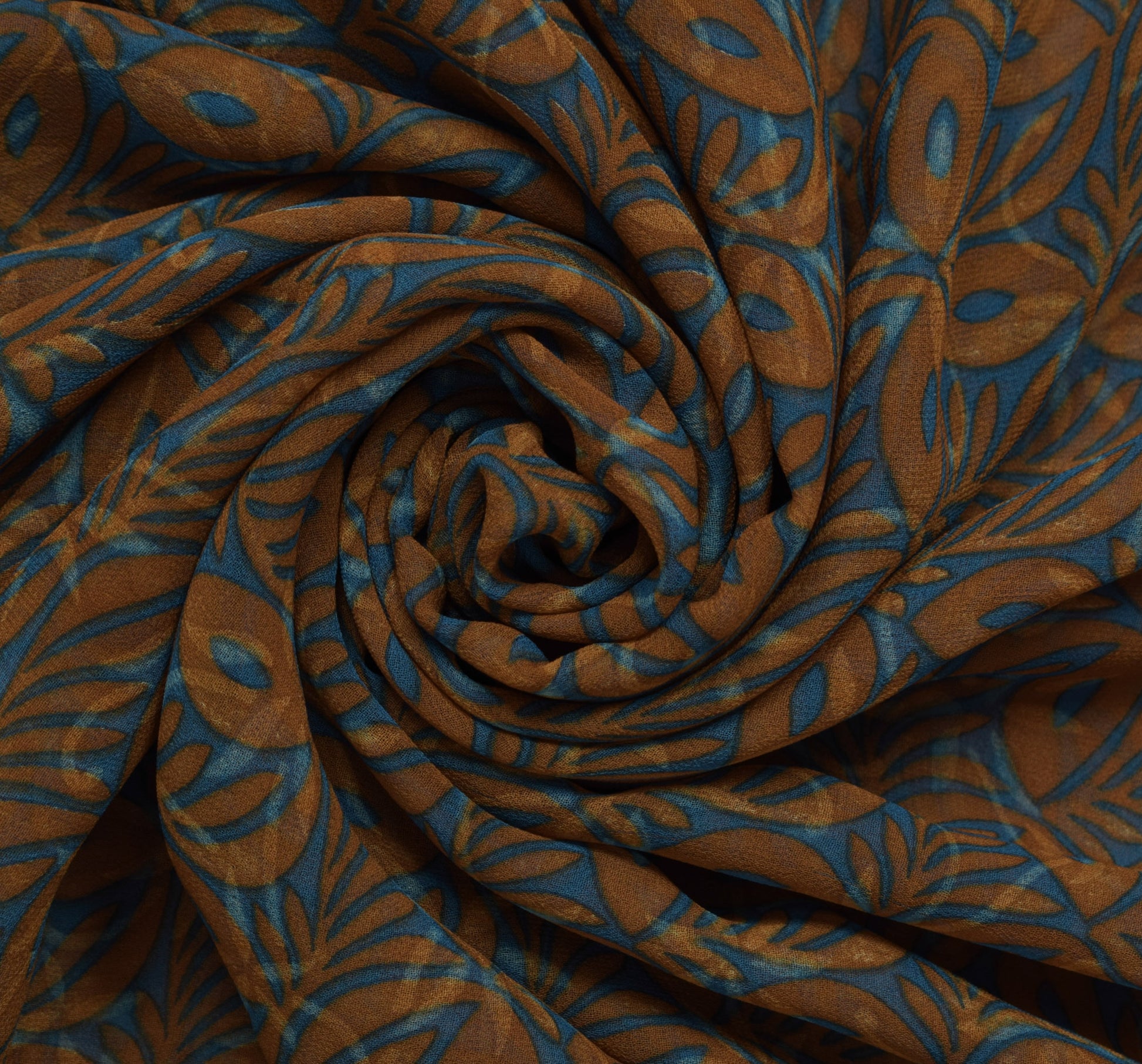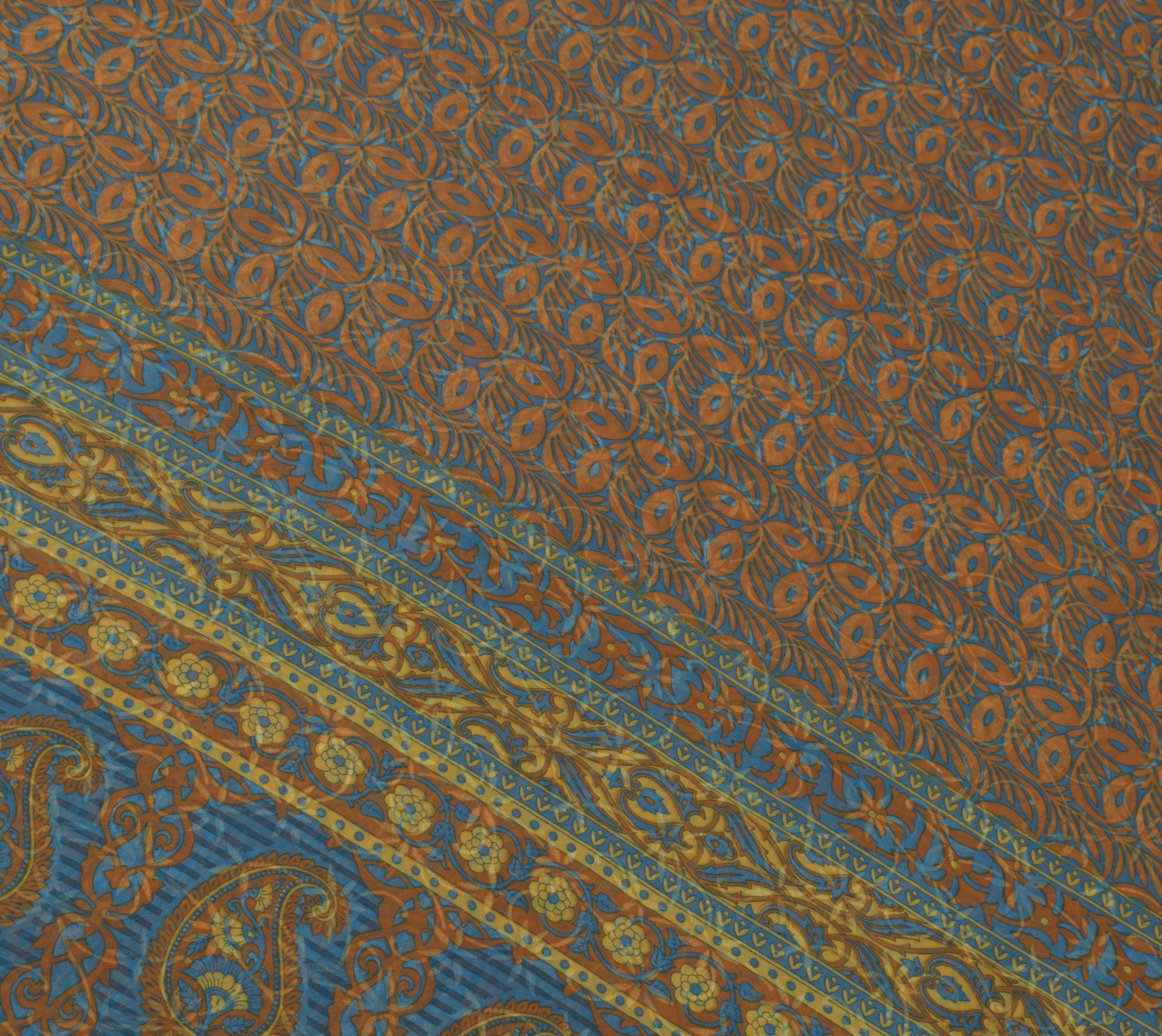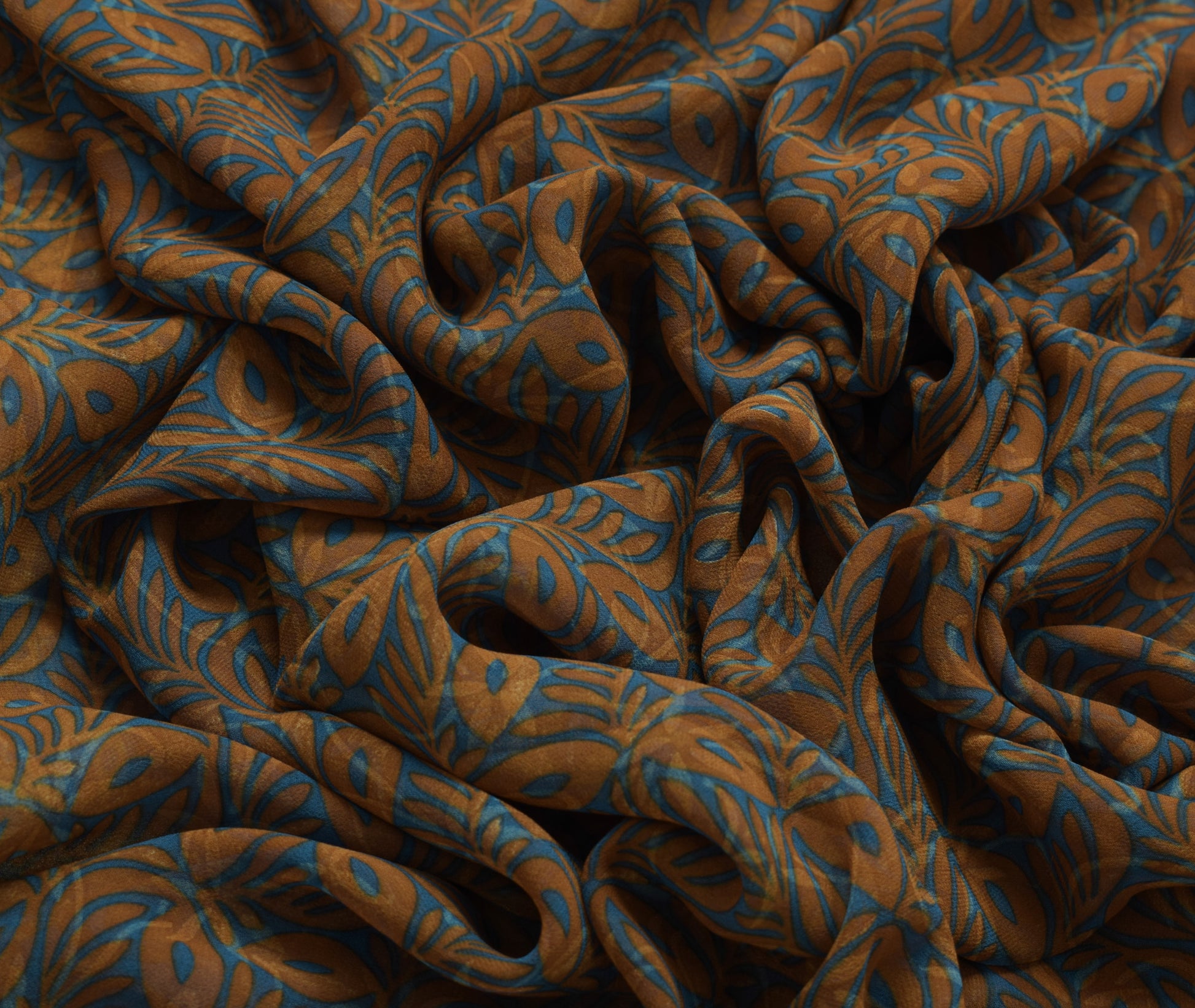 Sushila Vintage Brown Saree Blend Georgette Silk Printed Floral Craft Fabric