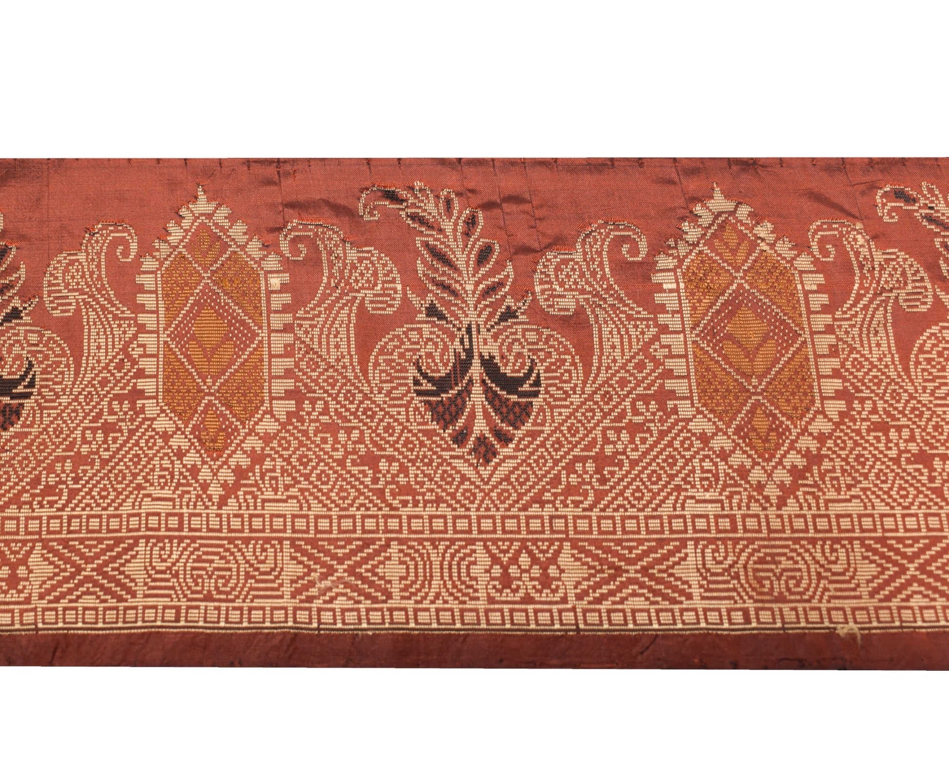 Sushila Vintage Brown Saree Border Pure Silk Craft Sewing Trim Woven Lace Ribbon