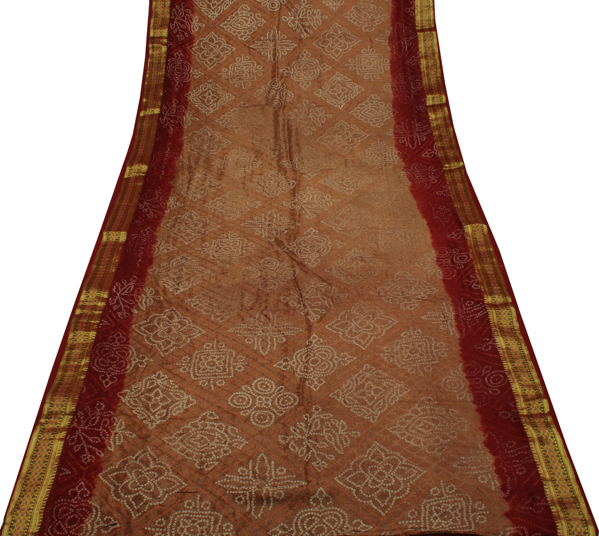Sushila Vintage Brown Saree Pure Georgette Silk Bandhani Printed Craft Fabric