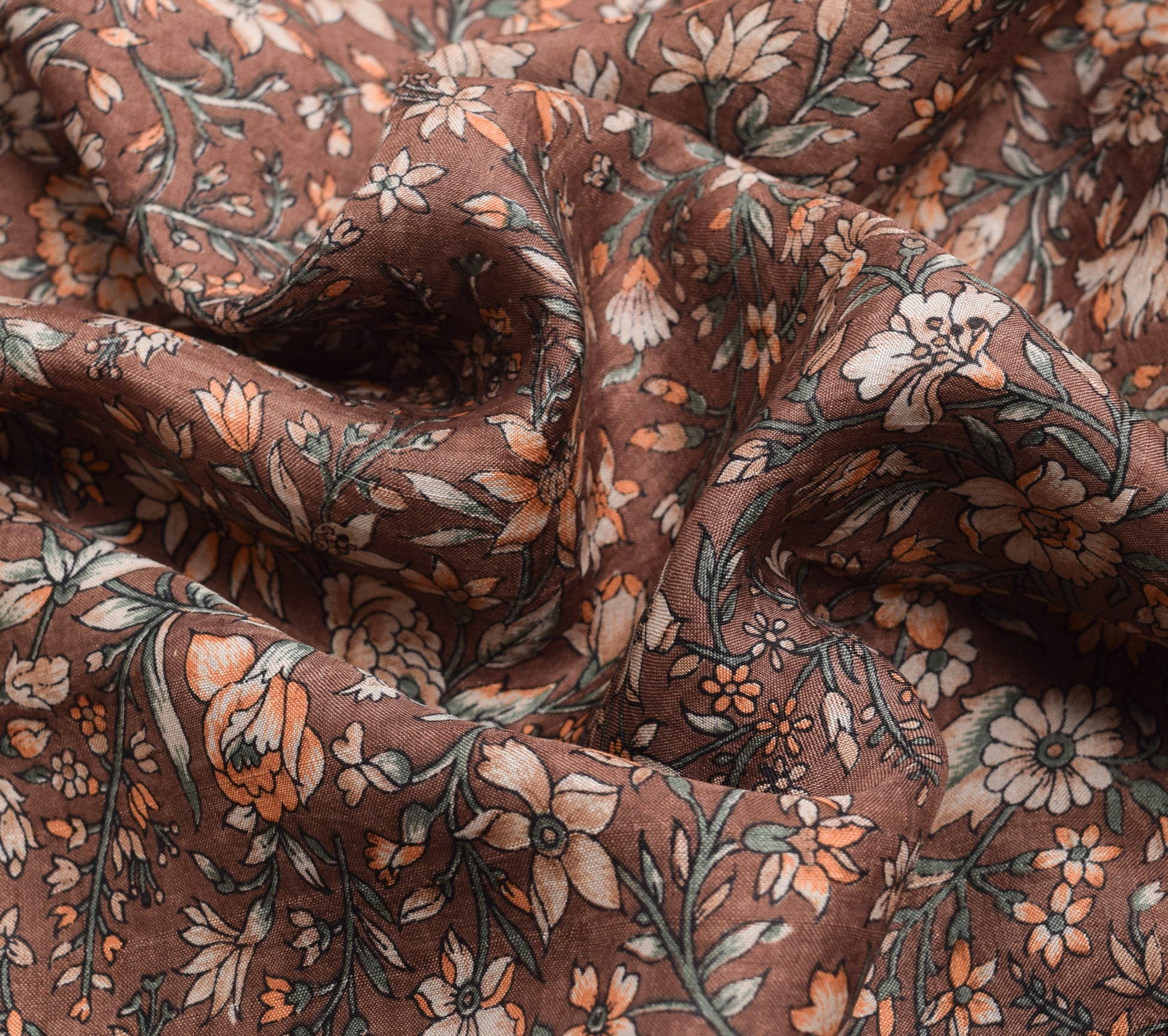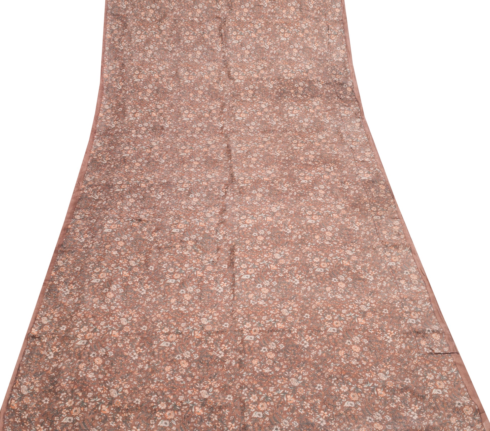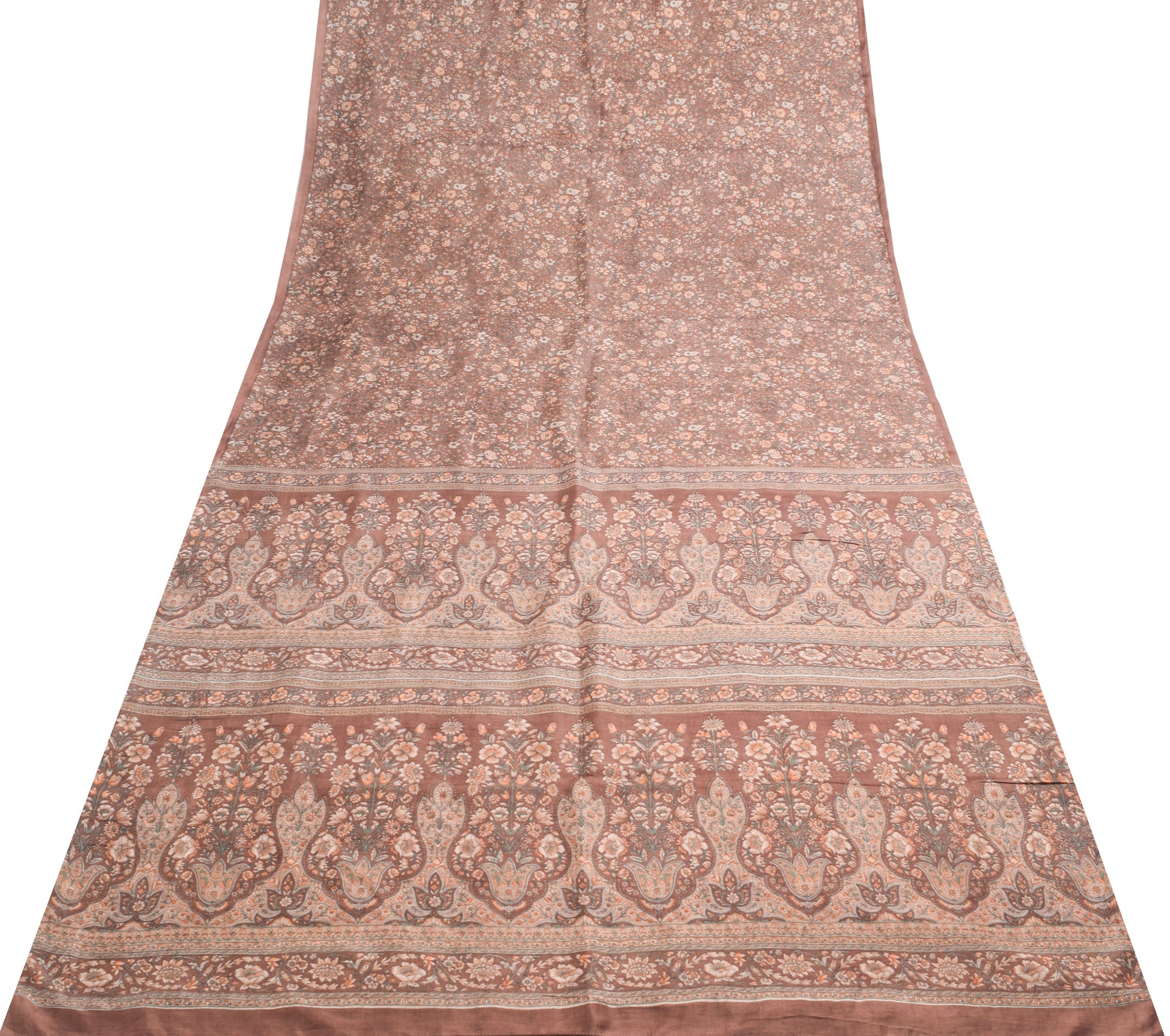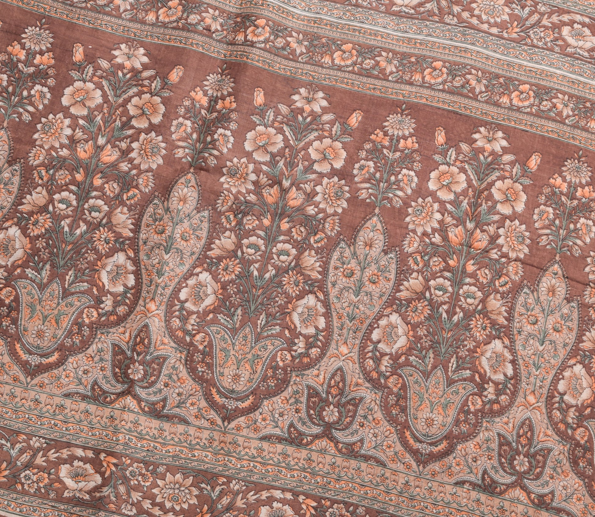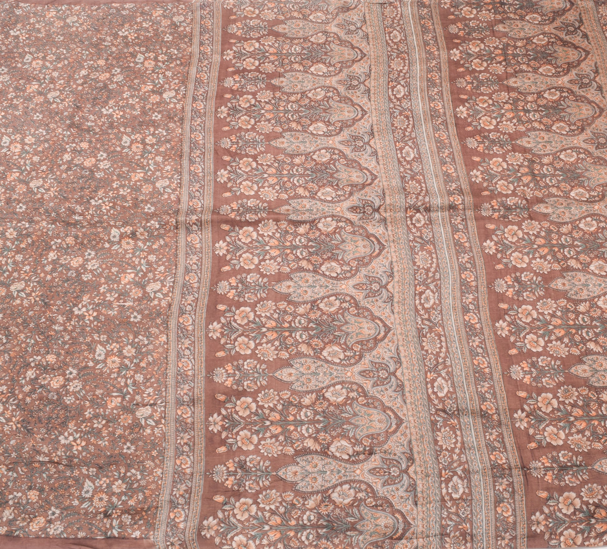 Sushila Vintage Brown Saree Pure Silk Printed Floral Casual Soft Craft Fabric