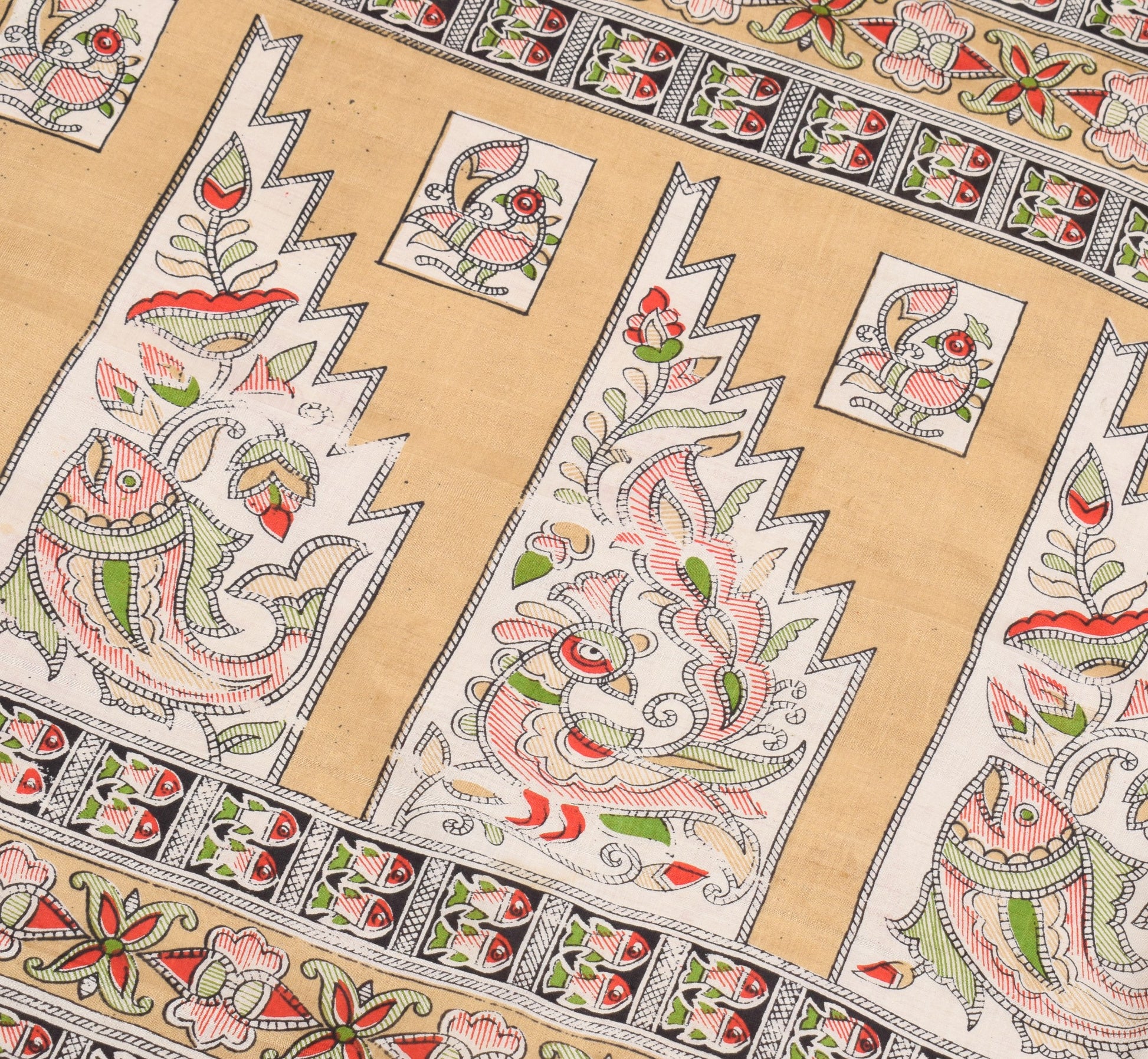 Sushila Vintage Brown Sari Pure Madhubani HandBrush Print Silk 6YD Soft Saree